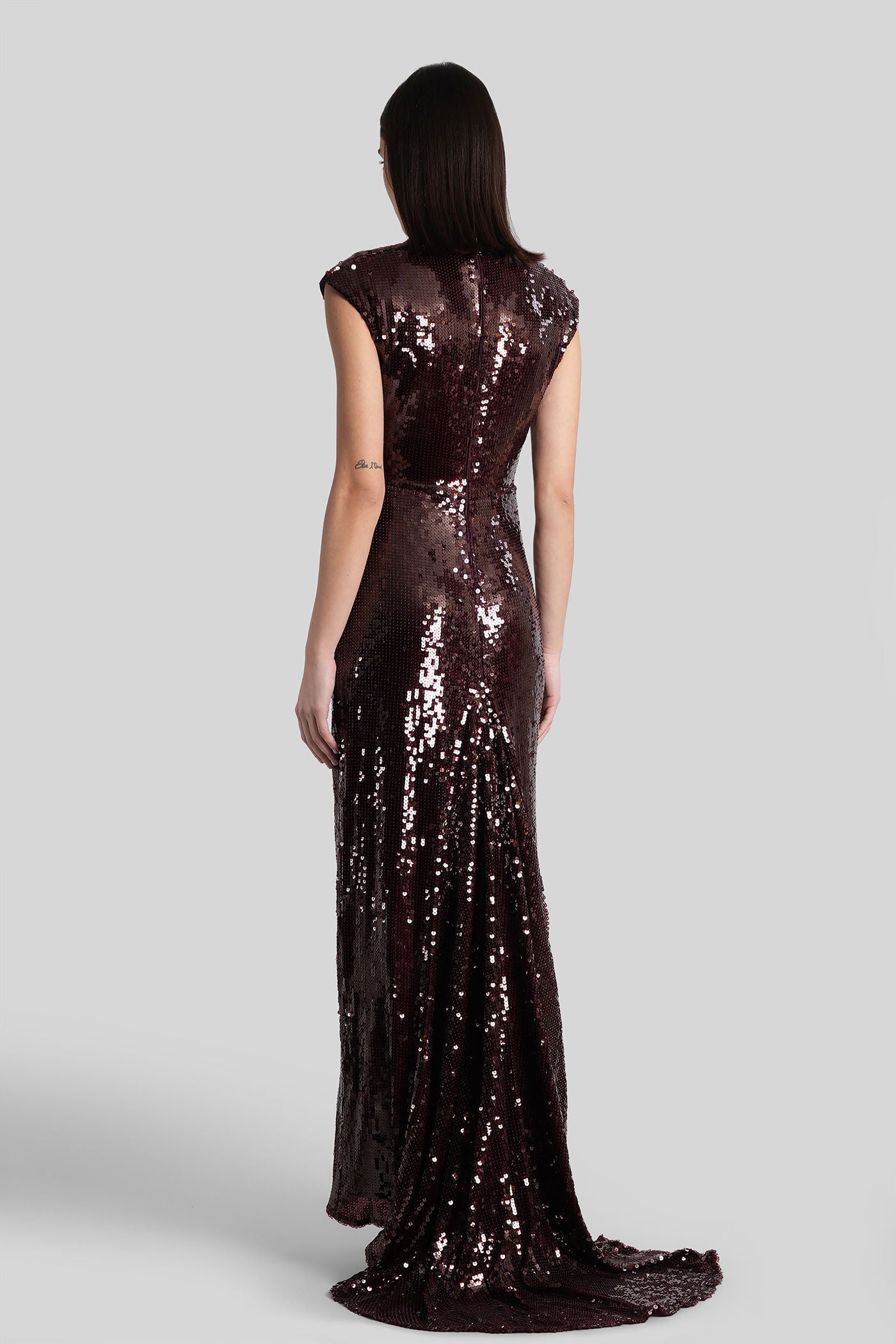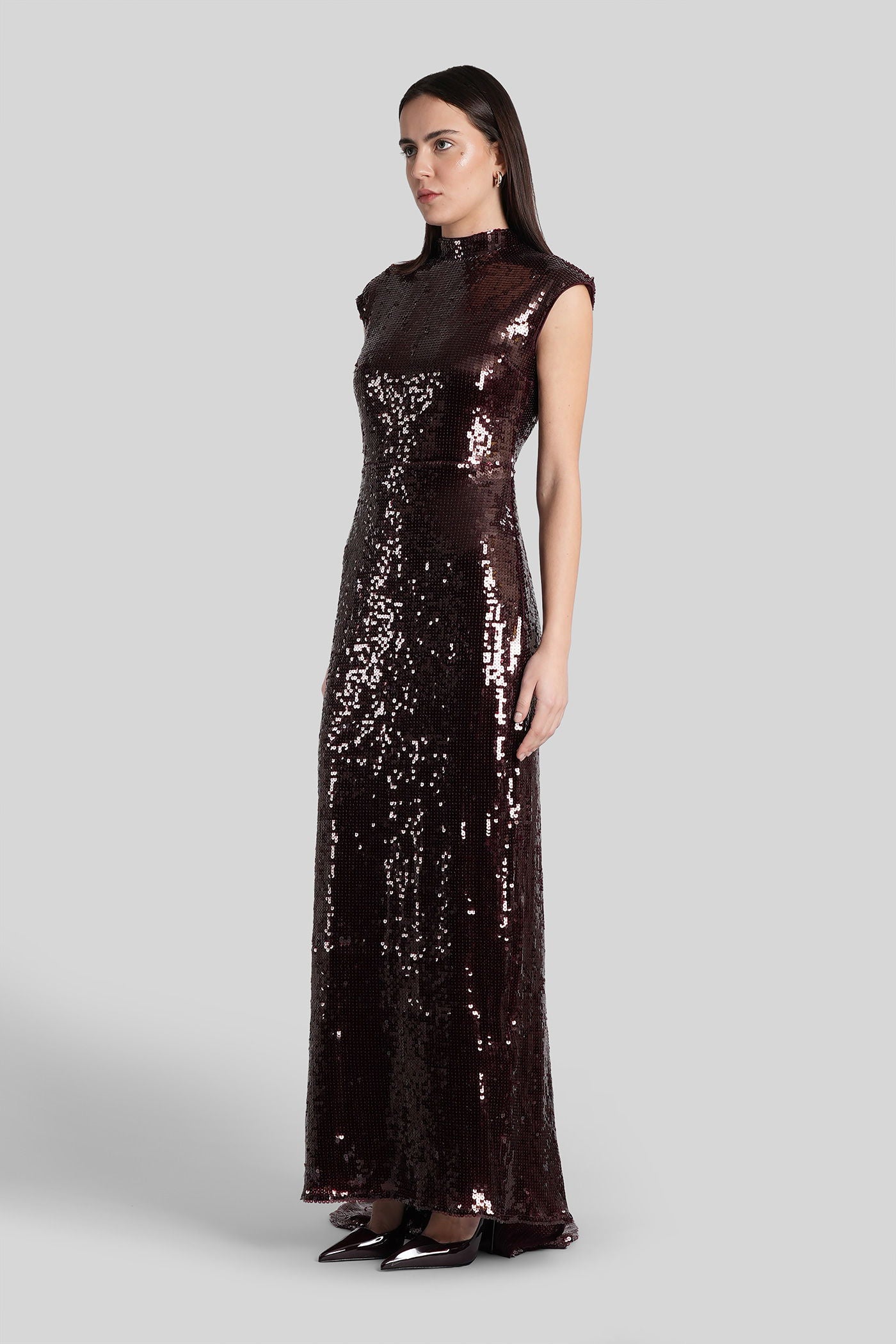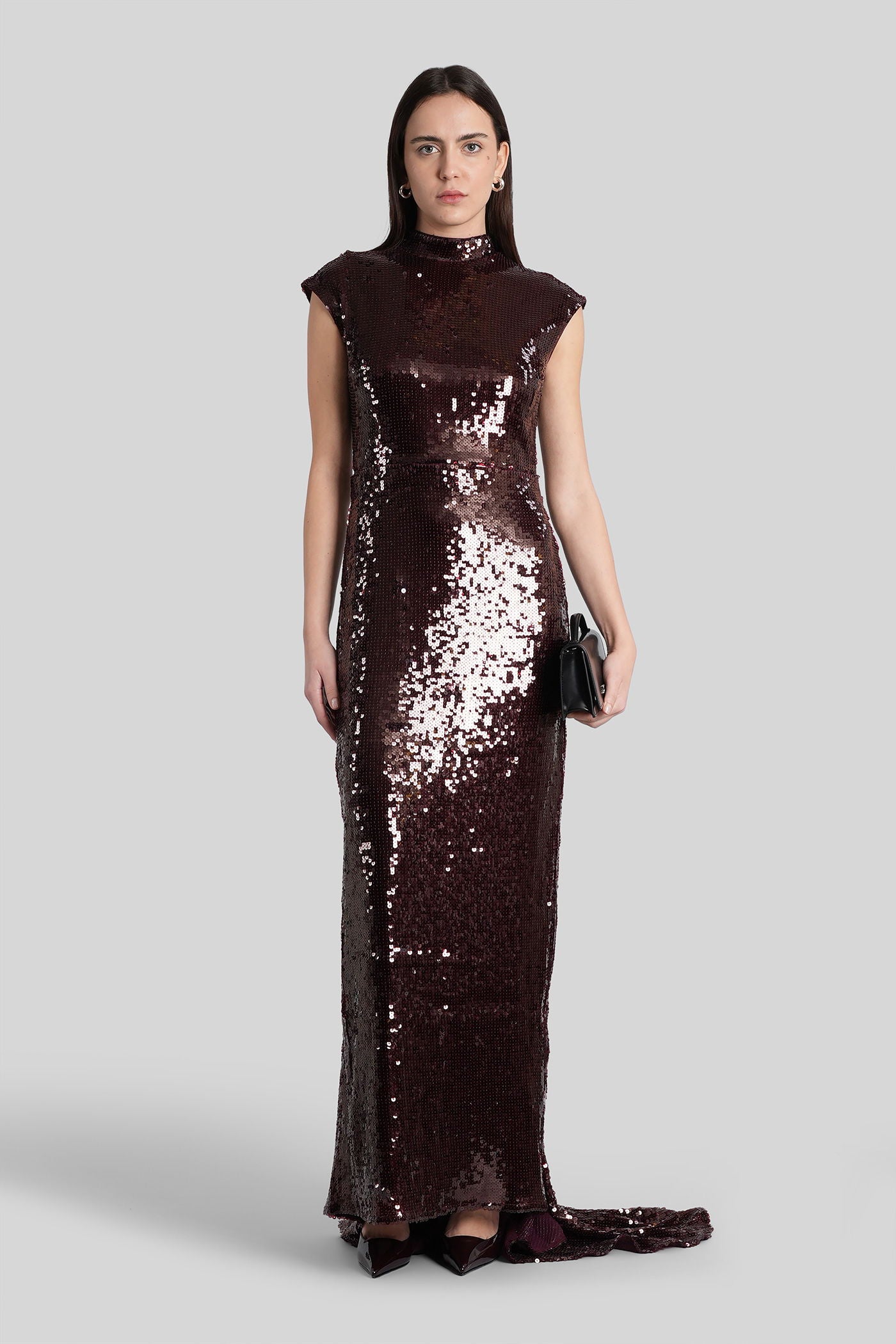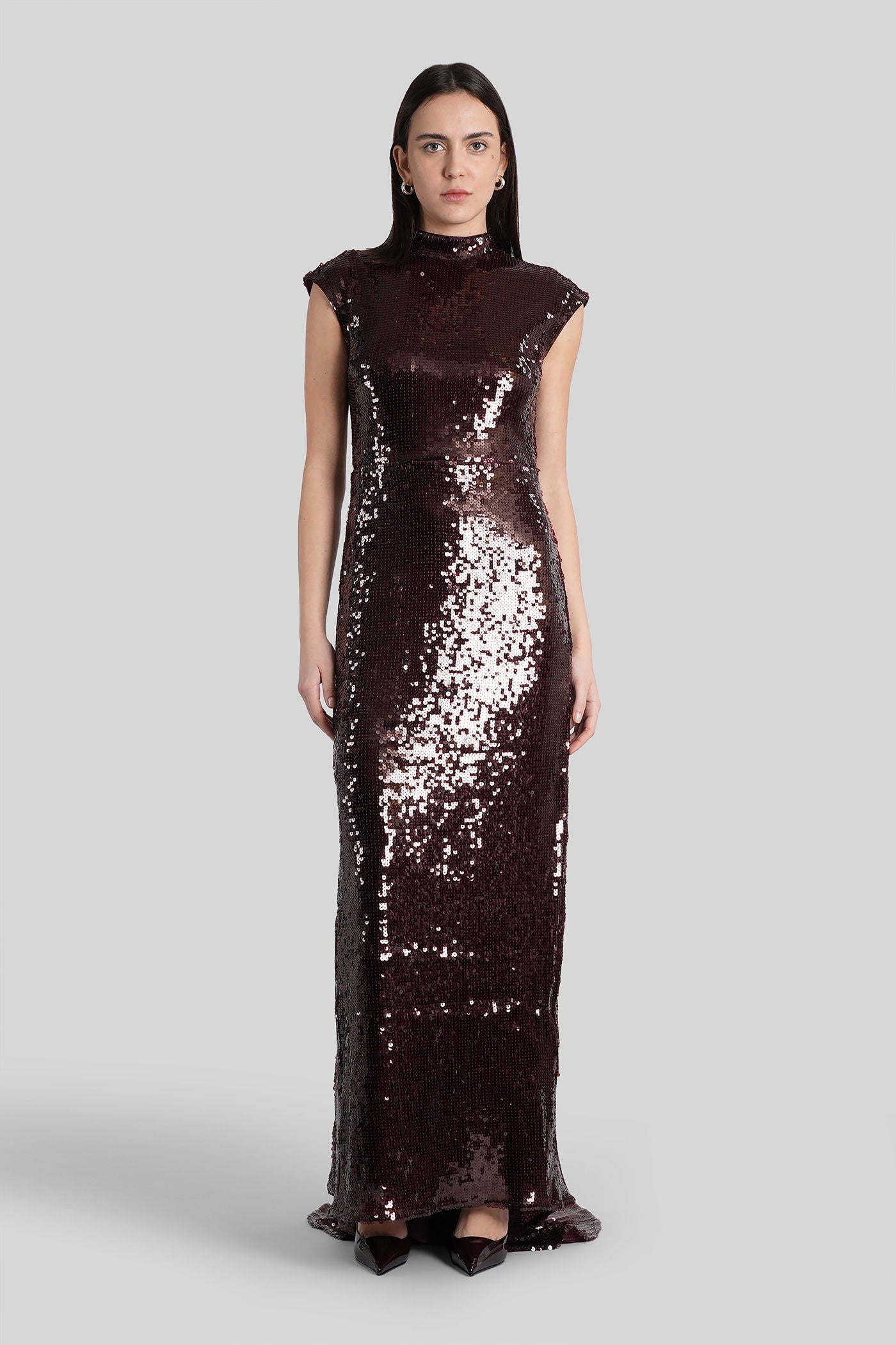 Long dress in bordeaux polyester