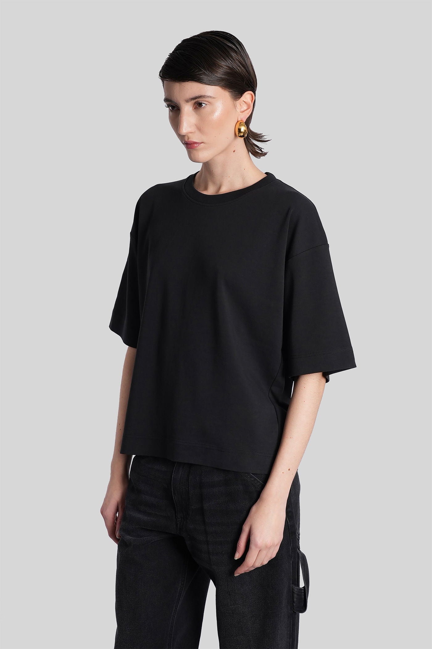 Cropped small level T-Shirt in black acetate