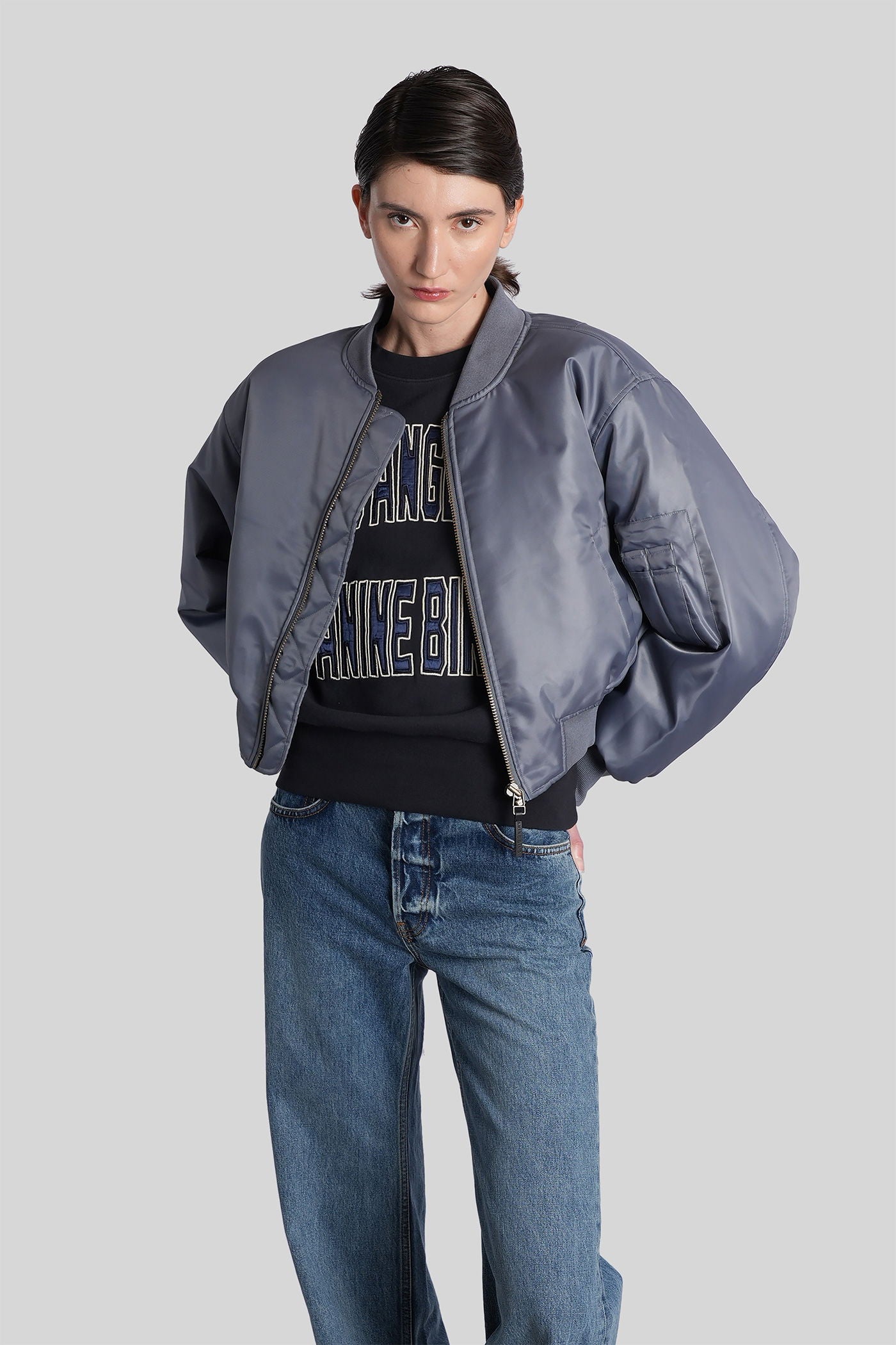 Leon Bomber Jacket in grey polyester