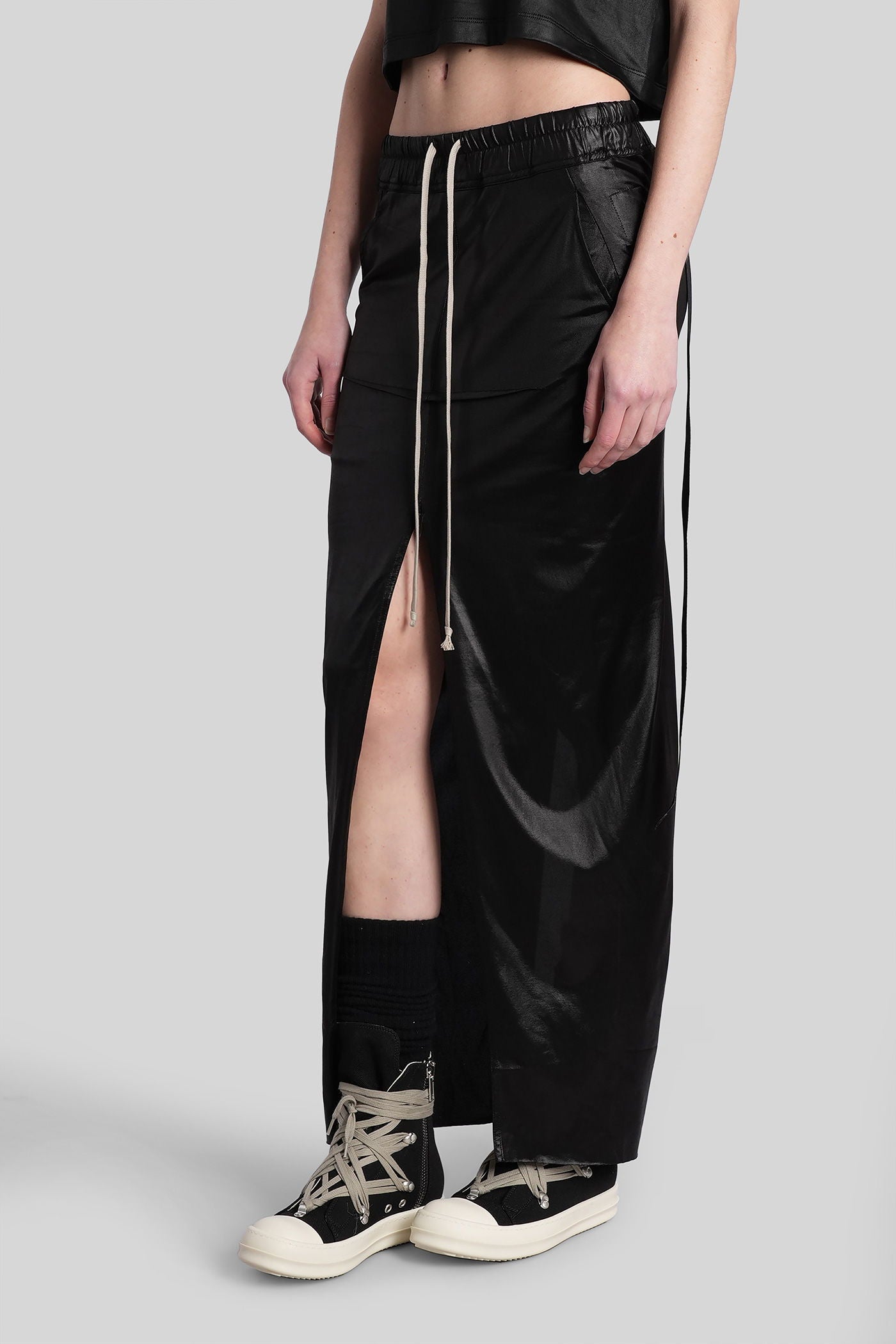 Pull on sliced pilla Skirt in black acetate