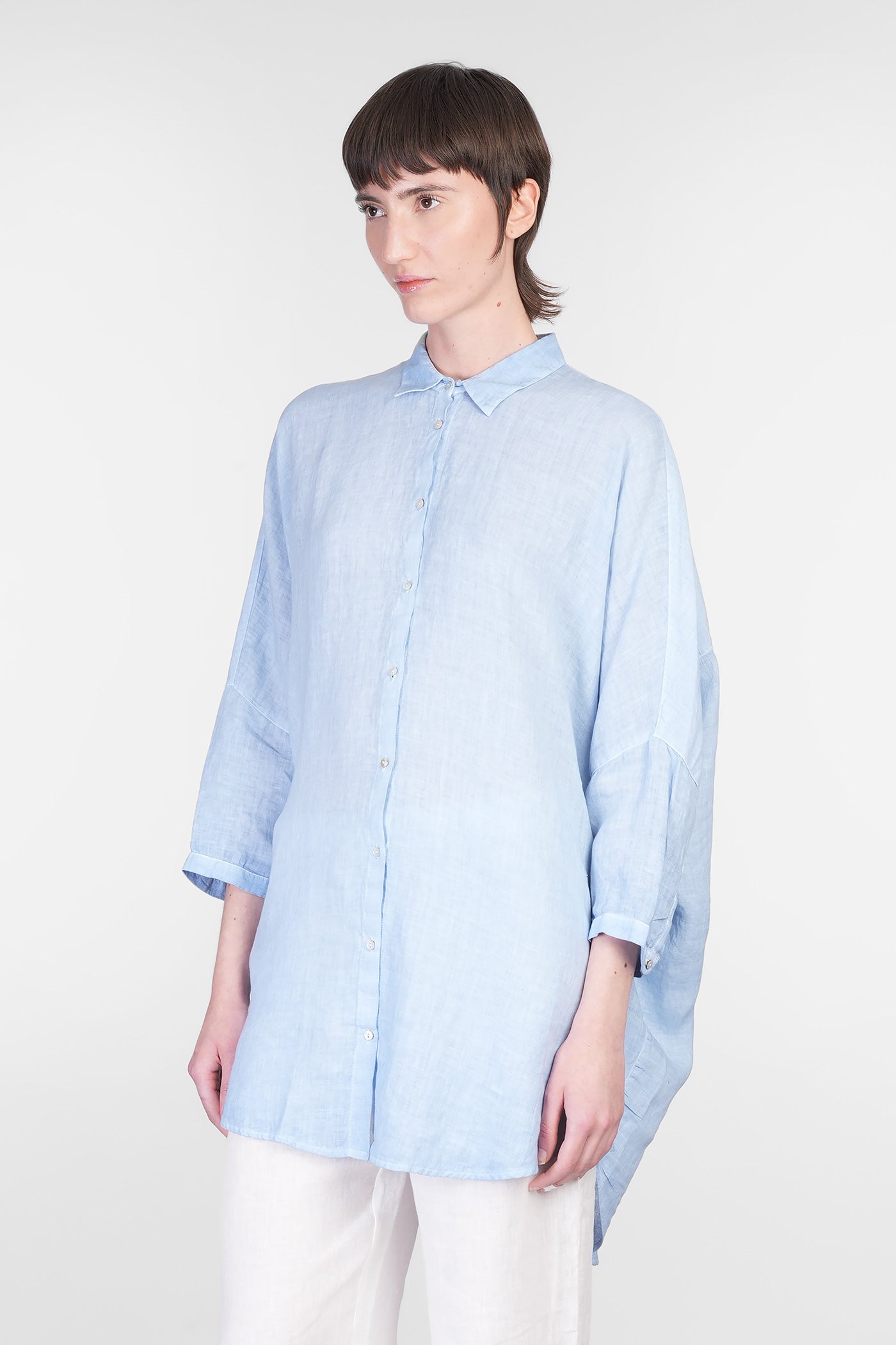 Shirt in cyan linen