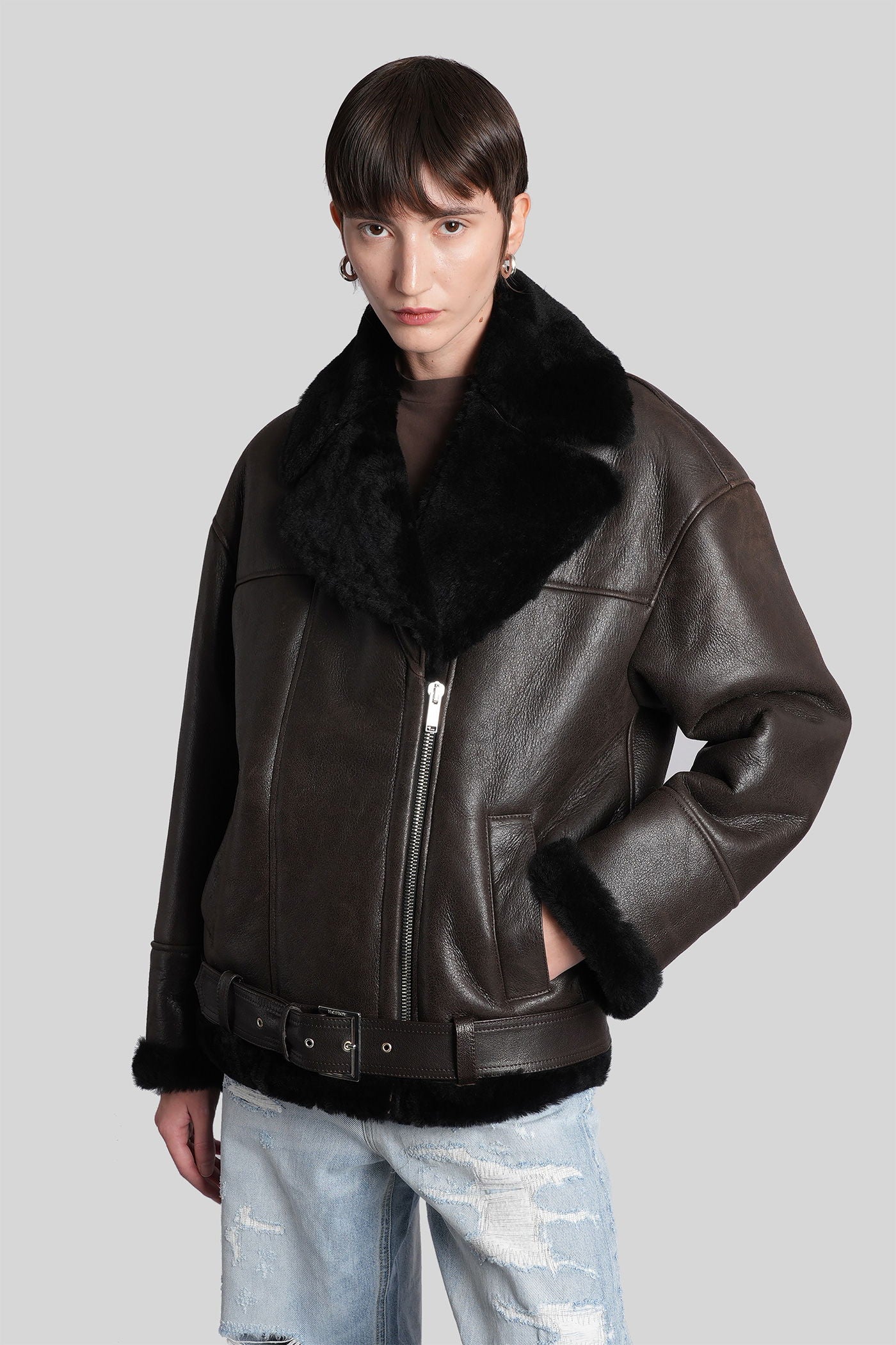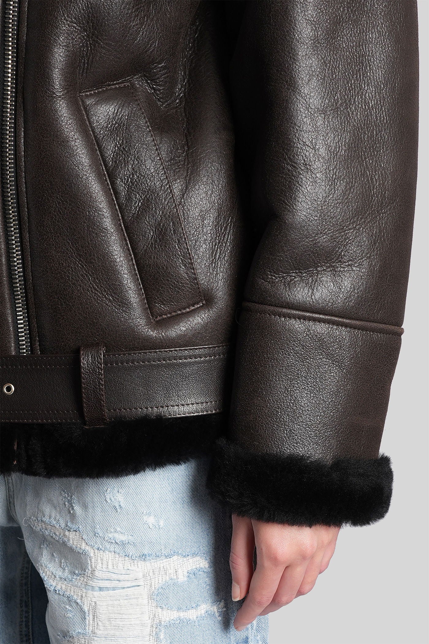 Shearling in brown leather