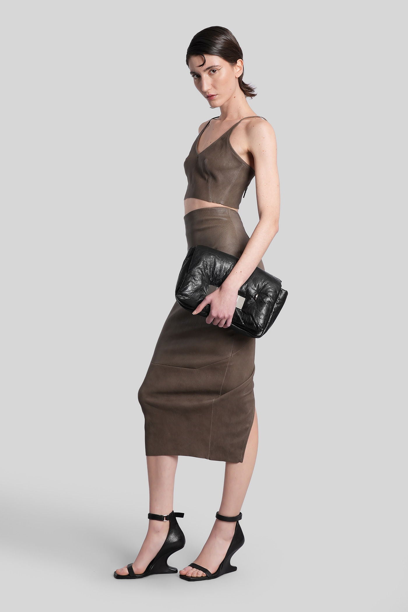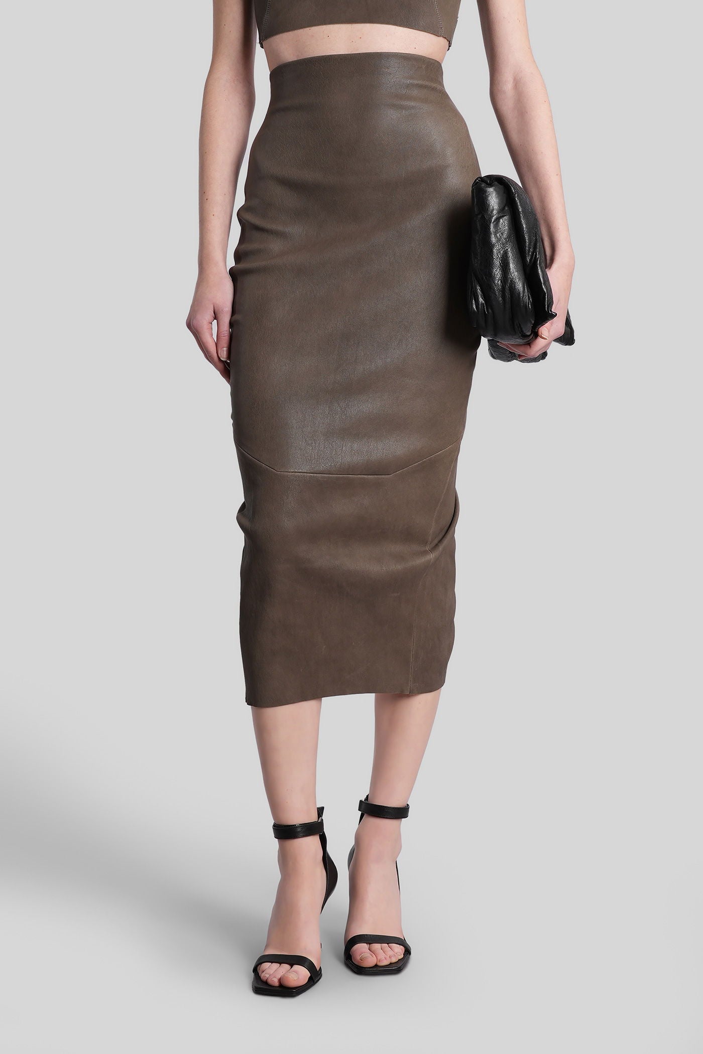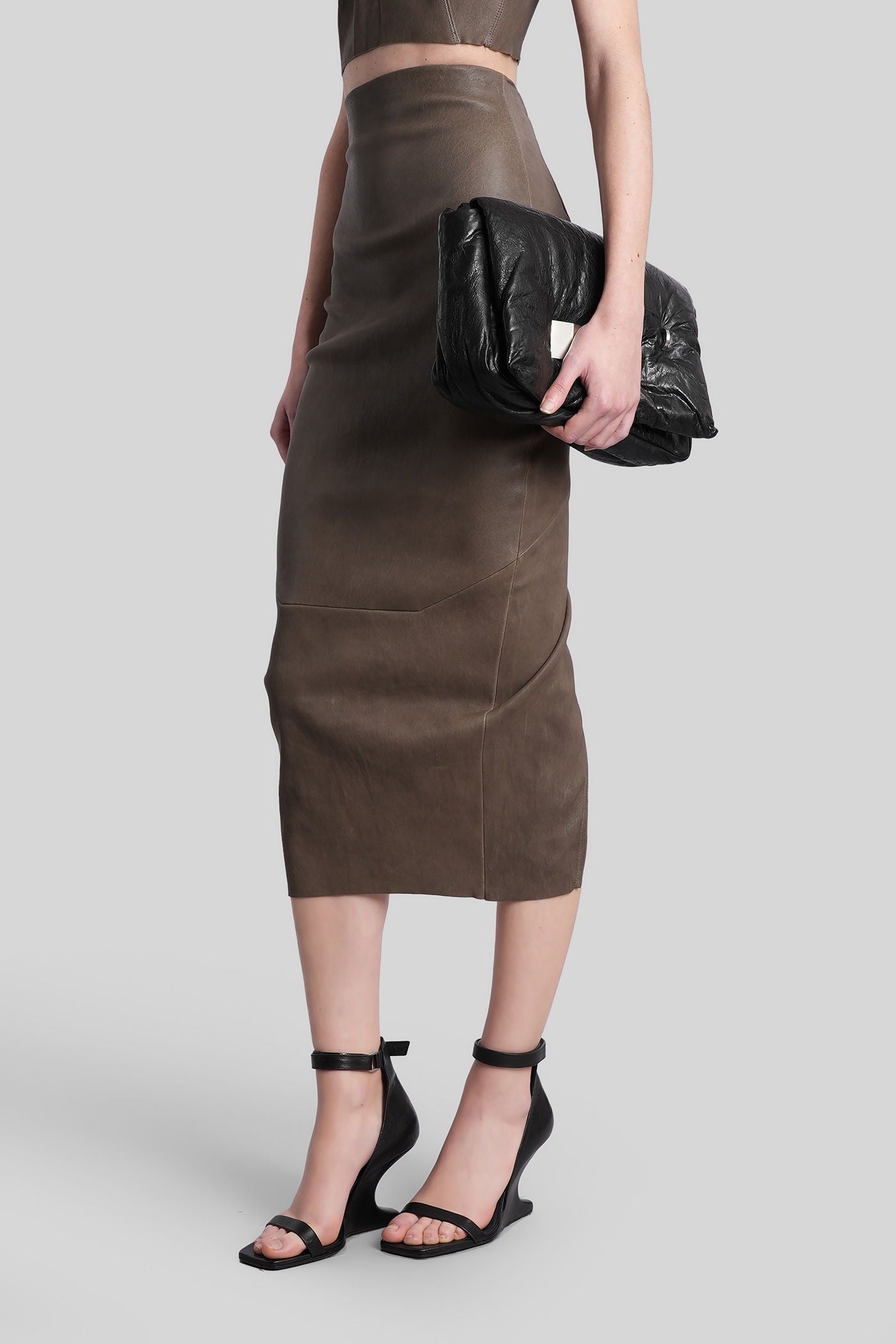 Calf dirt pillar Skirt in grey leather