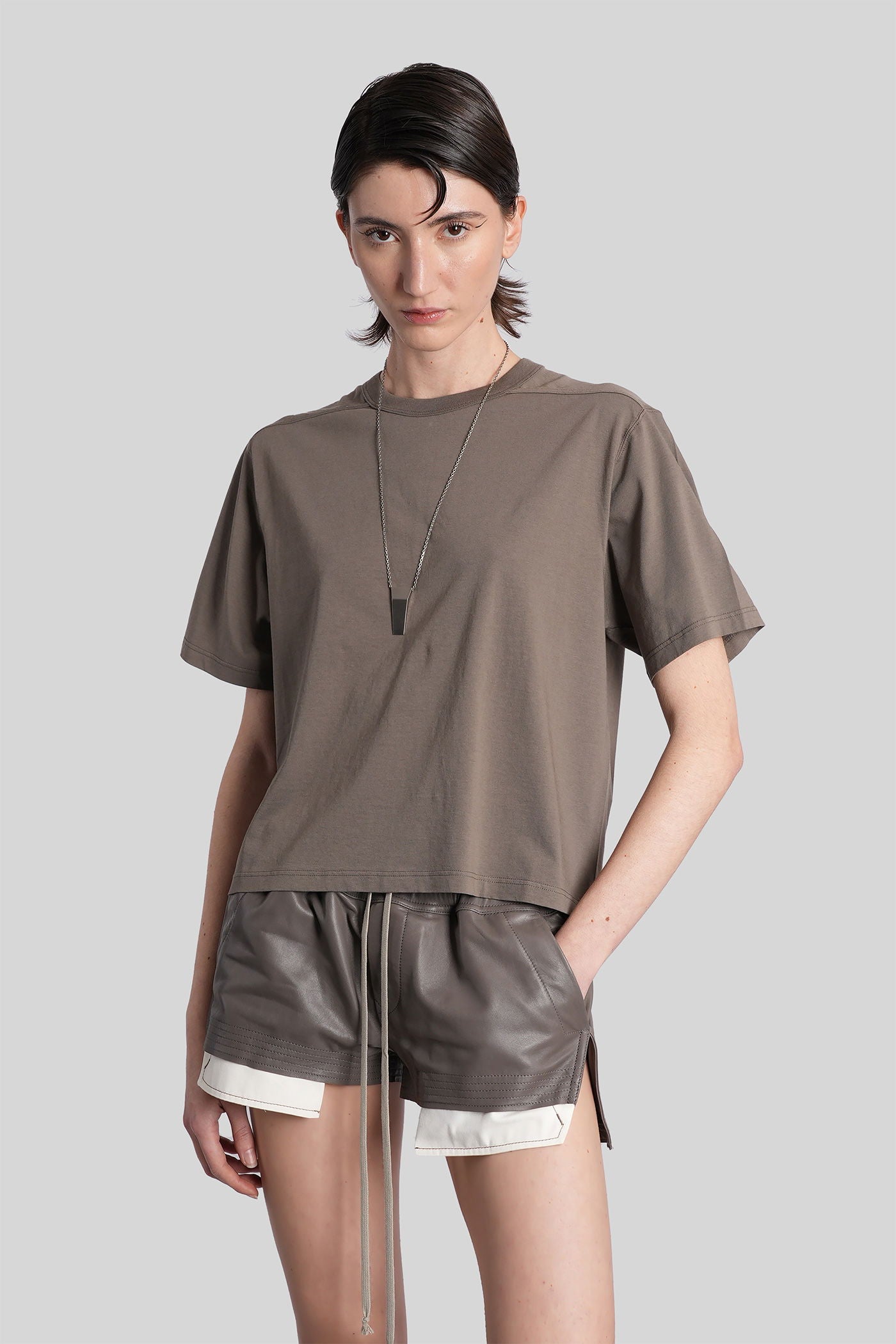 Cropped brad t T-Shirt in grey cotton