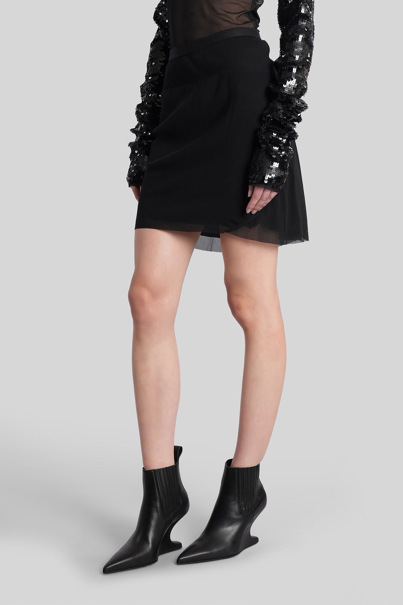 Short bias skirt Skirt in black silk