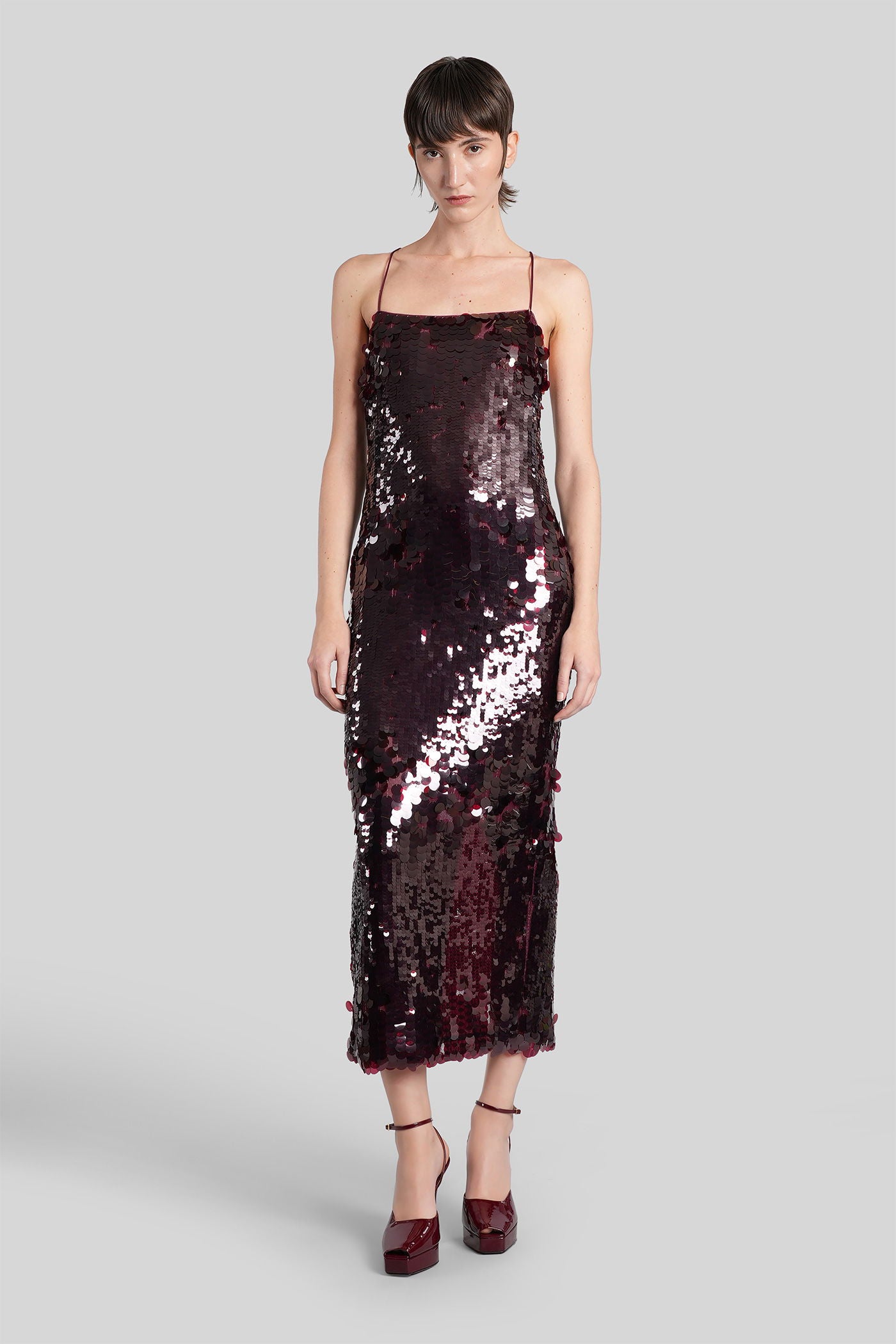 Long dress in bordeaux polyester