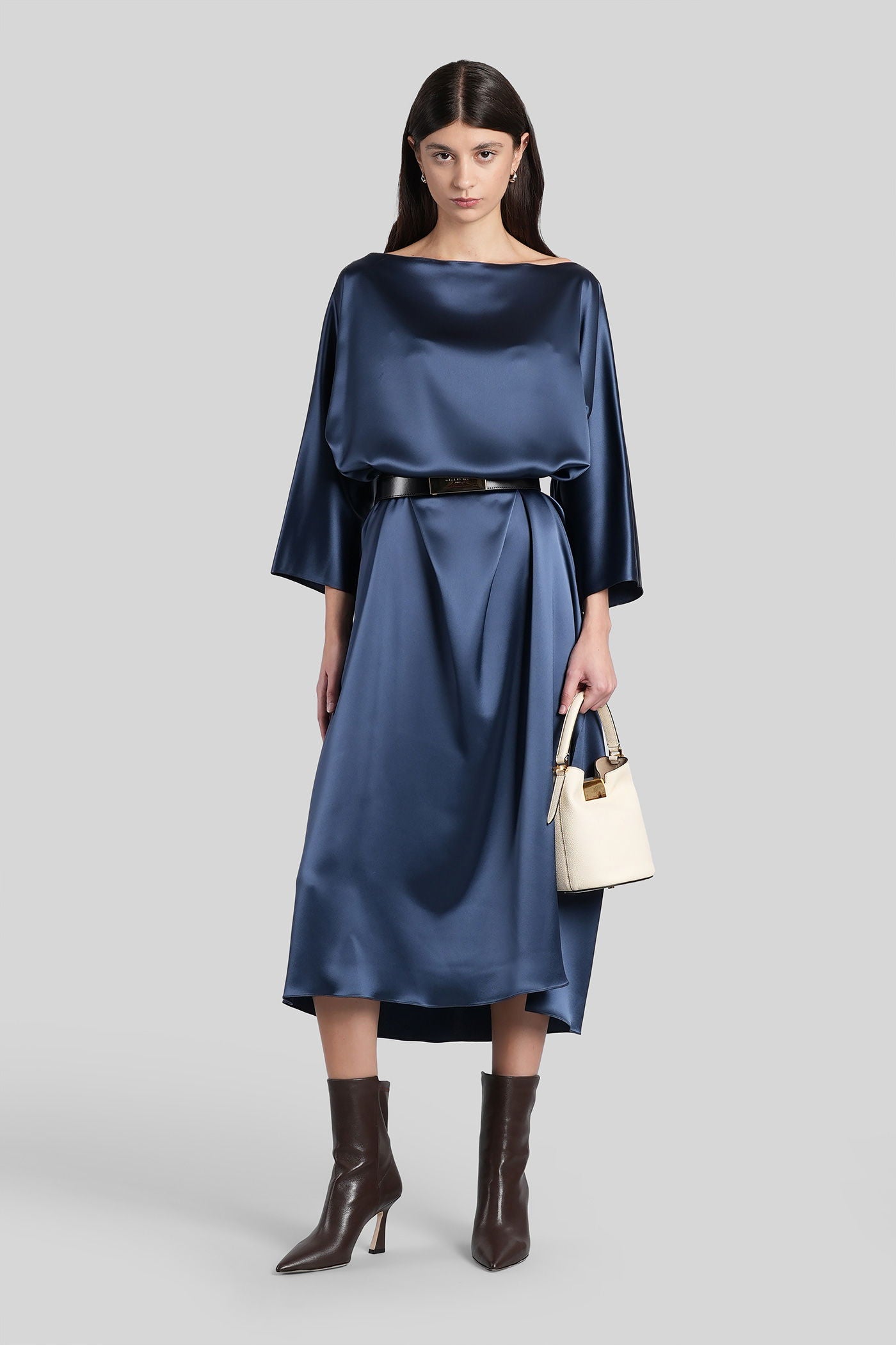 Laura long Long dress in blue Triacetate