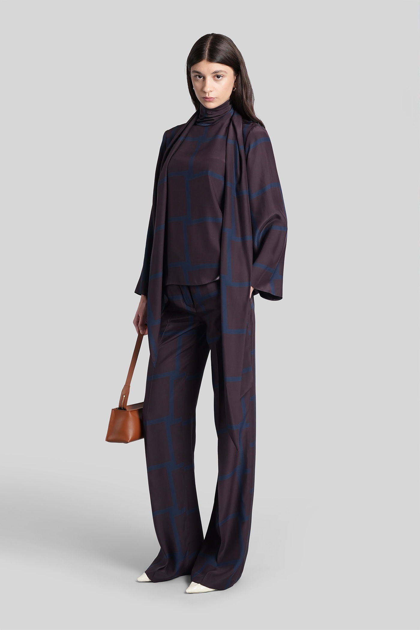 Antonia scarf Blouse in bordeaux silk