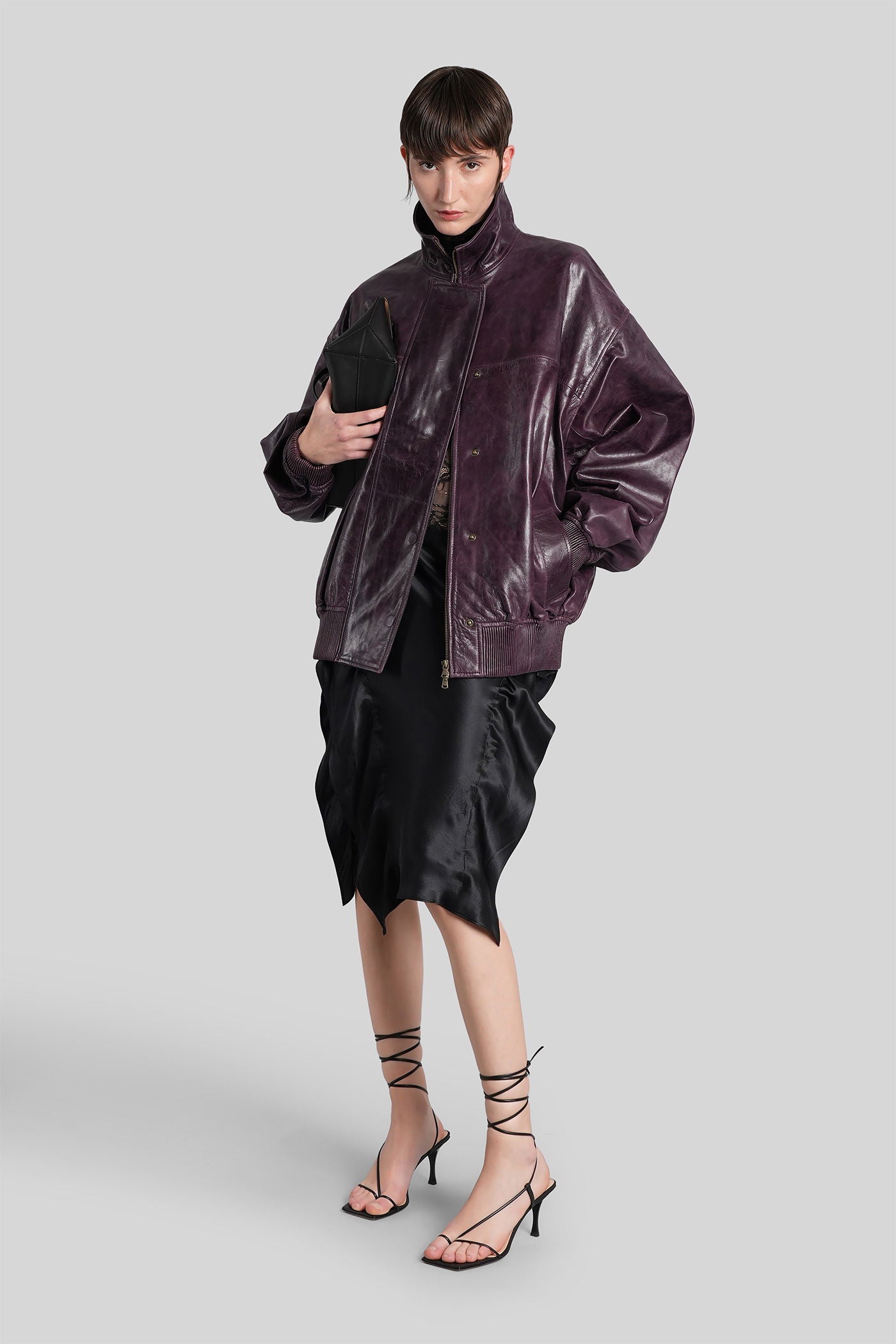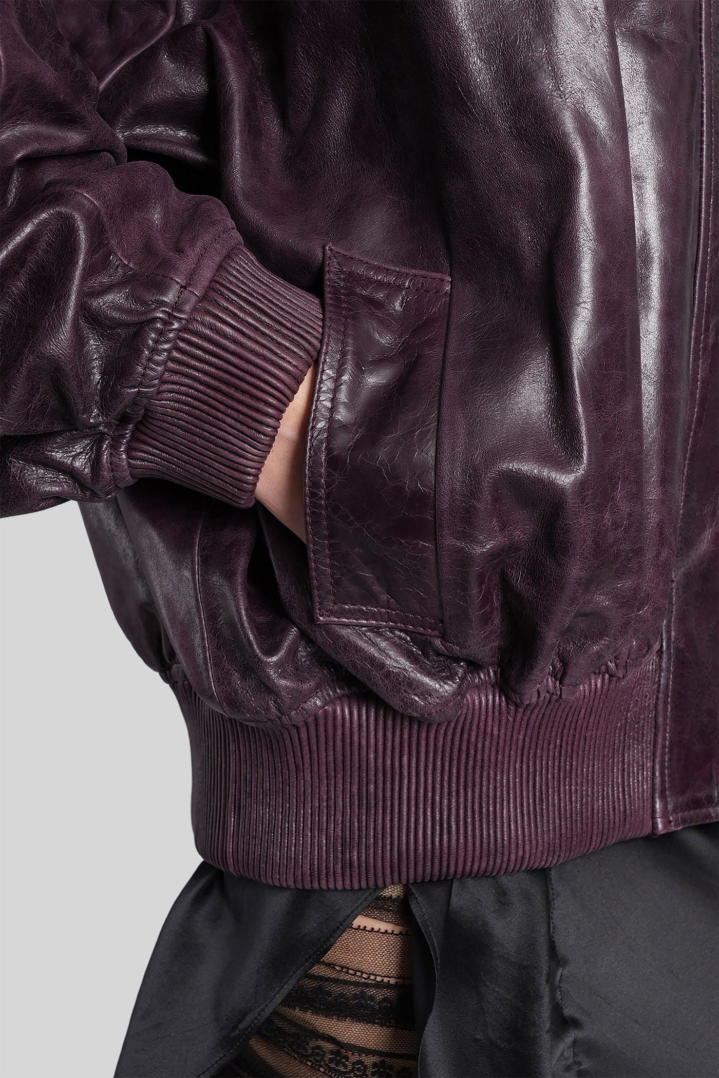 Leather bomber in bordeaux leather