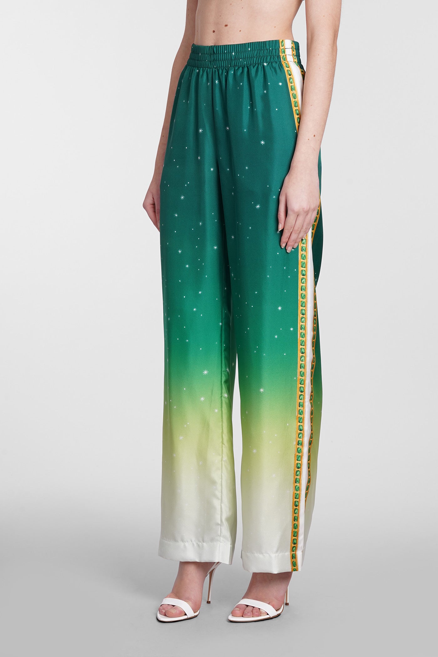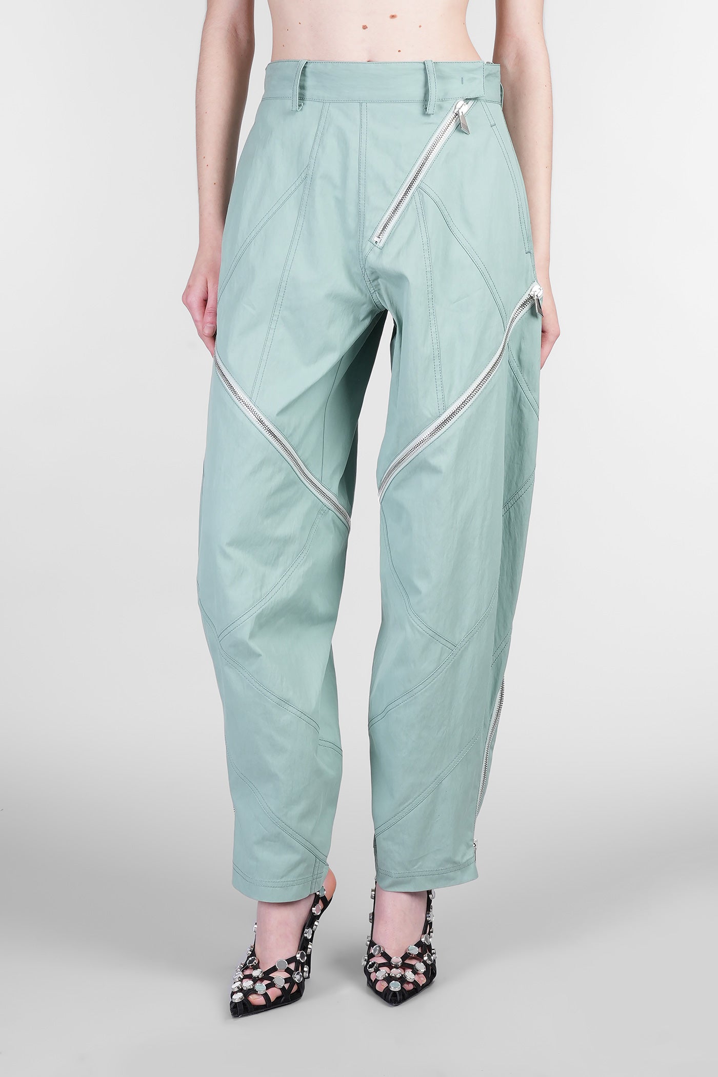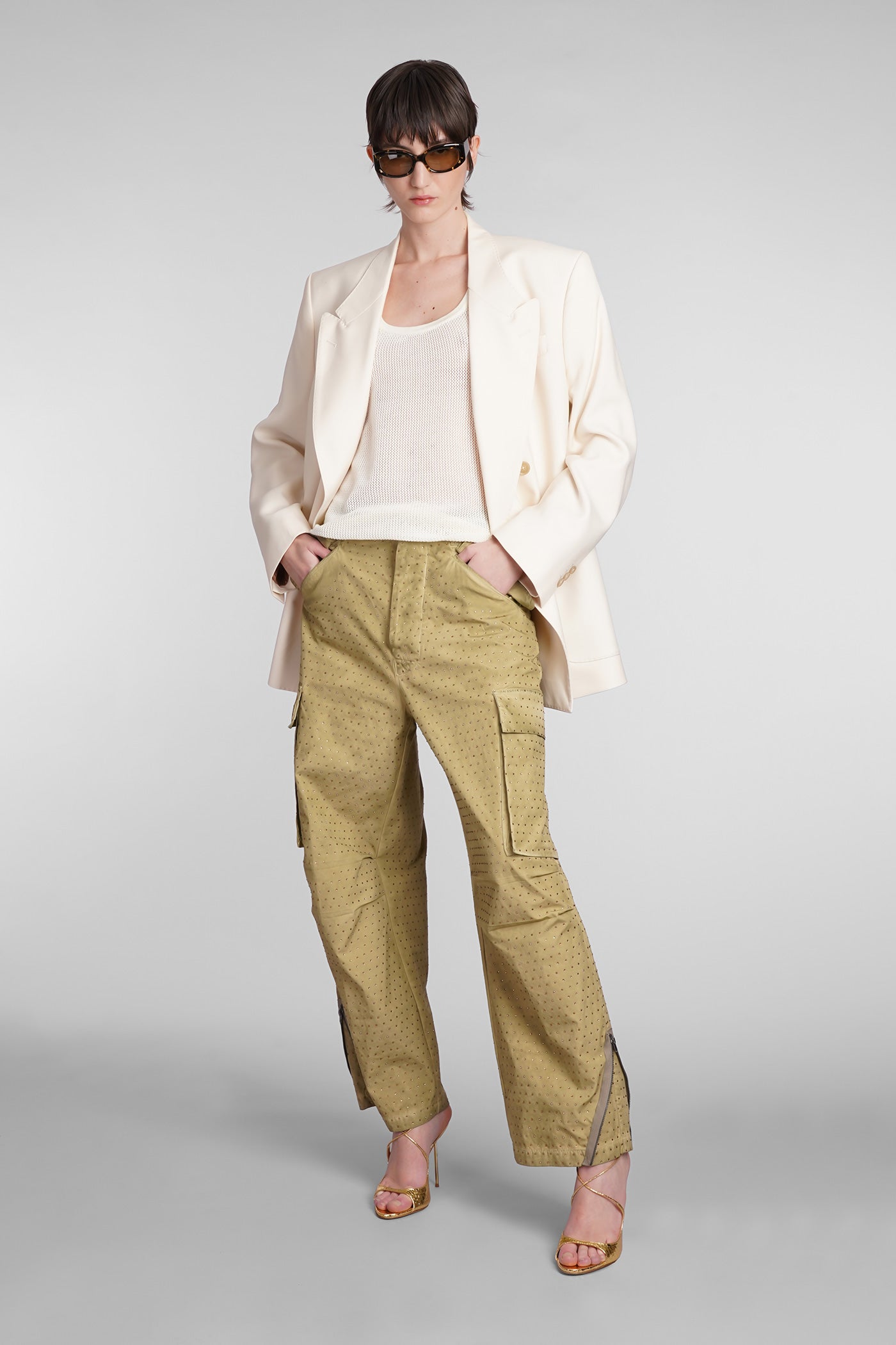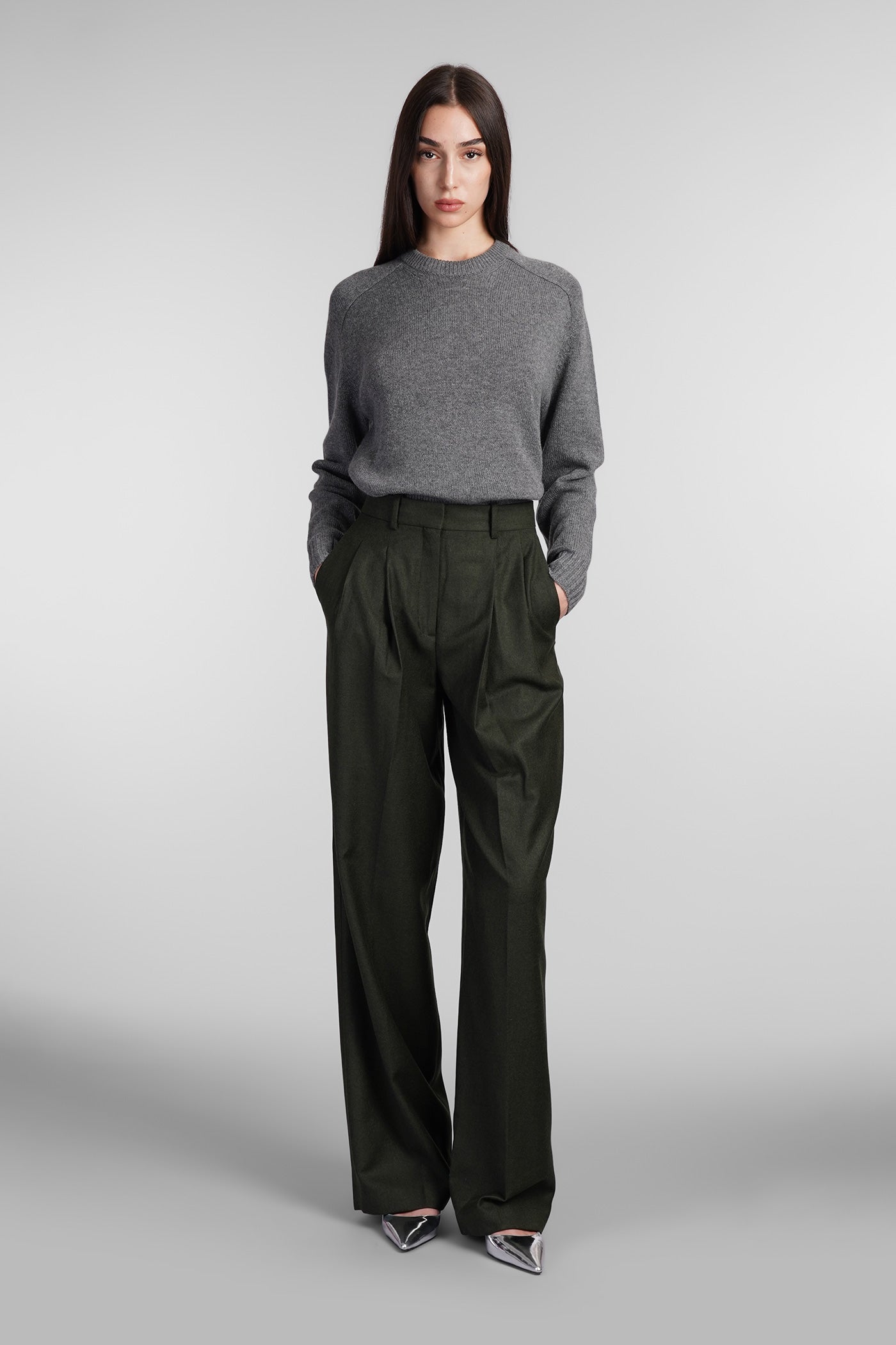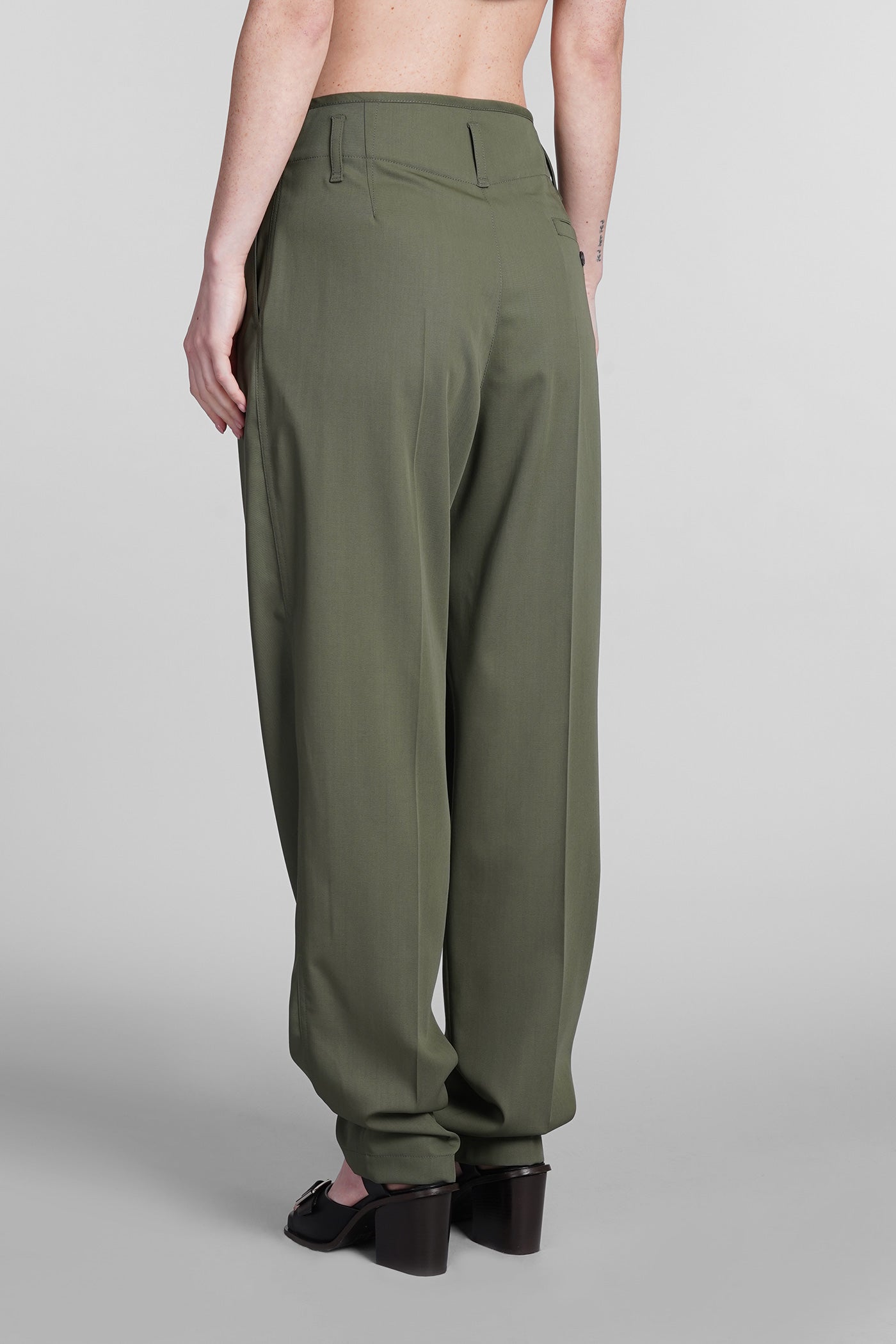 Explore the wide selection of trousers on Deliberti, the luxury fashion boutique offering the best brands. Find Marant's casual pants, Marine Serre's printed leggings, and Balmain's flared and cropped trousers for modern women. Discover also Givenchy's leather pants and Nanushka's, along with Jil Sander's sporty ones for the boldest. Whether you prefer a sleek and elegant cigarette cut, or a wide and cargo style, trousers are a practical and versatile garment, essential to complete every outfit. Find your style on Deliberti and add a touch of luxury to your wardrobe.