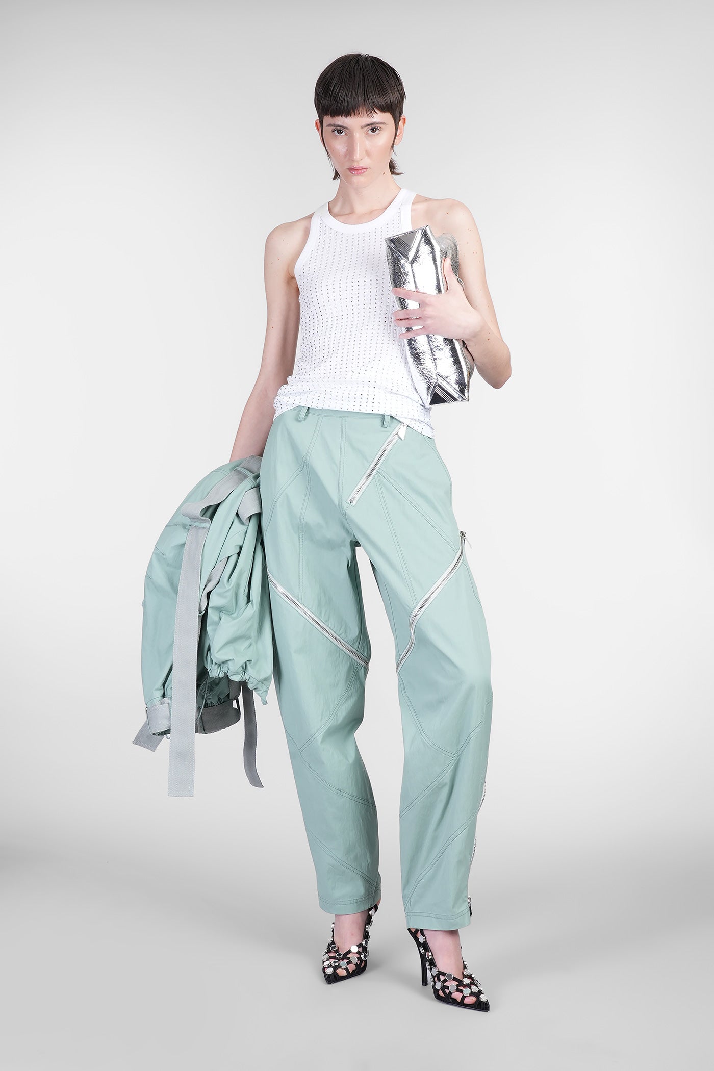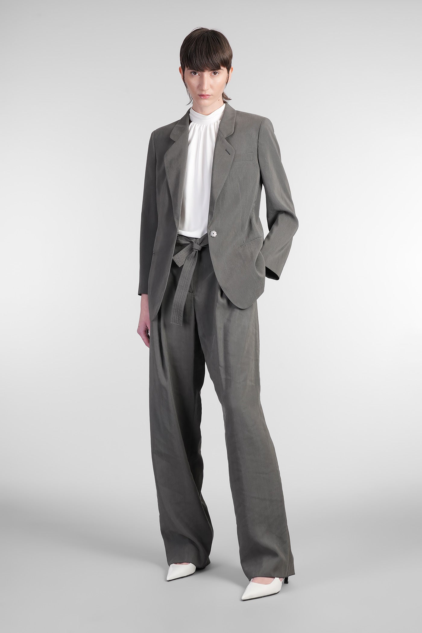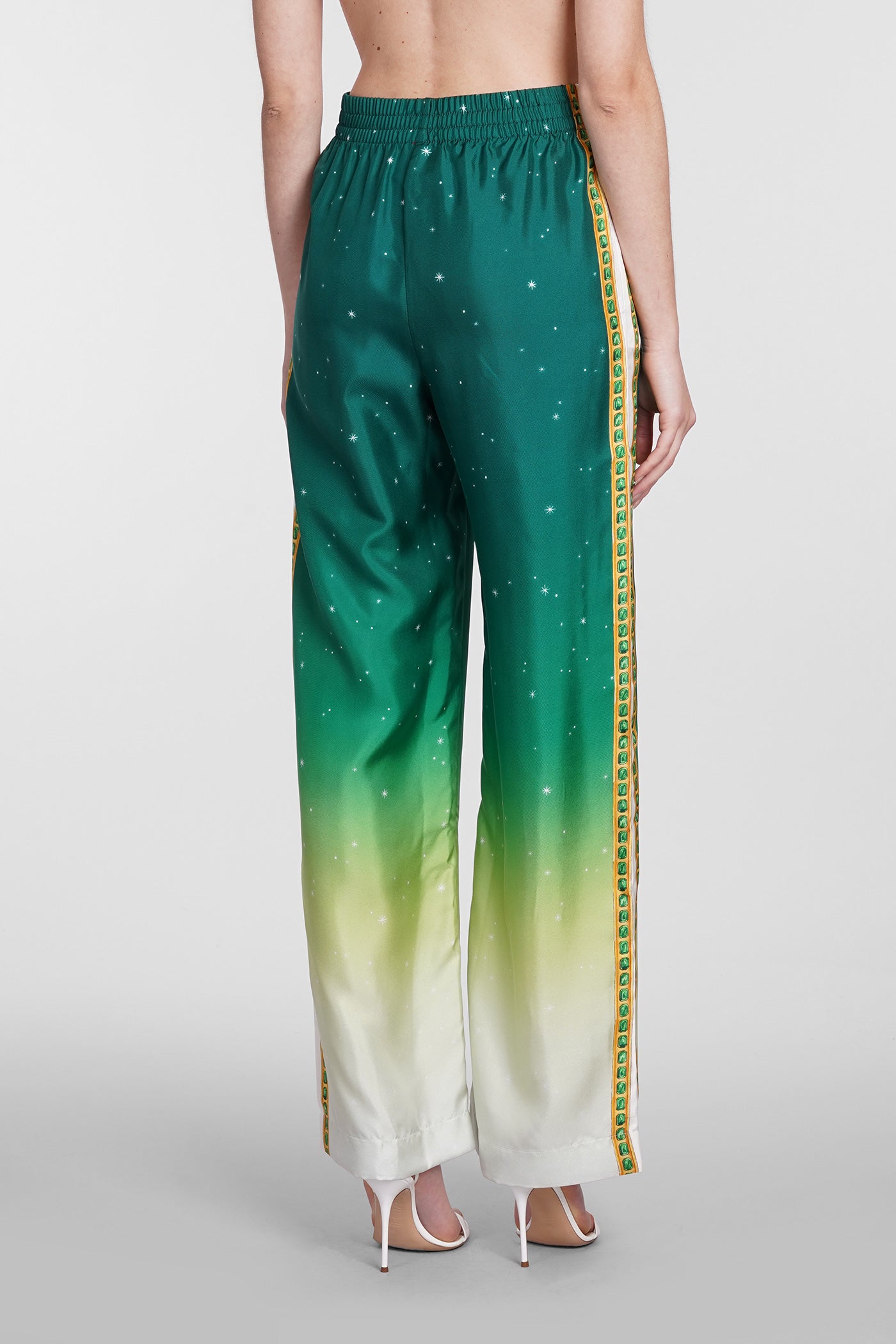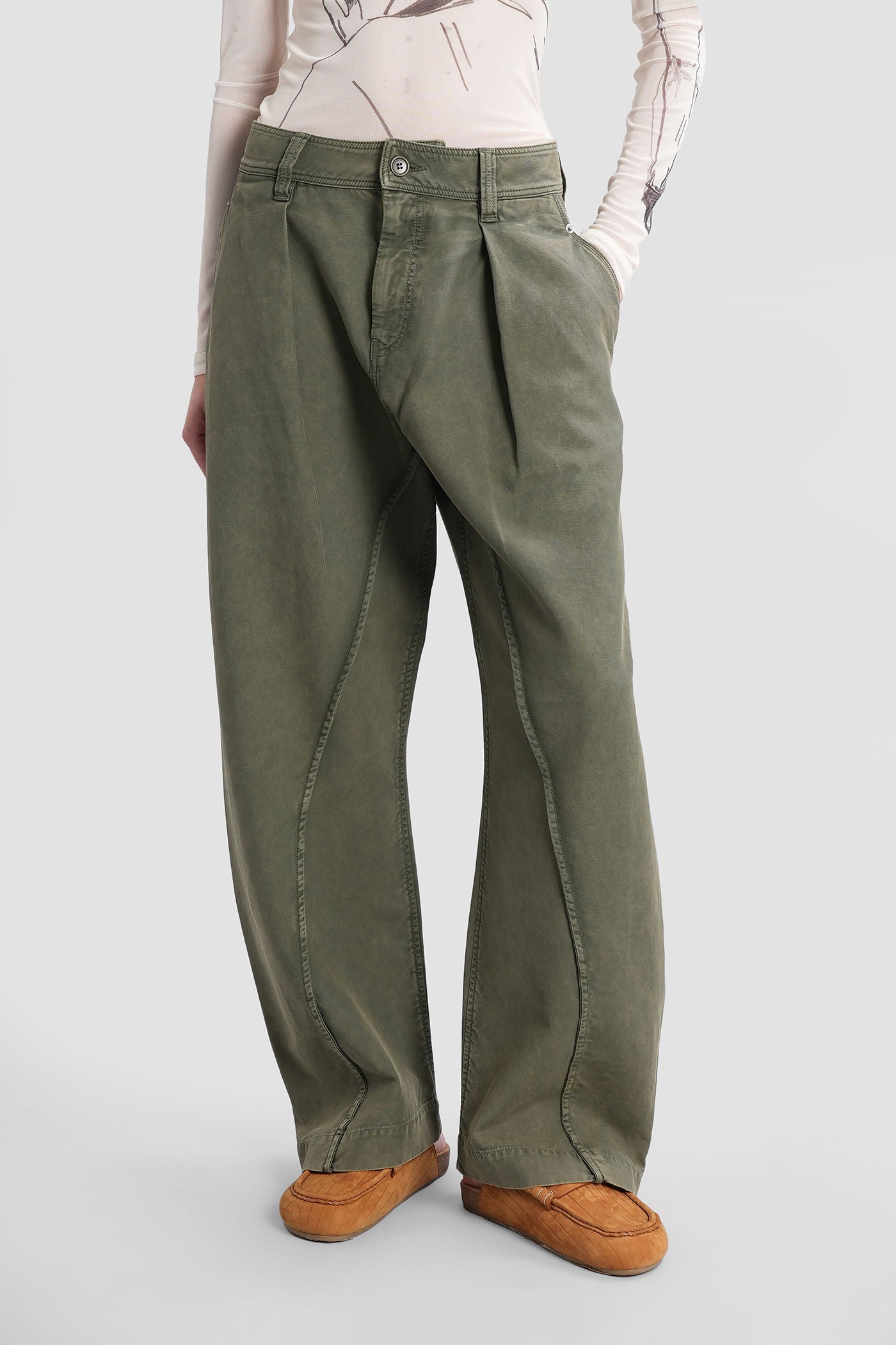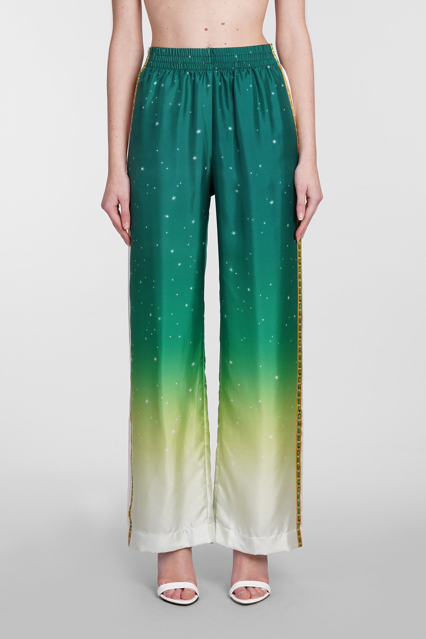 Explore the wide selection of trousers on Deliberti, the luxury fashion boutique offering the best brands. Find Marant's casual pants, Marine Serre's printed leggings, and Balmain's flared and cropped trousers for modern women. Discover also Givenchy's leather pants and Nanushka's, along with Jil Sander's sporty ones for the boldest. Whether you prefer a sleek and elegant cigarette cut, or a wide and cargo style, trousers are a practical and versatile garment, essential to complete every outfit. Find your style on Deliberti and add a touch of luxury to your wardrobe.