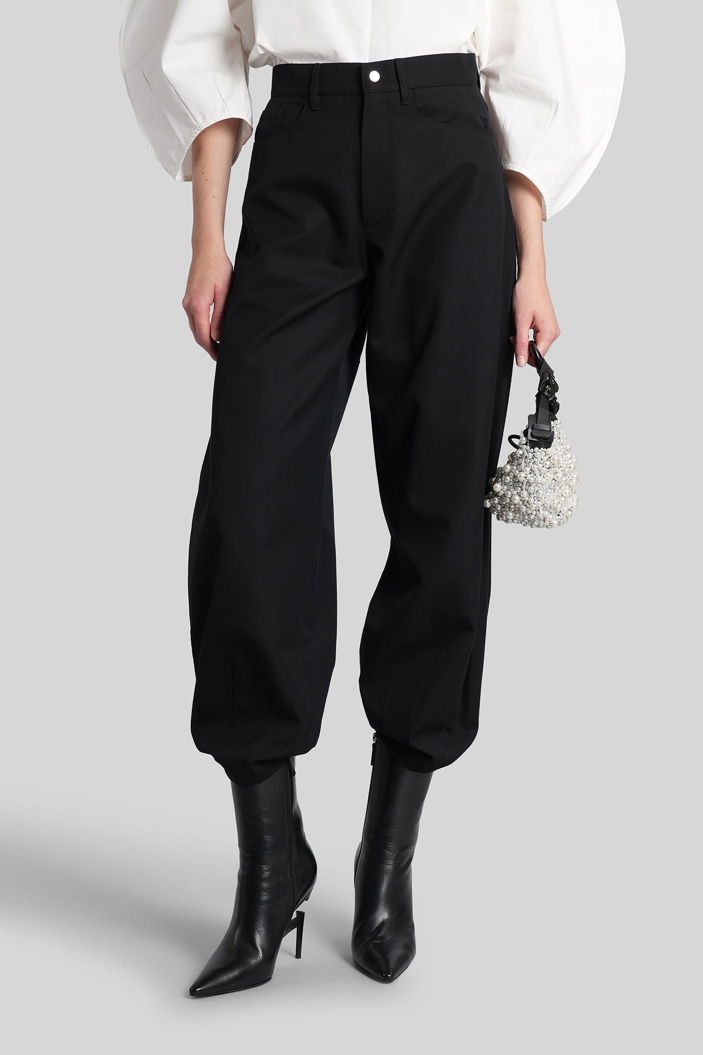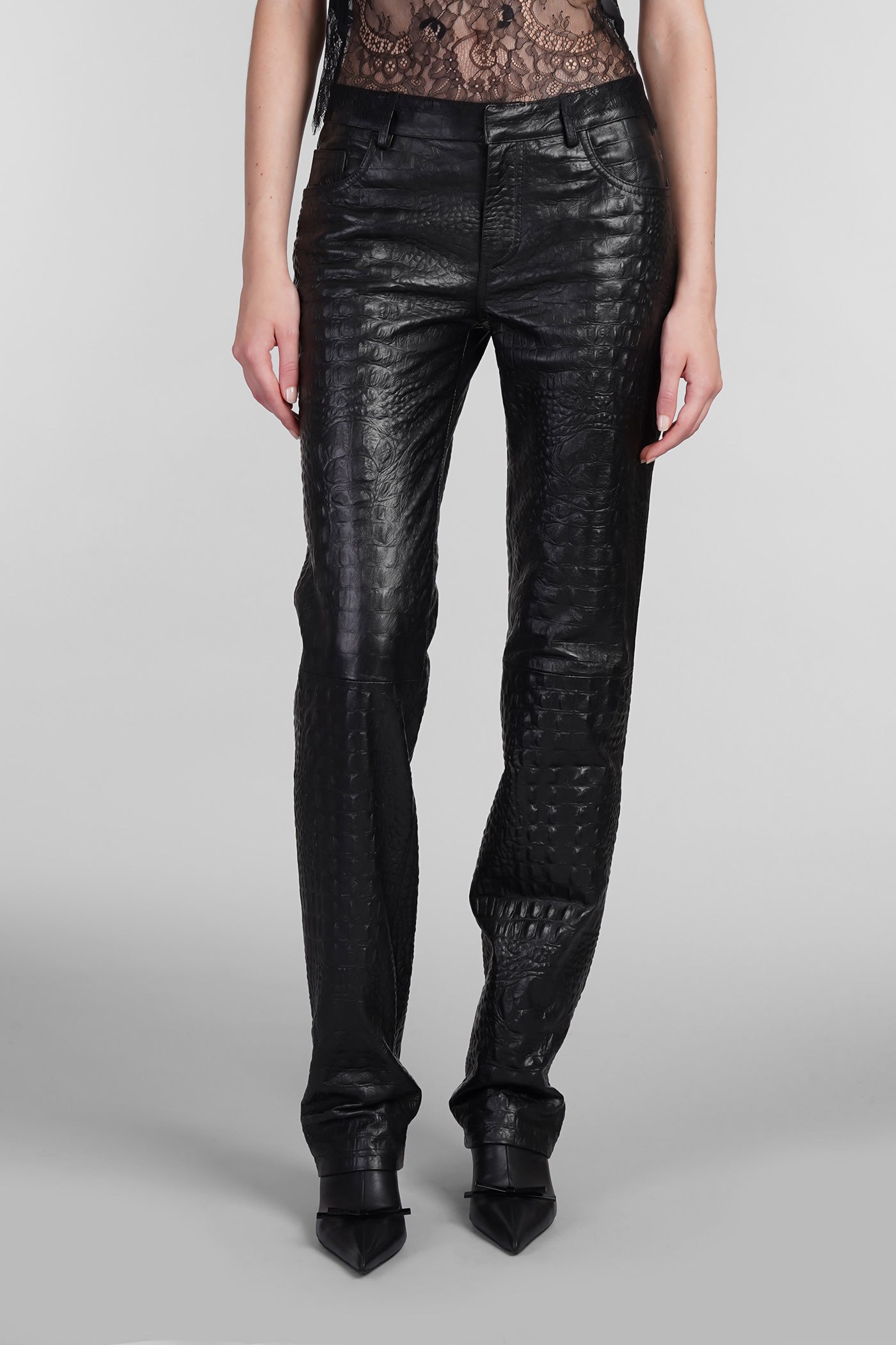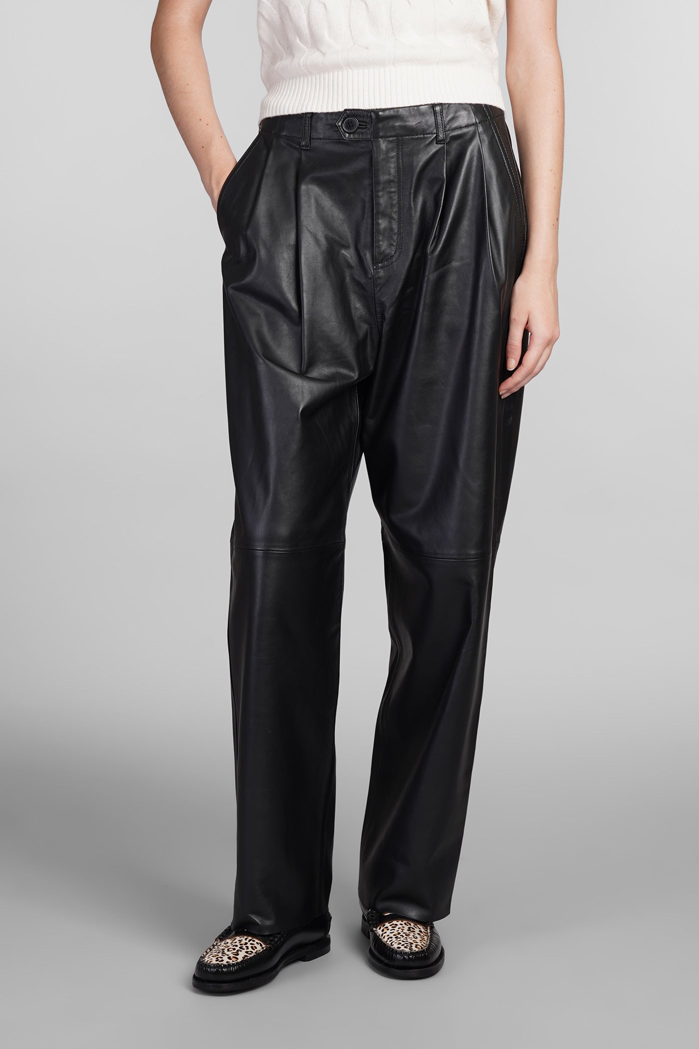 Explore the wide selection of trousers on Deliberti, the luxury fashion boutique offering the best brands. Find Marant's casual pants, Marine Serre's printed leggings, and Balmain's flared and cropped trousers for modern women. Discover also Givenchy's leather pants and Nanushka's, along with Jil Sander's sporty ones for the boldest. Whether you prefer a sleek and elegant cigarette cut, or a wide and cargo style, trousers are a practical and versatile garment, essential to complete every outfit. Find your style on Deliberti and add a touch of luxury to your wardrobe.