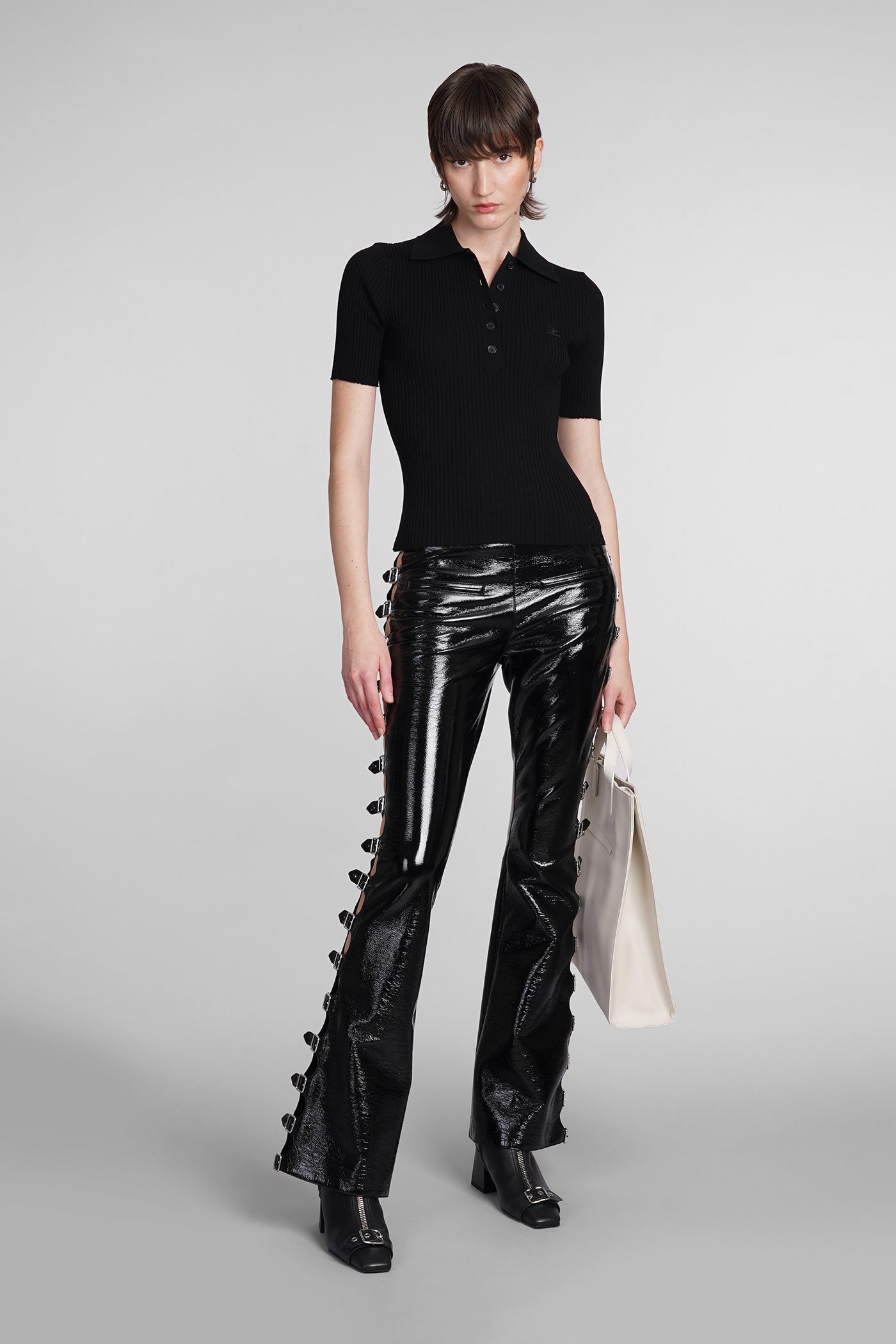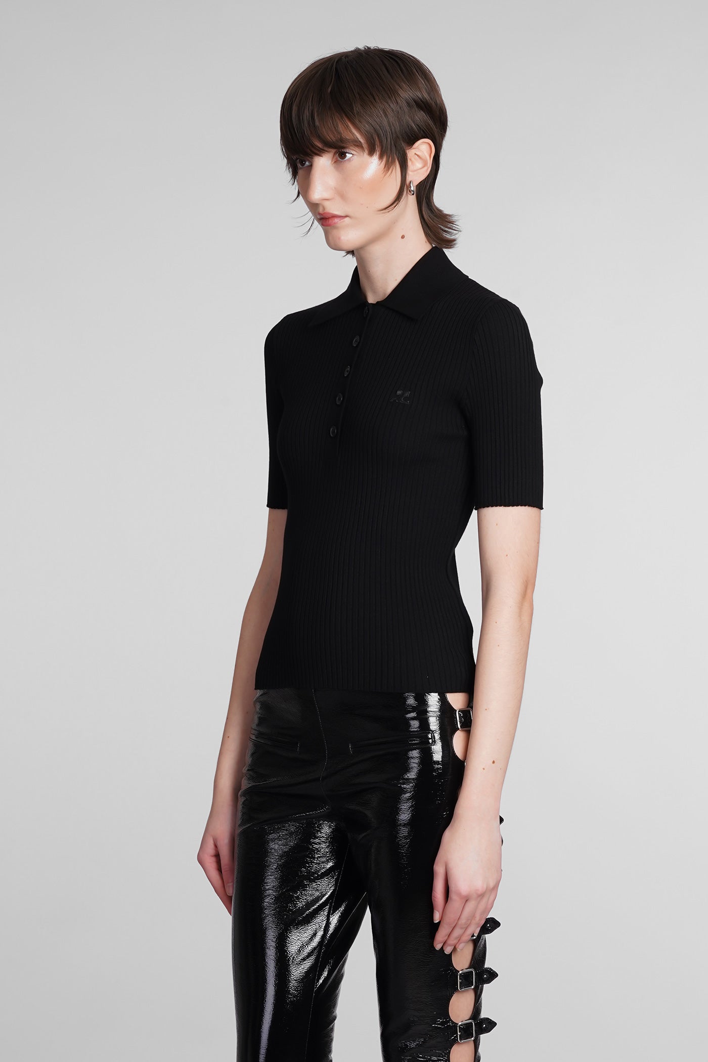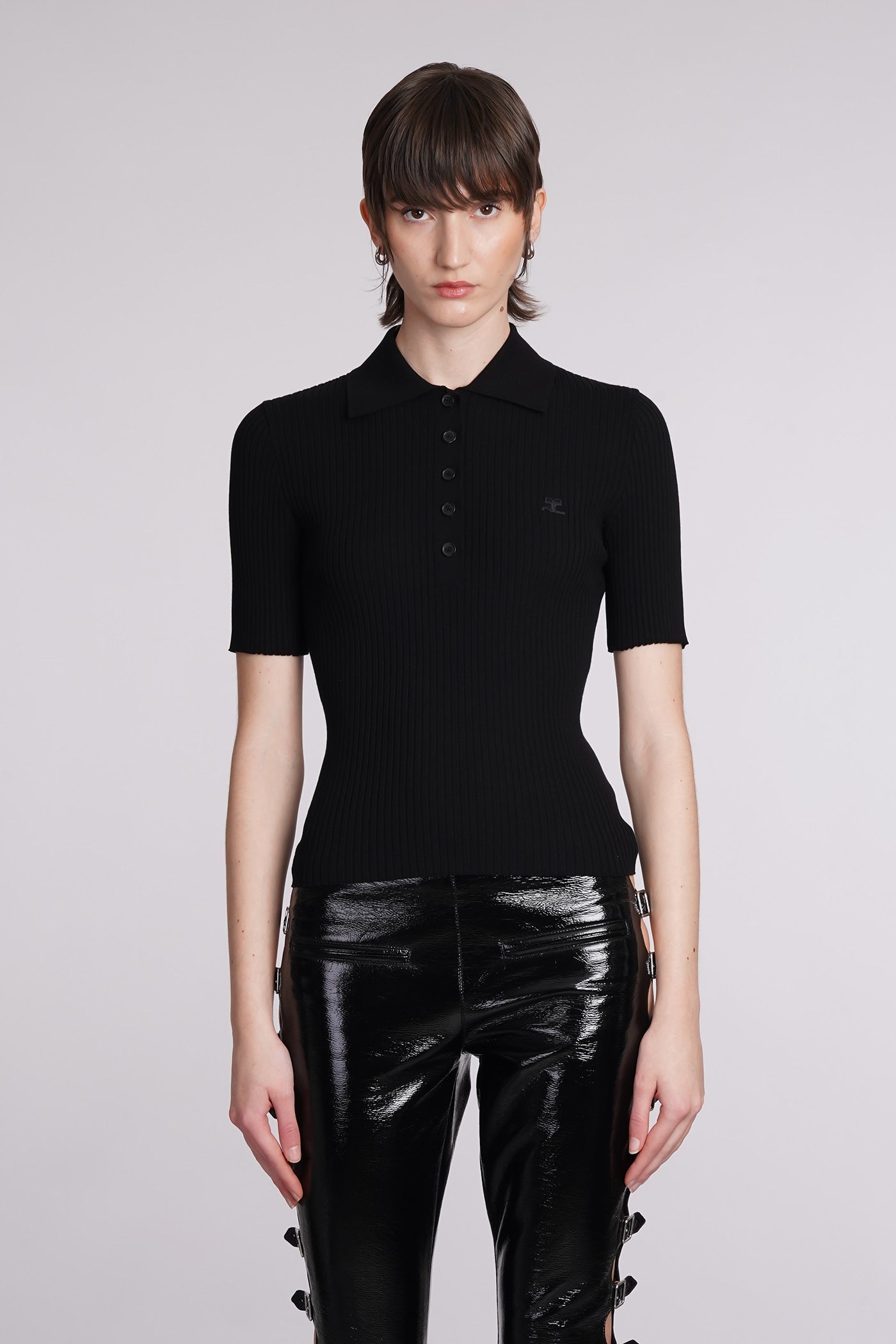 Polo in black viscose