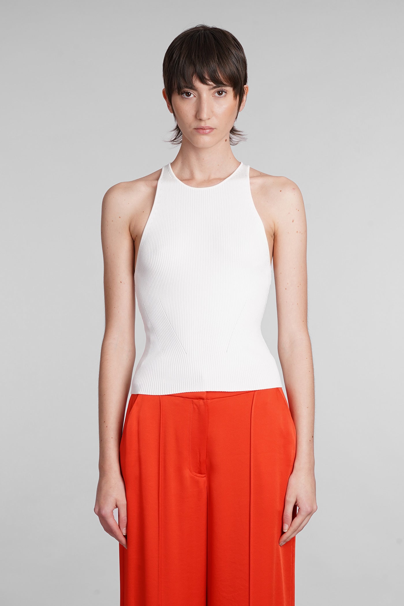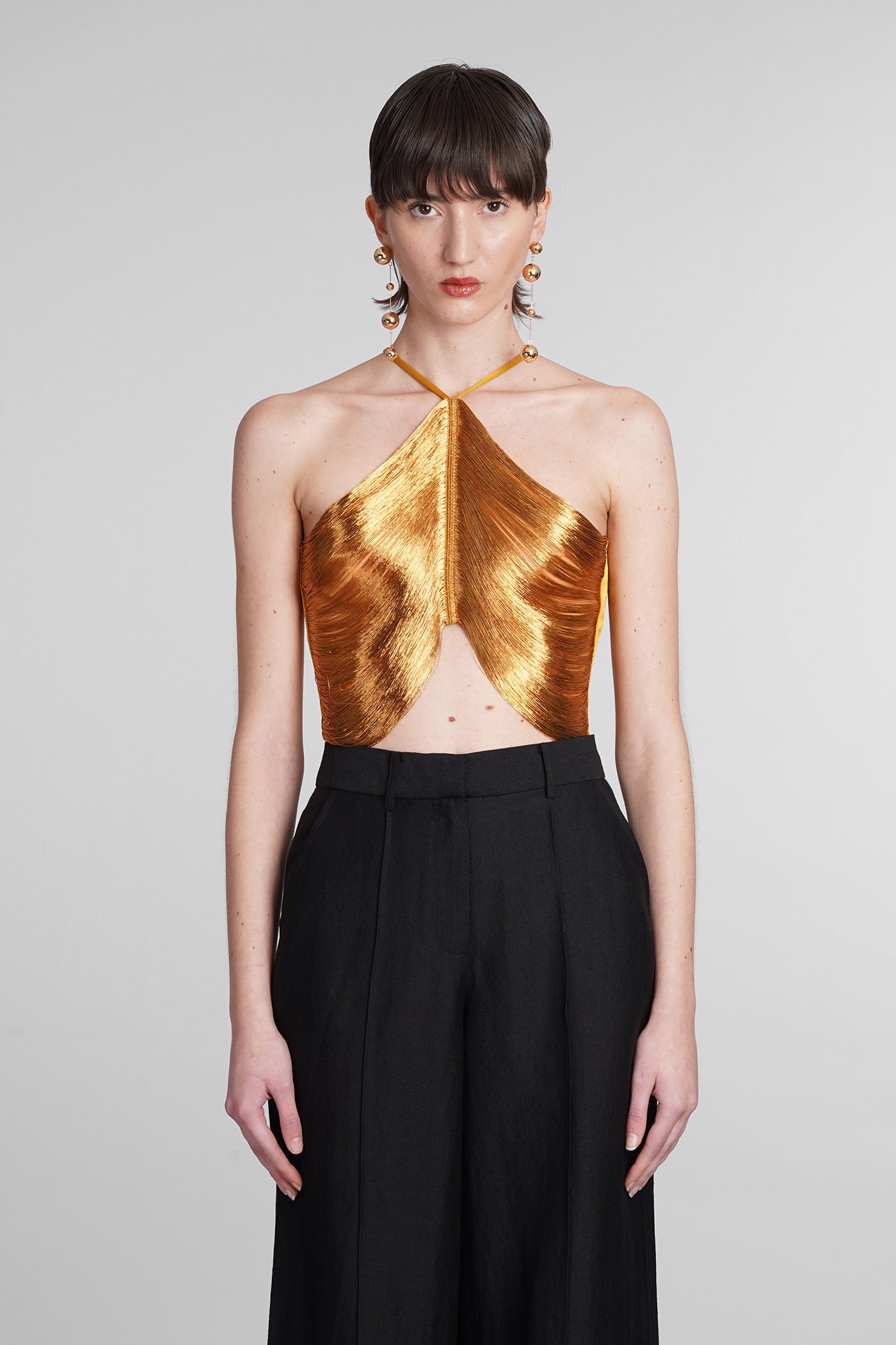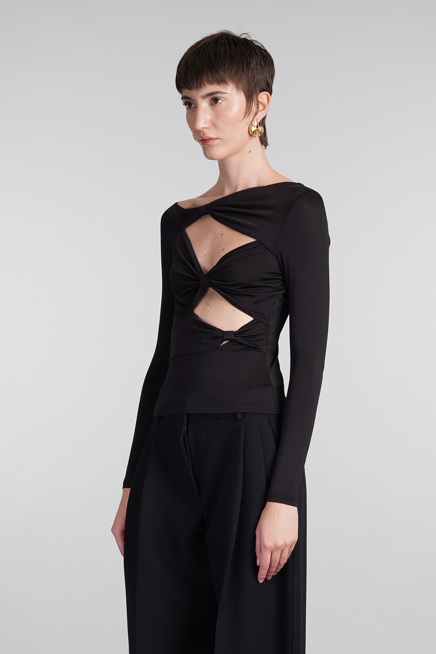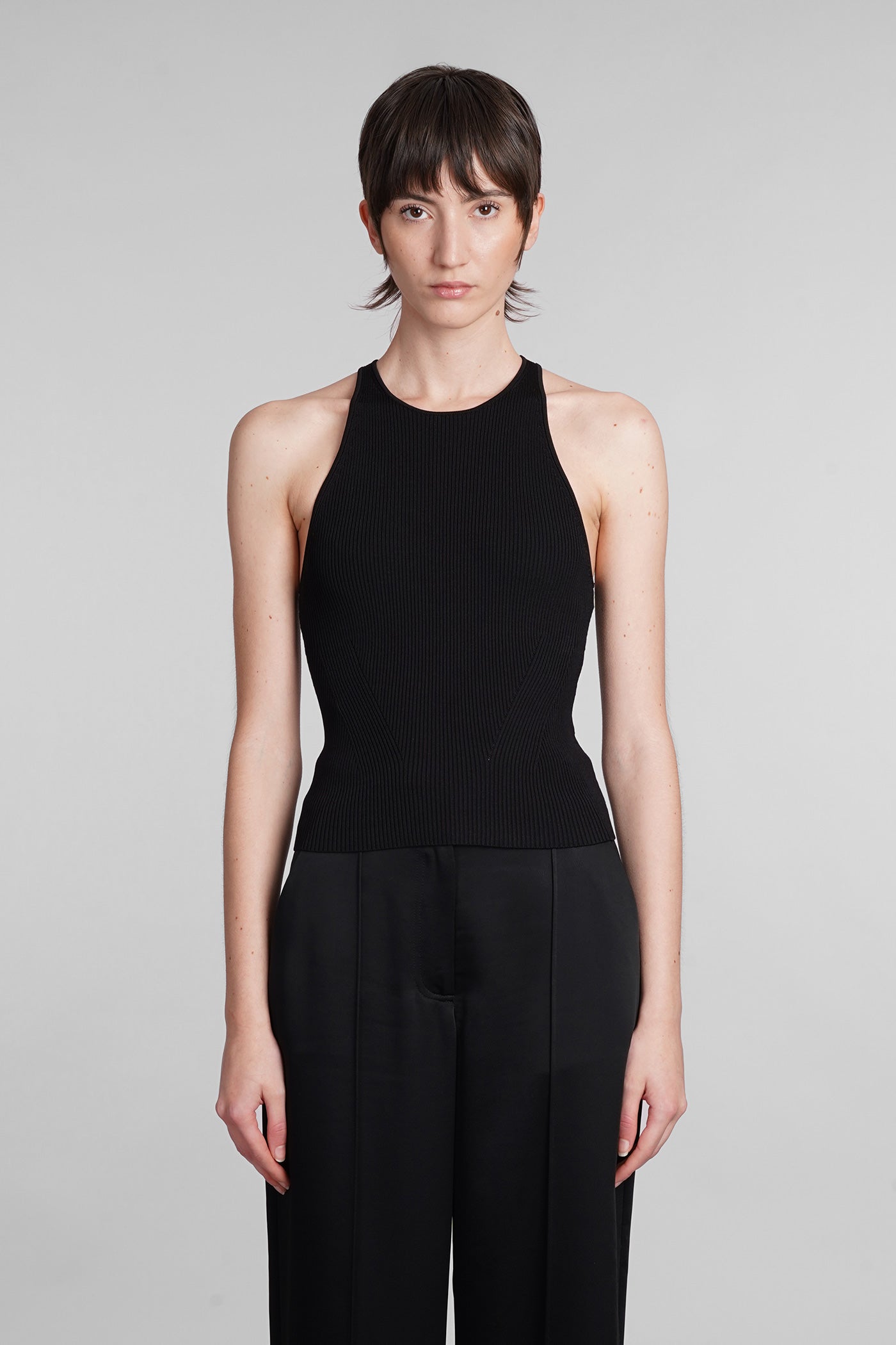 Explore the collection of bodysuits and tops on Deliberti, the luxury fashion boutique for bold and sophisticated women. Discover the feminine and sensual bodysuits by Mugler and the evening tops by Magda Butrym, perfect for special occasions. For a simple style, opt for Balmain tank tops and casual tops by Courreges. If you're looking for a timeless touch of elegance, try Giorgio Armani's sleeveless elegant tops, while for a romantic look, don't miss Christopher Esber's tops with transparencies and off-shoulder styles. Find your perfect piece on Deliberti and add a touch of class to your wardrobe.