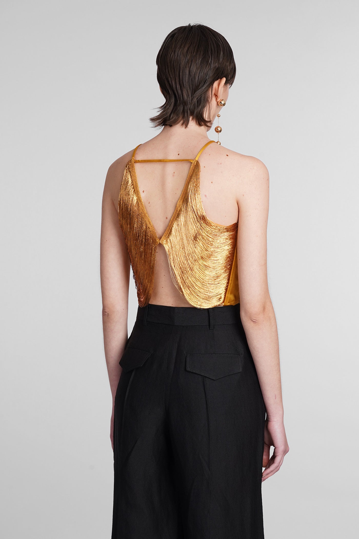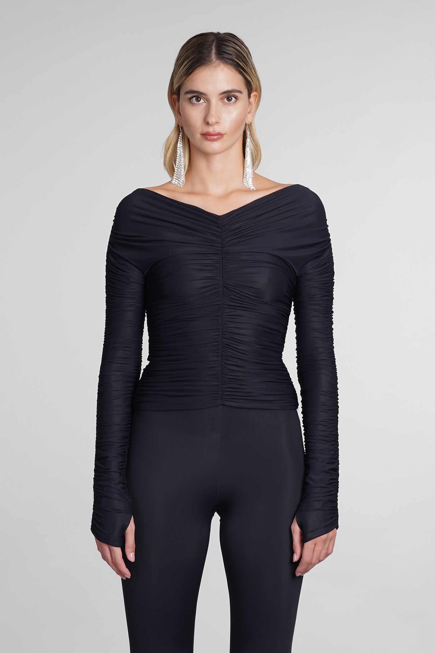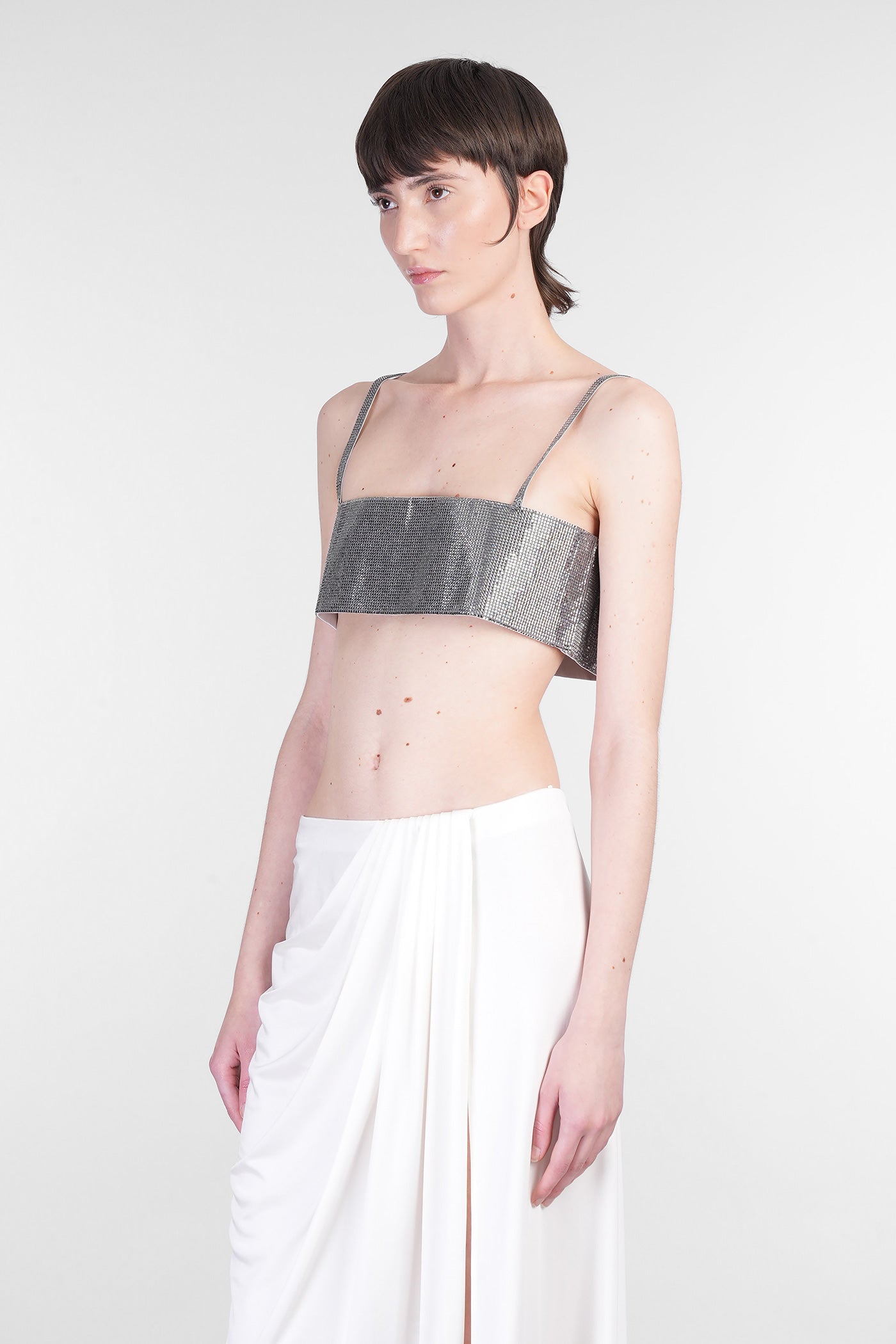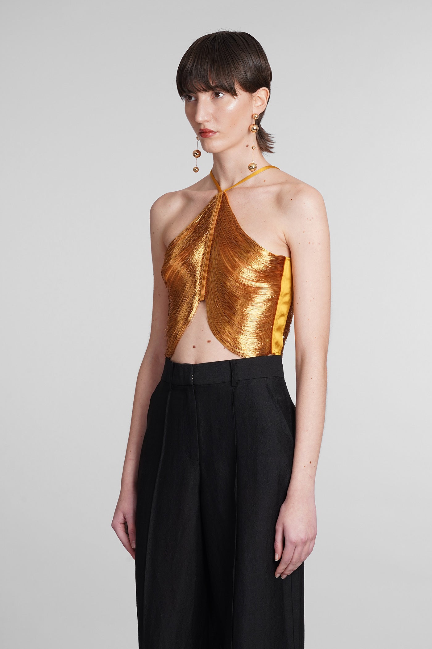 Explore the collection of bodysuits and tops on Deliberti, the luxury fashion boutique for bold and sophisticated women. Discover the feminine and sensual bodysuits by Mugler and the evening tops by Magda Butrym, perfect for special occasions. For a simple style, opt for Balmain tank tops and casual tops by Courreges. If you're looking for a timeless touch of elegance, try Giorgio Armani's sleeveless elegant tops, while for a romantic look, don't miss Christopher Esber's tops with transparencies and off-shoulder styles. Find your perfect piece on Deliberti and add a touch of class to your wardrobe.