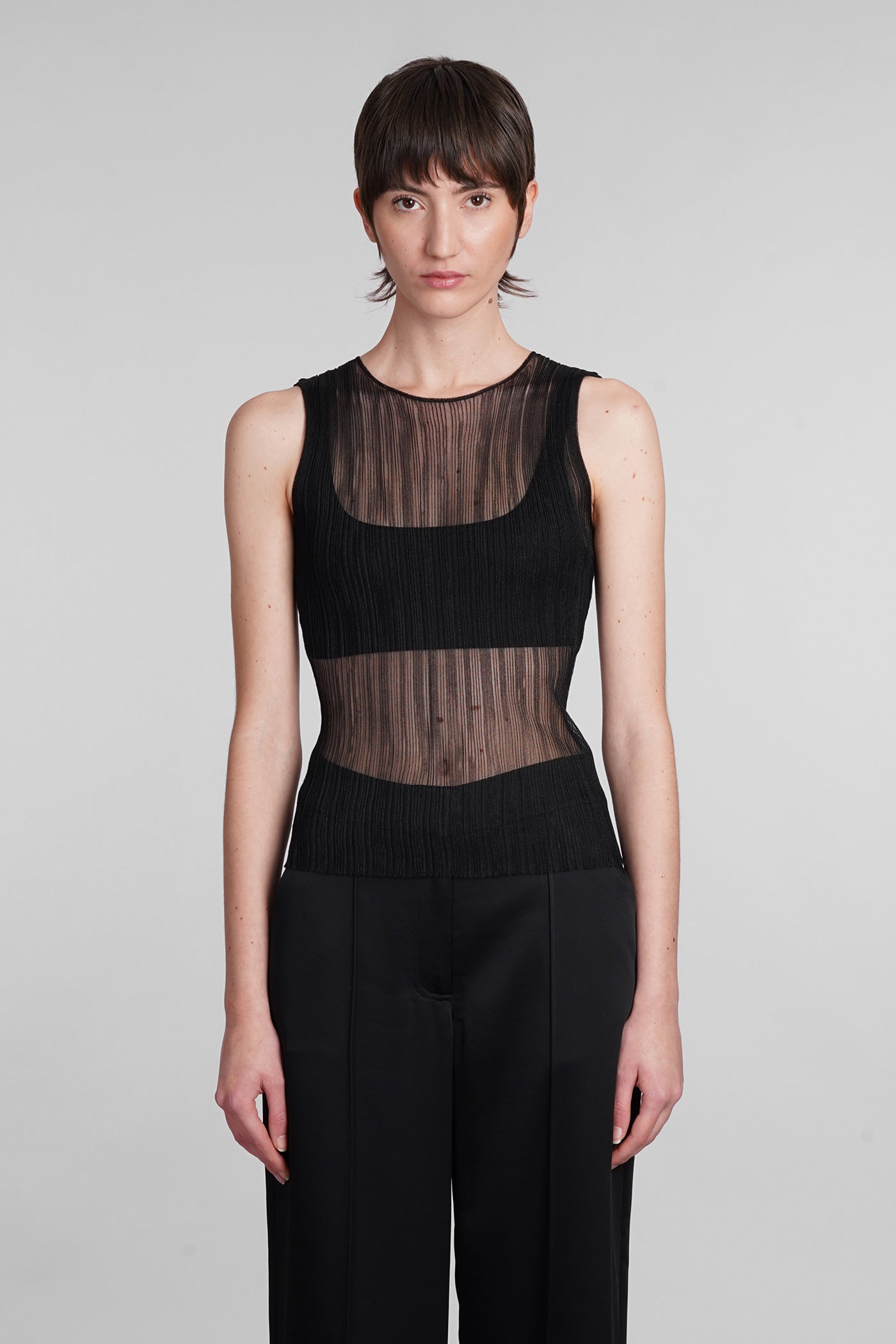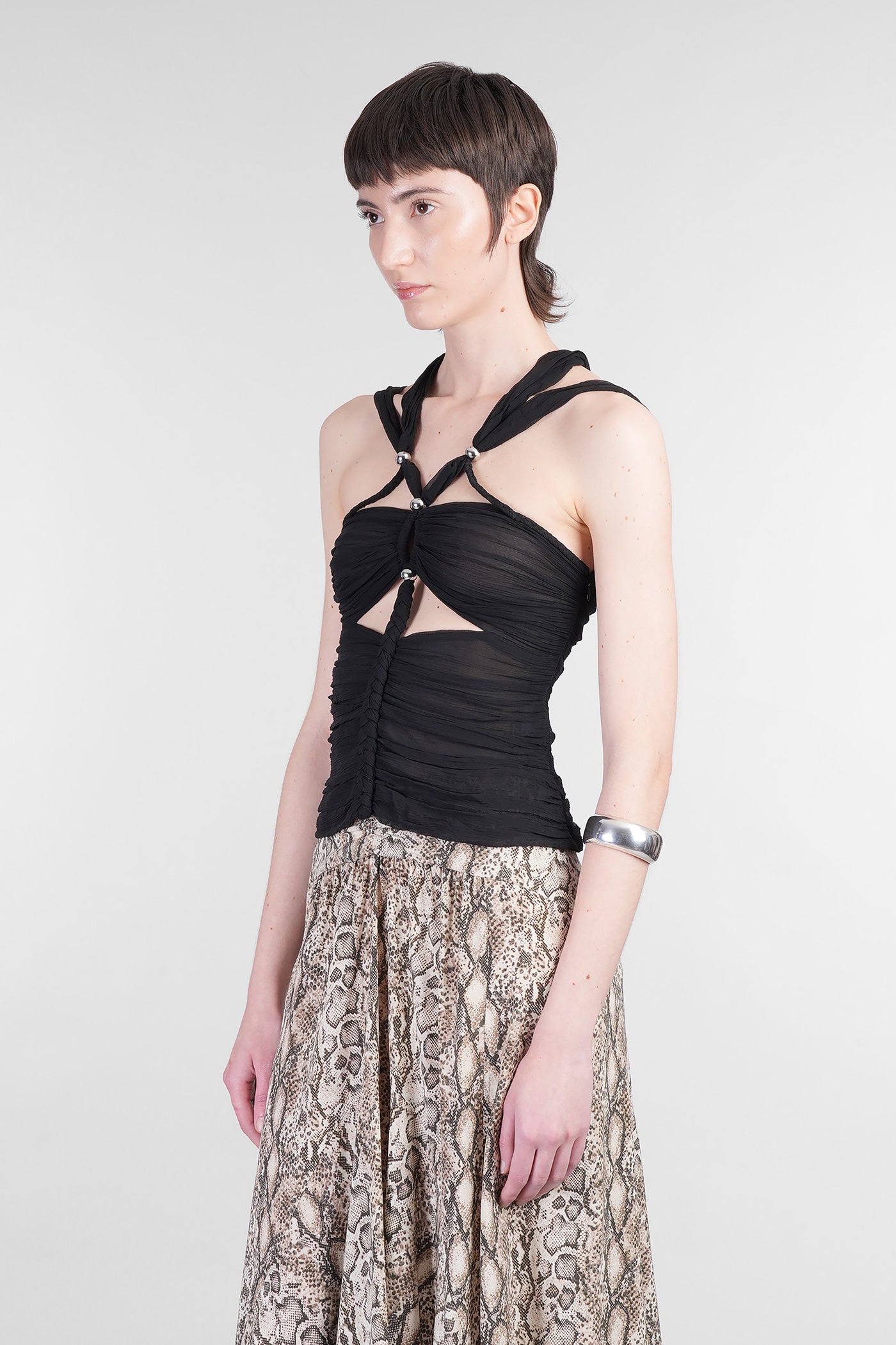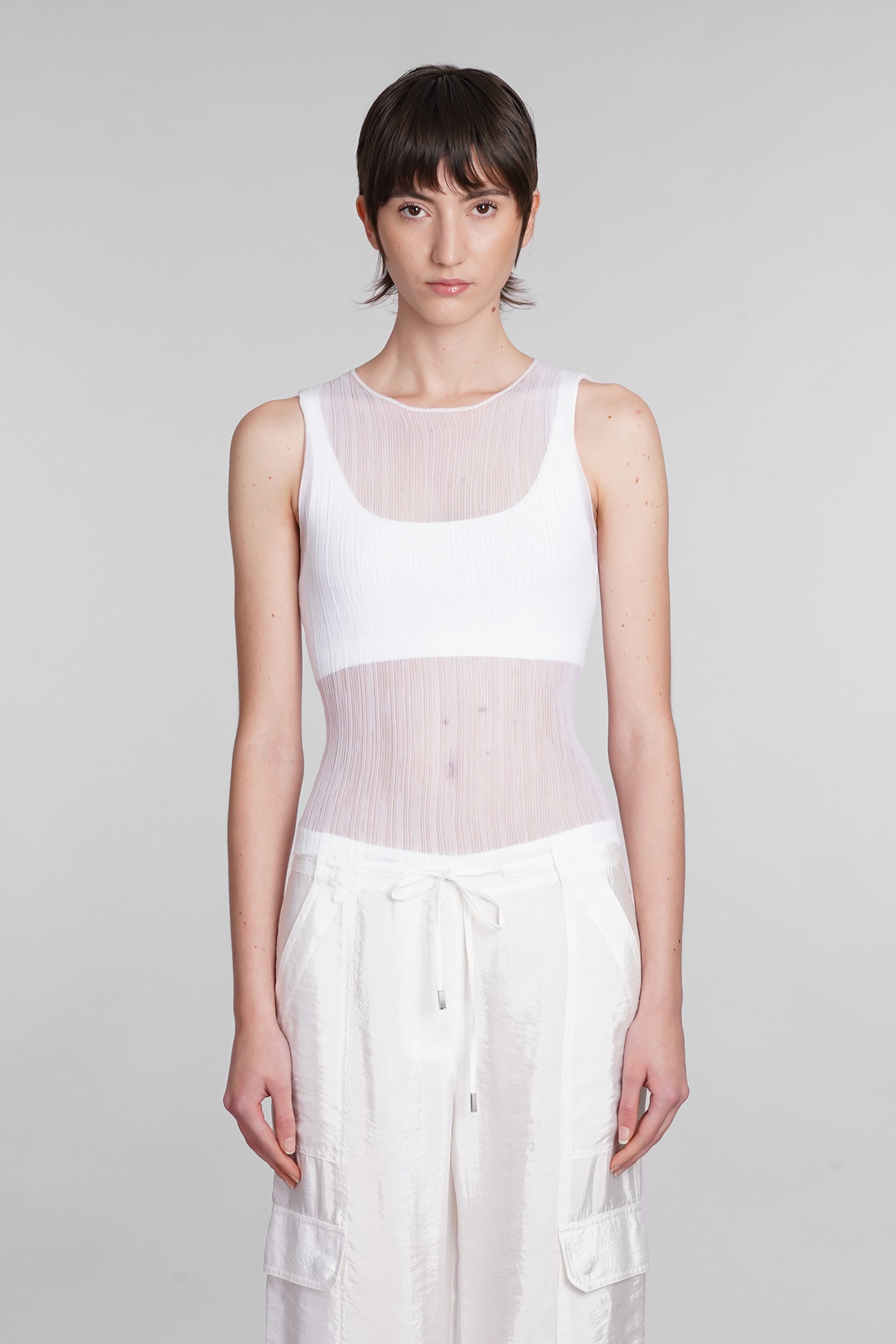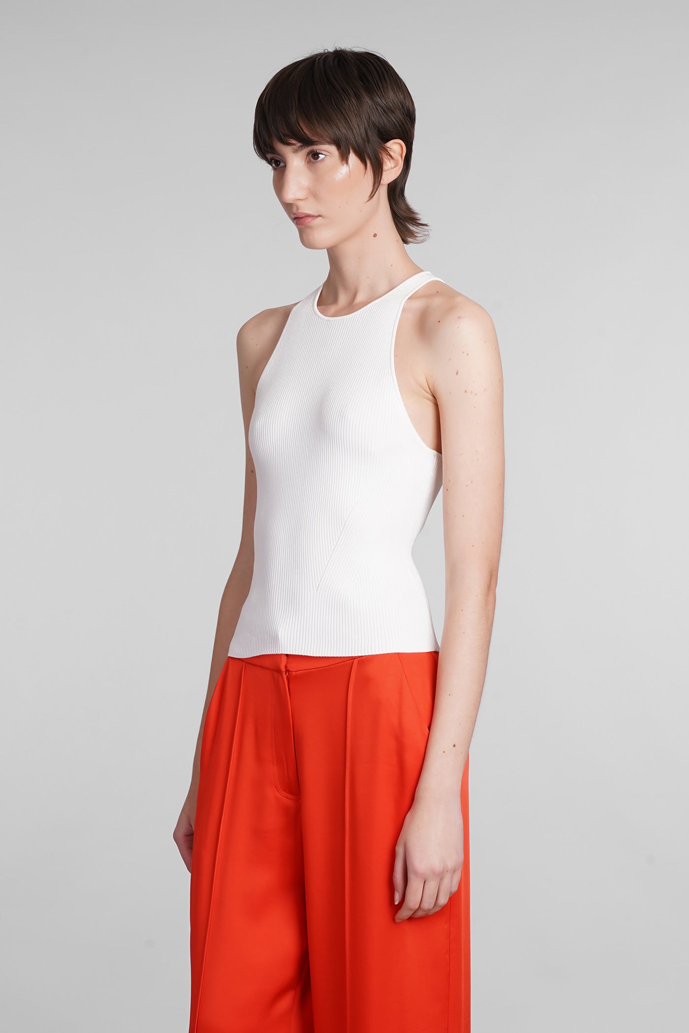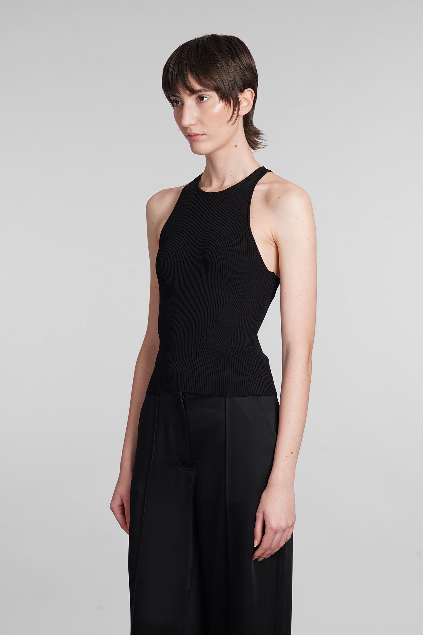 Explore the collection of bodysuits and tops on Deliberti, the luxury fashion boutique for bold and sophisticated women. Discover the feminine and sensual bodysuits by Mugler and the evening tops by Magda Butrym, perfect for special occasions. For a simple style, opt for Balmain tank tops and casual tops by Courreges. If you're looking for a timeless touch of elegance, try Giorgio Armani's sleeveless elegant tops, while for a romantic look, don't miss Christopher Esber's tops with transparencies and off-shoulder styles. Find your perfect piece on Deliberti and add a touch of class to your wardrobe.