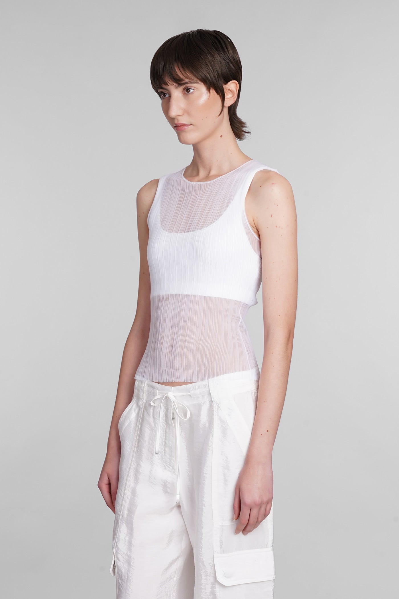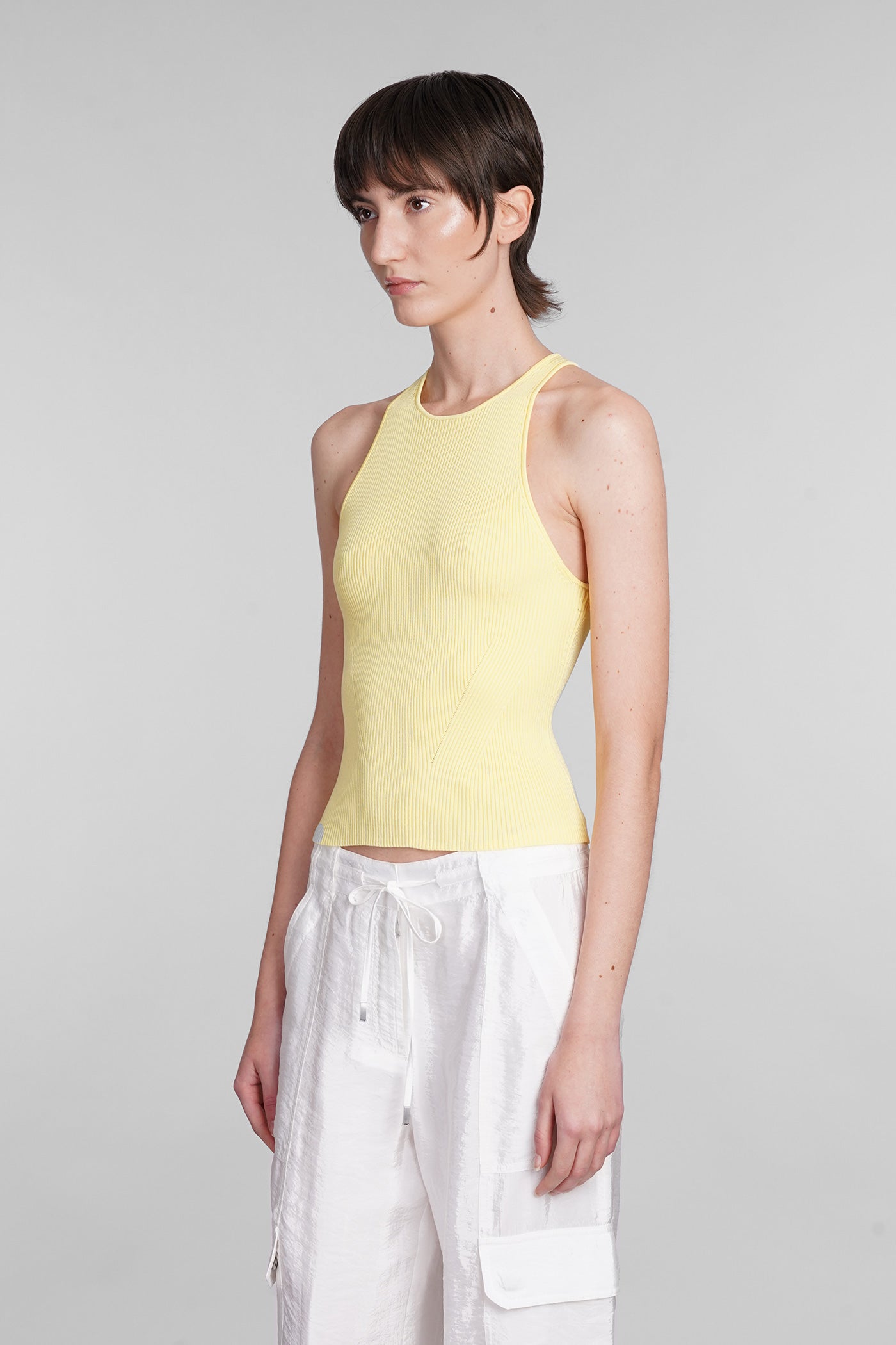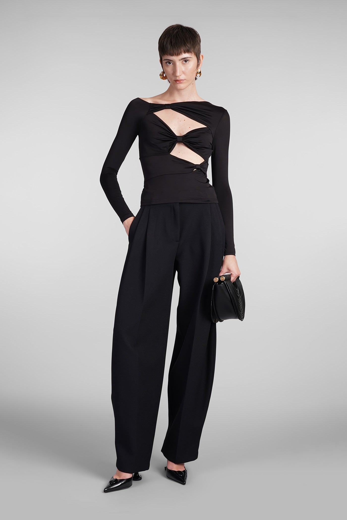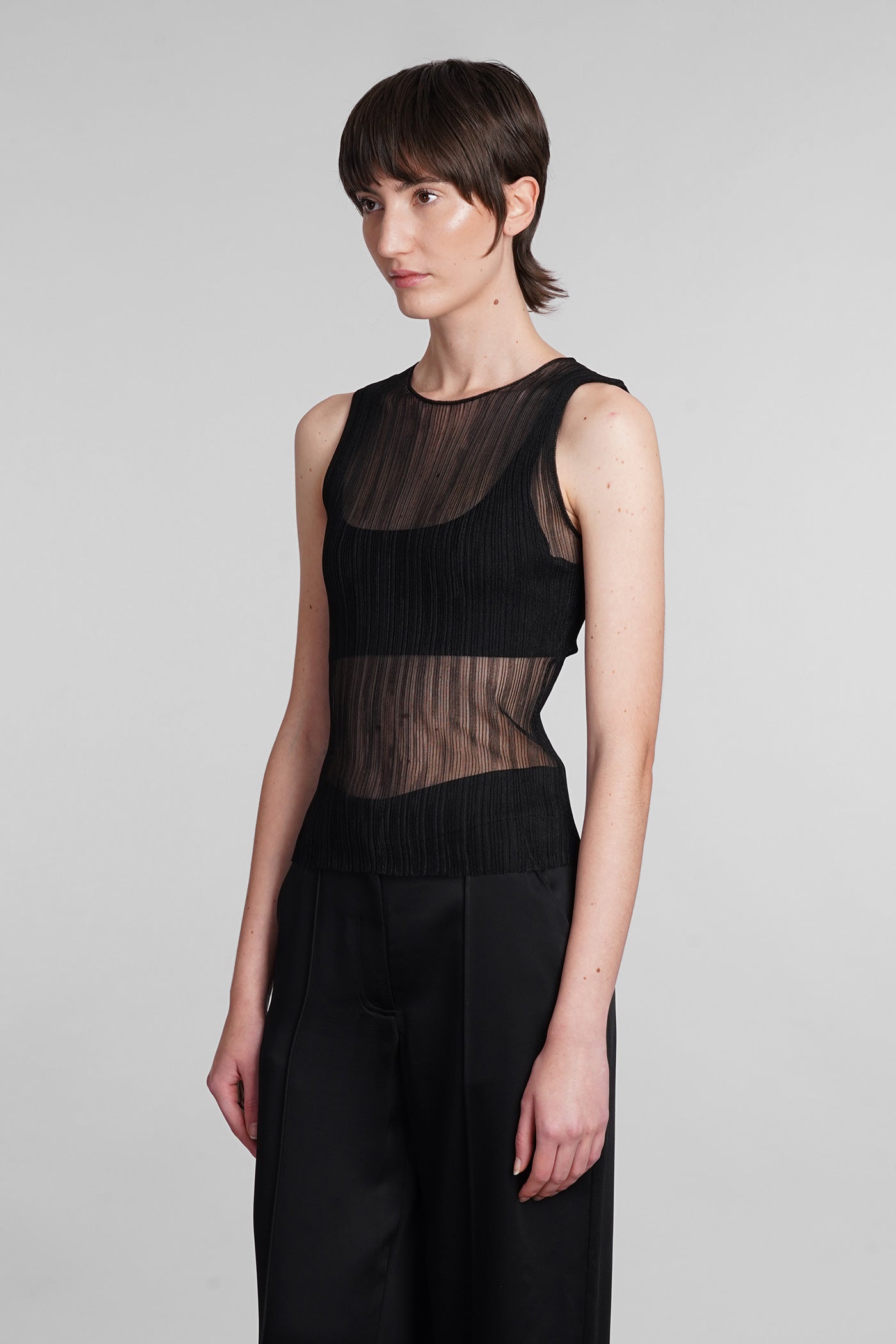 Explore the collection of bodysuits and tops on Deliberti, the luxury fashion boutique for bold and sophisticated women. Discover the feminine and sensual bodysuits by Mugler and the evening tops by Magda Butrym, perfect for special occasions. For a simple style, opt for Balmain tank tops and casual tops by Courreges. If you're looking for a timeless touch of elegance, try Giorgio Armani's sleeveless elegant tops, while for a romantic look, don't miss Christopher Esber's tops with transparencies and off-shoulder styles. Find your perfect piece on Deliberti and add a touch of class to your wardrobe.