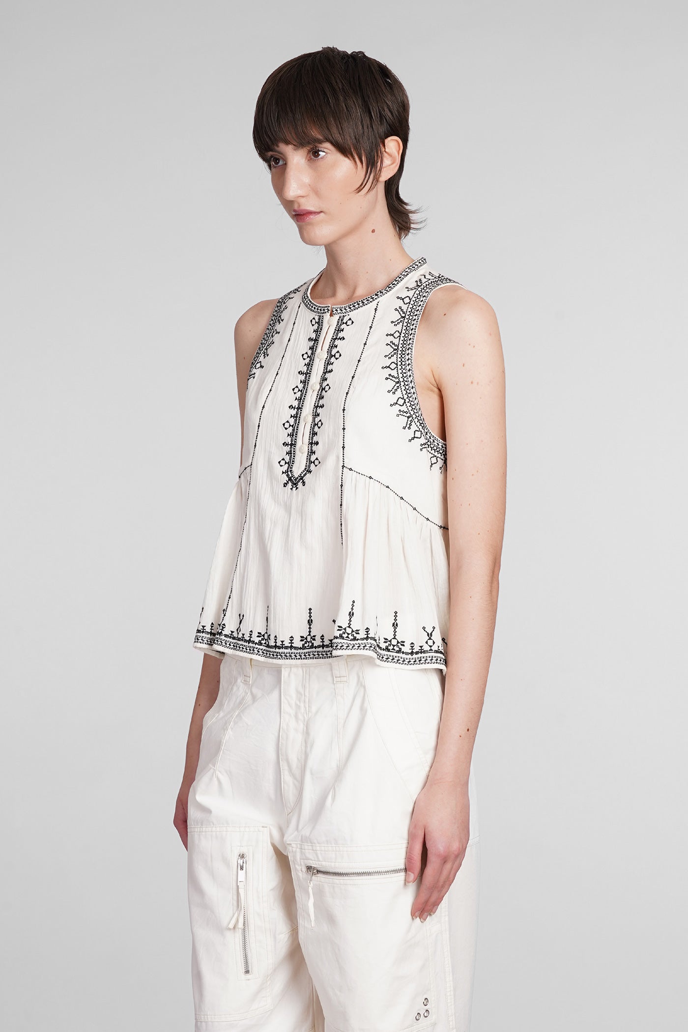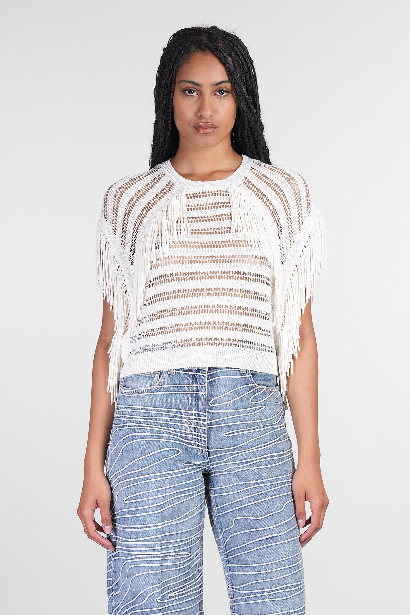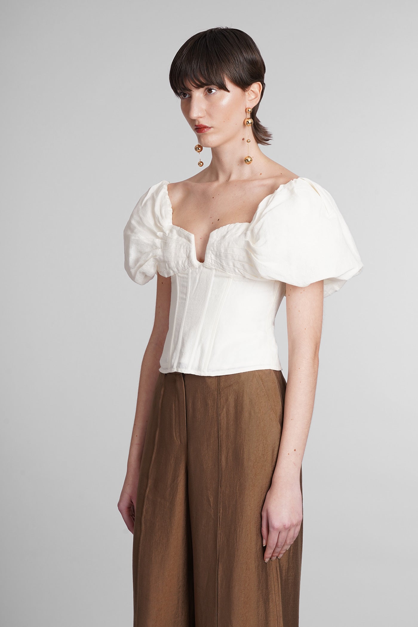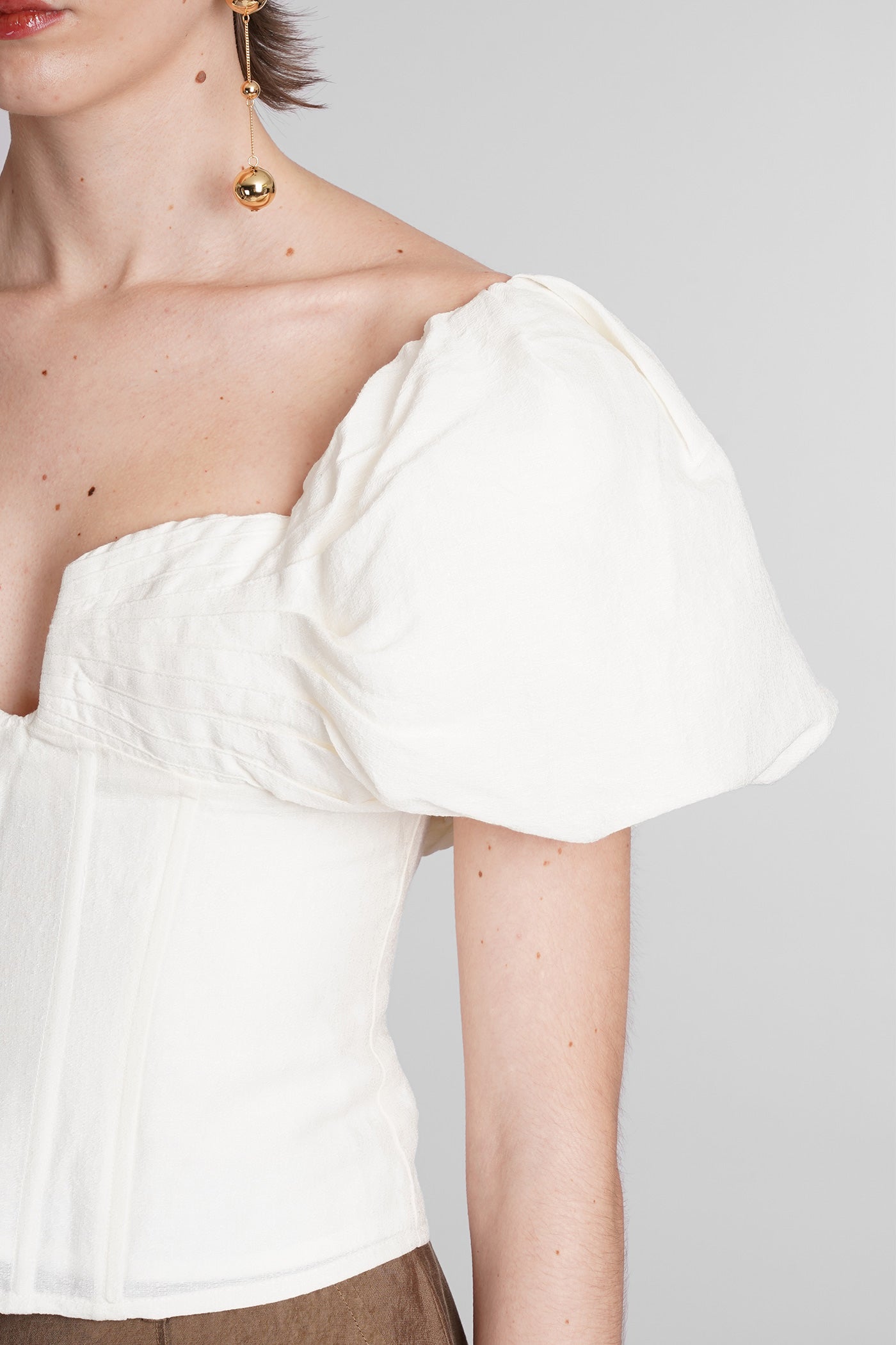 Explore the collection of bodysuits and tops on Deliberti, the luxury fashion boutique for bold and sophisticated women. Discover the feminine and sensual bodysuits by Mugler and the evening tops by Magda Butrym, perfect for special occasions. For a simple style, opt for Balmain tank tops and casual tops by Courreges. If you're looking for a timeless touch of elegance, try Giorgio Armani's sleeveless elegant tops, while for a romantic look, don't miss Christopher Esber's tops with transparencies and off-shoulder styles. Find your perfect piece on Deliberti and add a touch of class to your wardrobe.