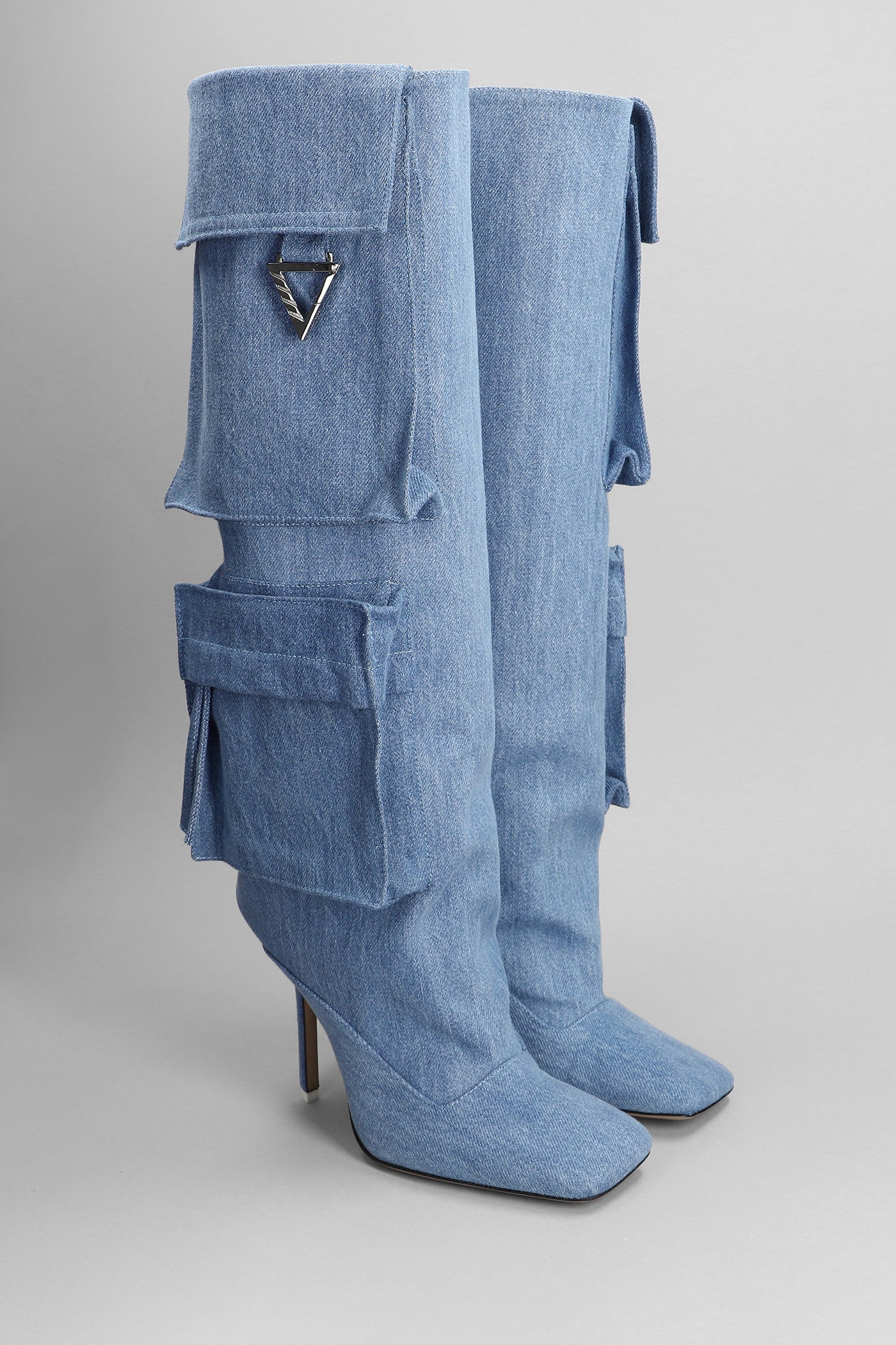 Sienna High heels boots in cyan cotton