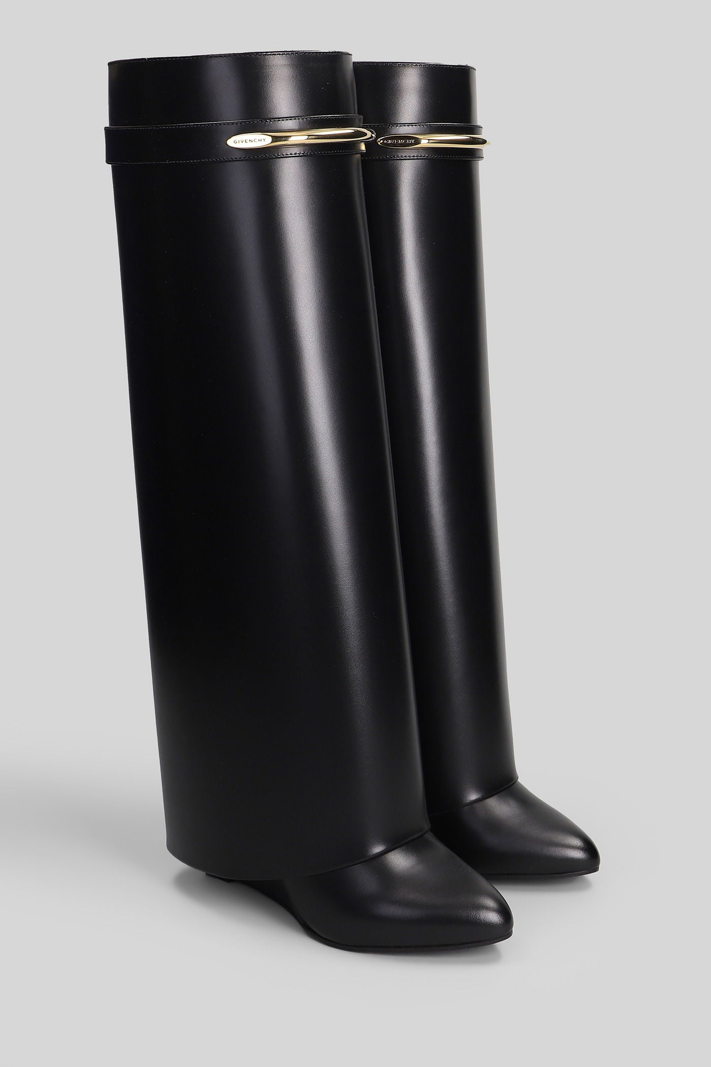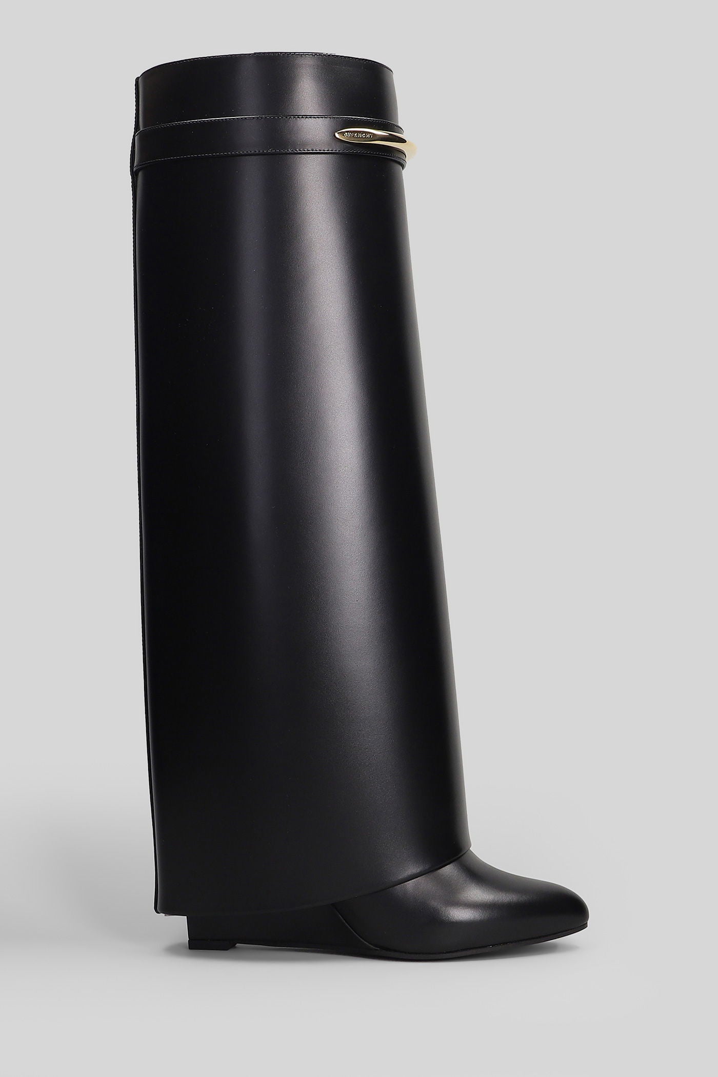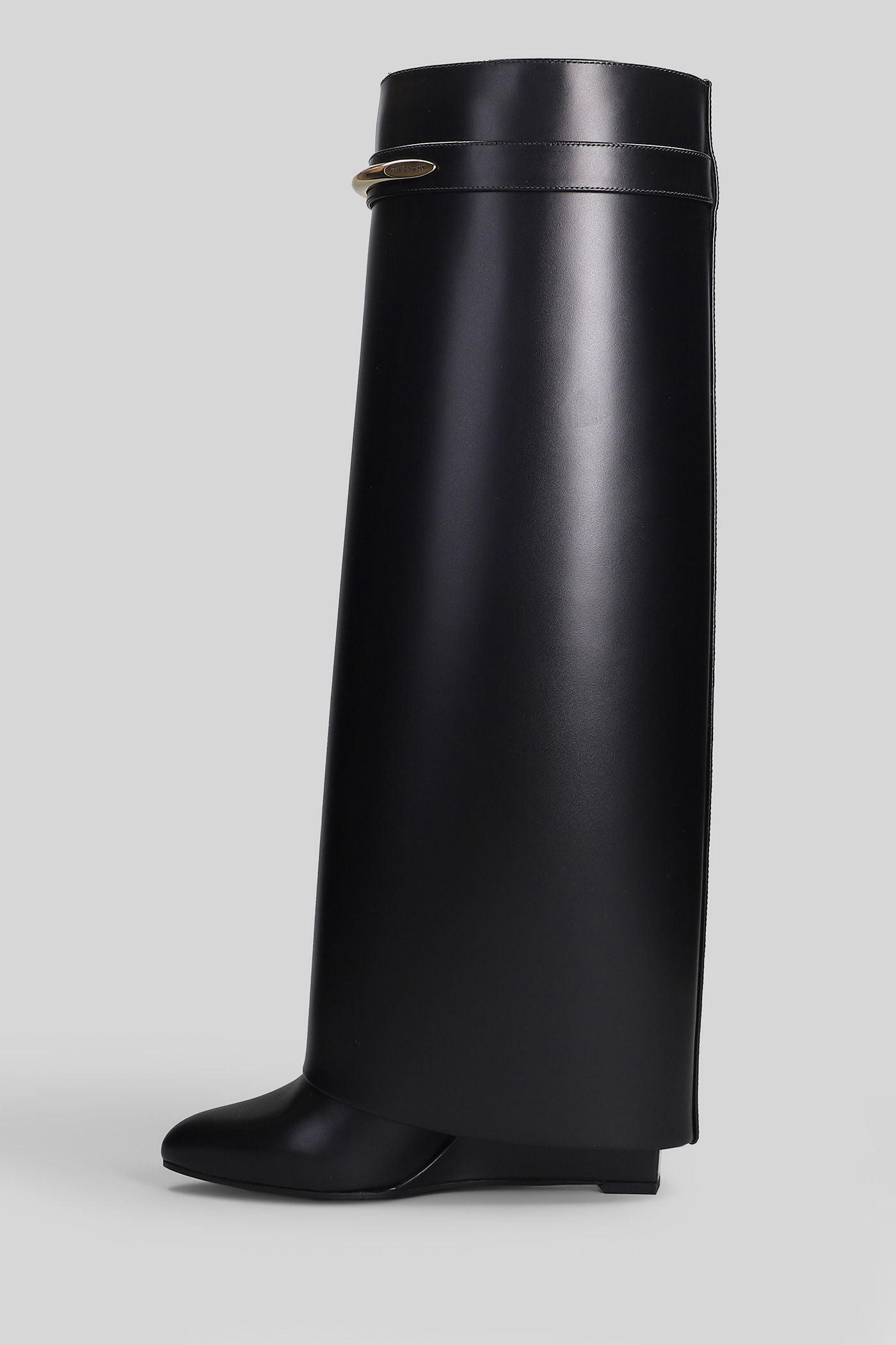 Shark boots gamba ampia High heels boots in black leather