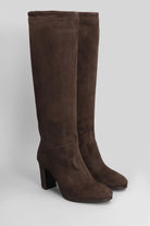 High heels boots in dark brown suede