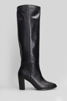 High heels boots in black leather