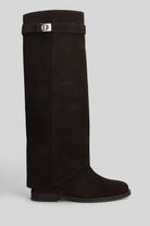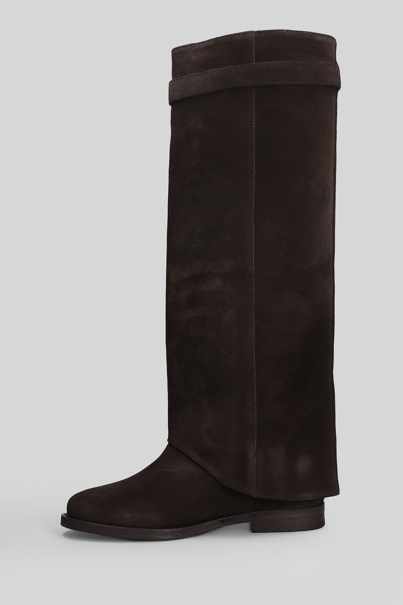 in dark brown suede