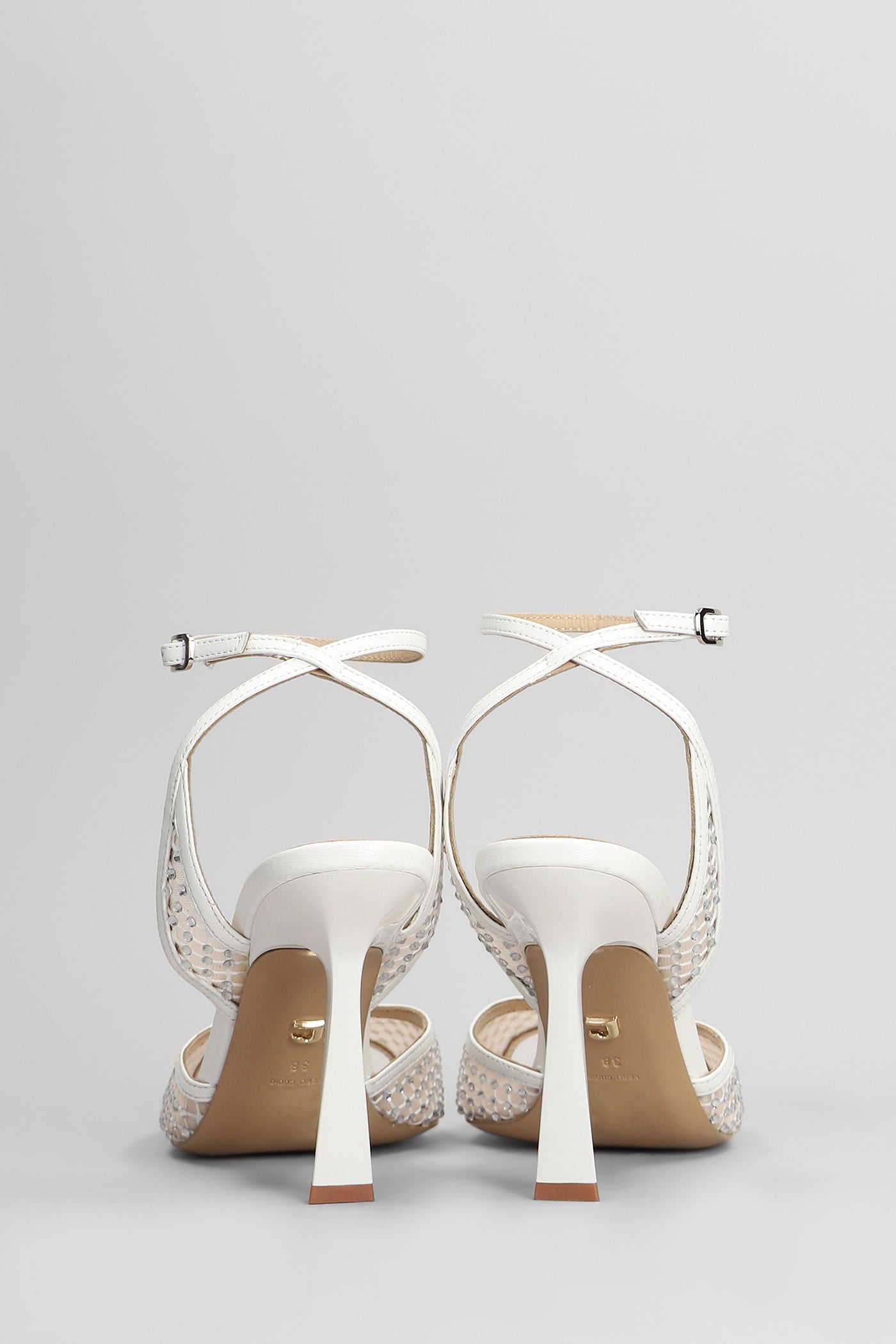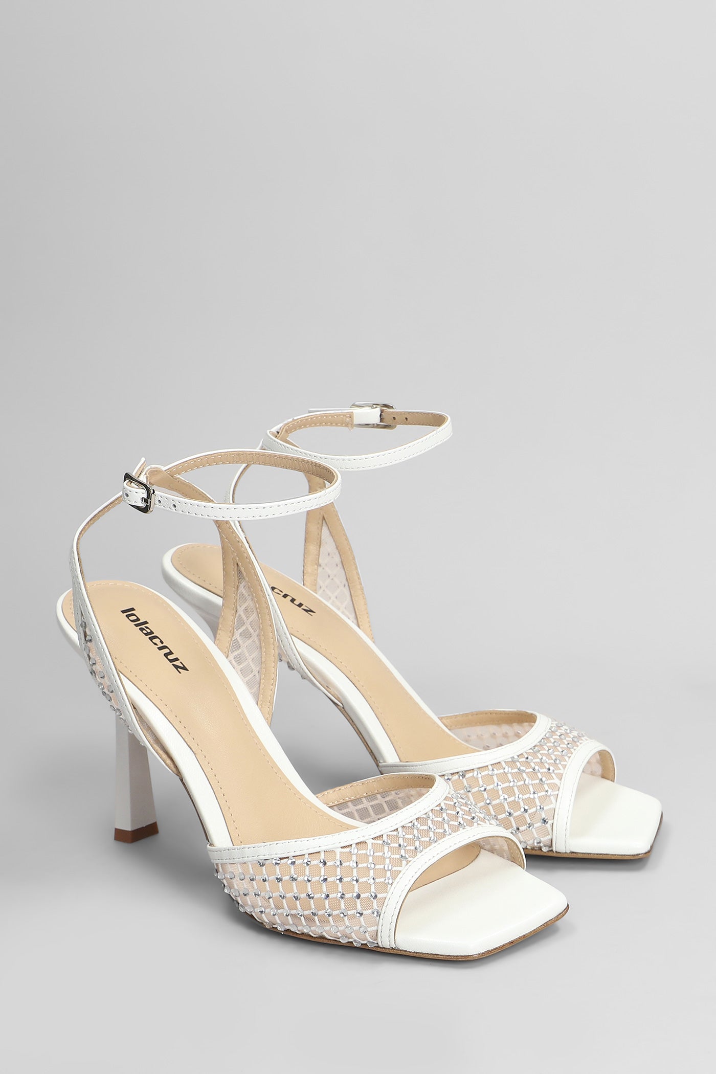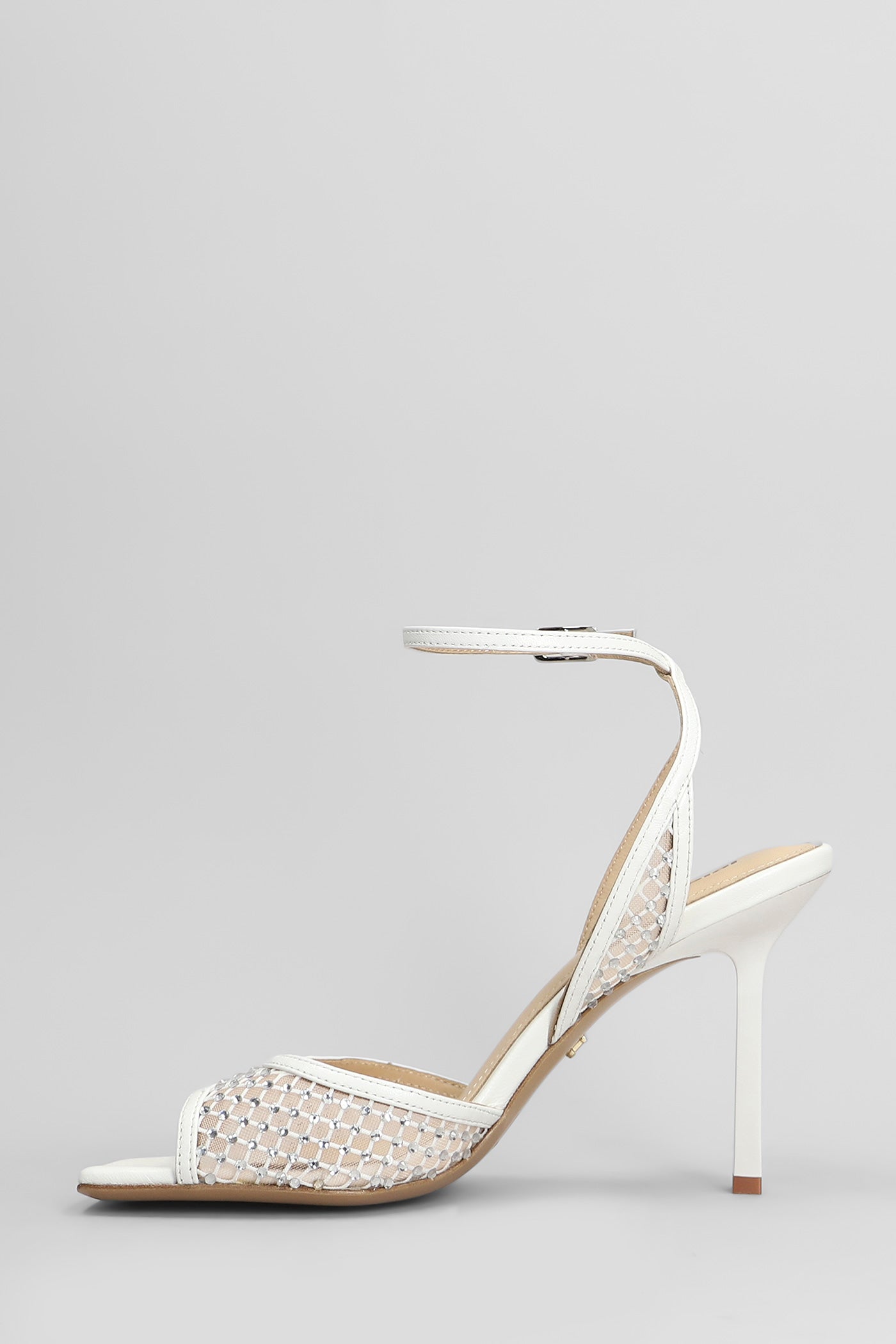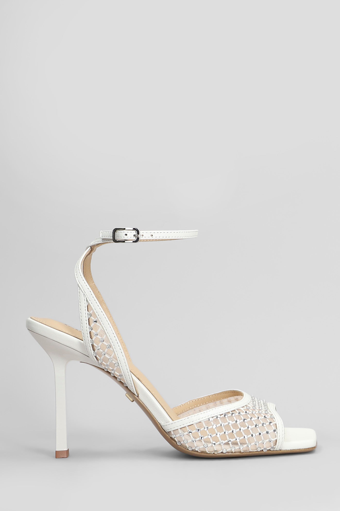 Carmen 95 Sandals in white leather and fabric