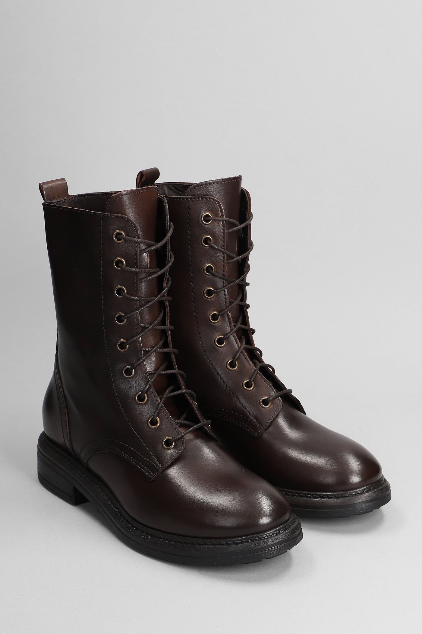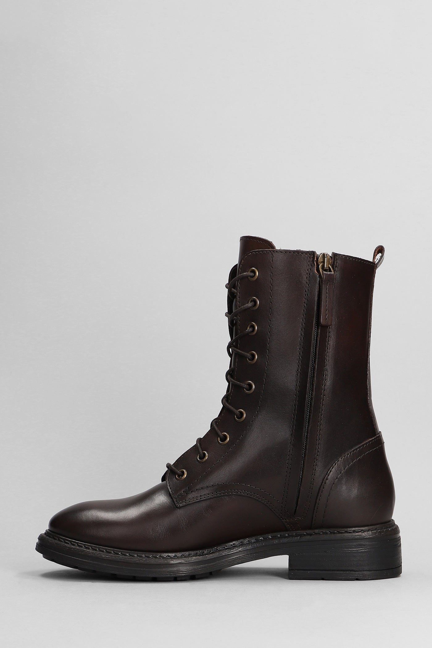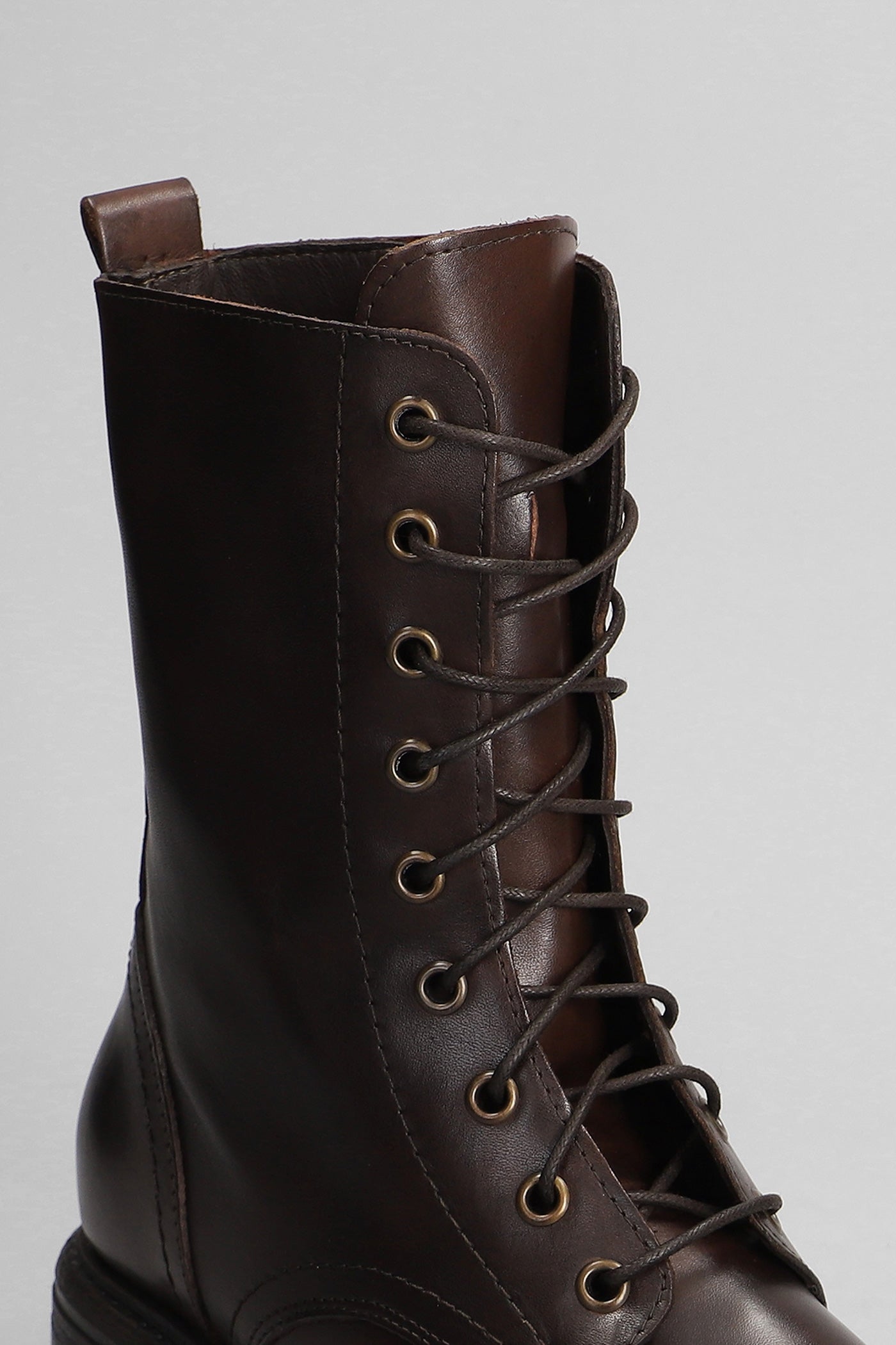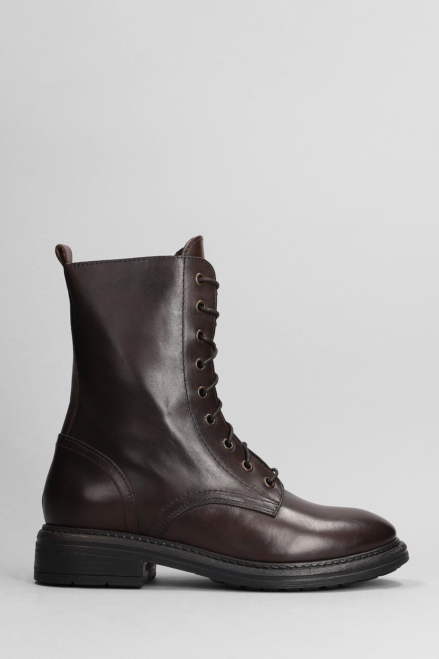 Combat boots in dark brown leather