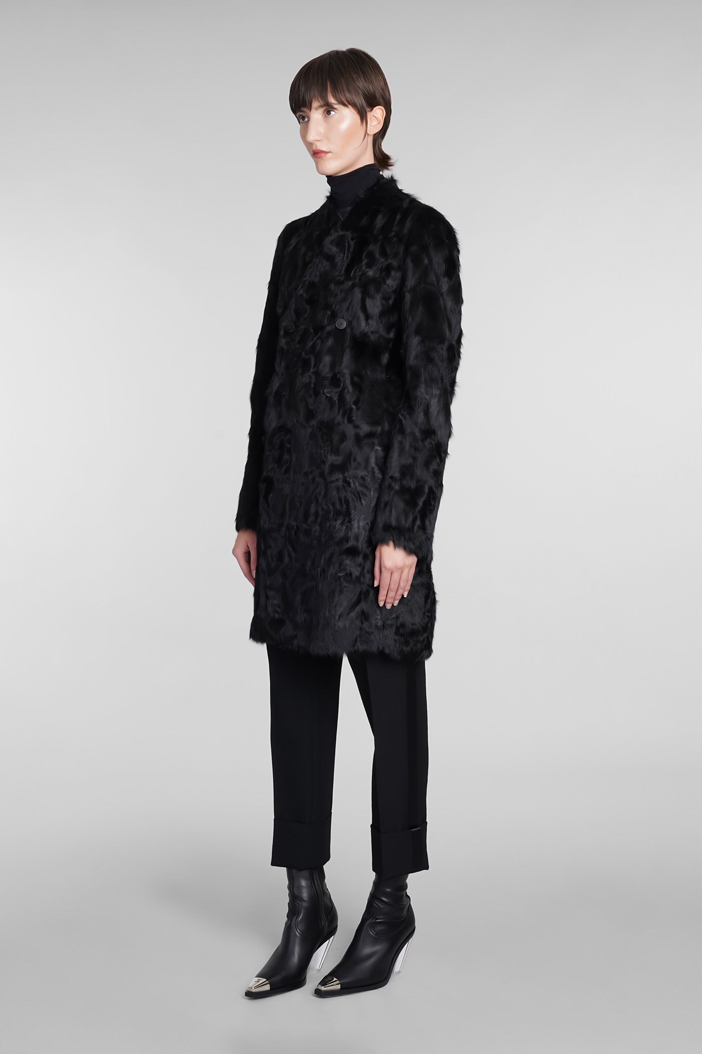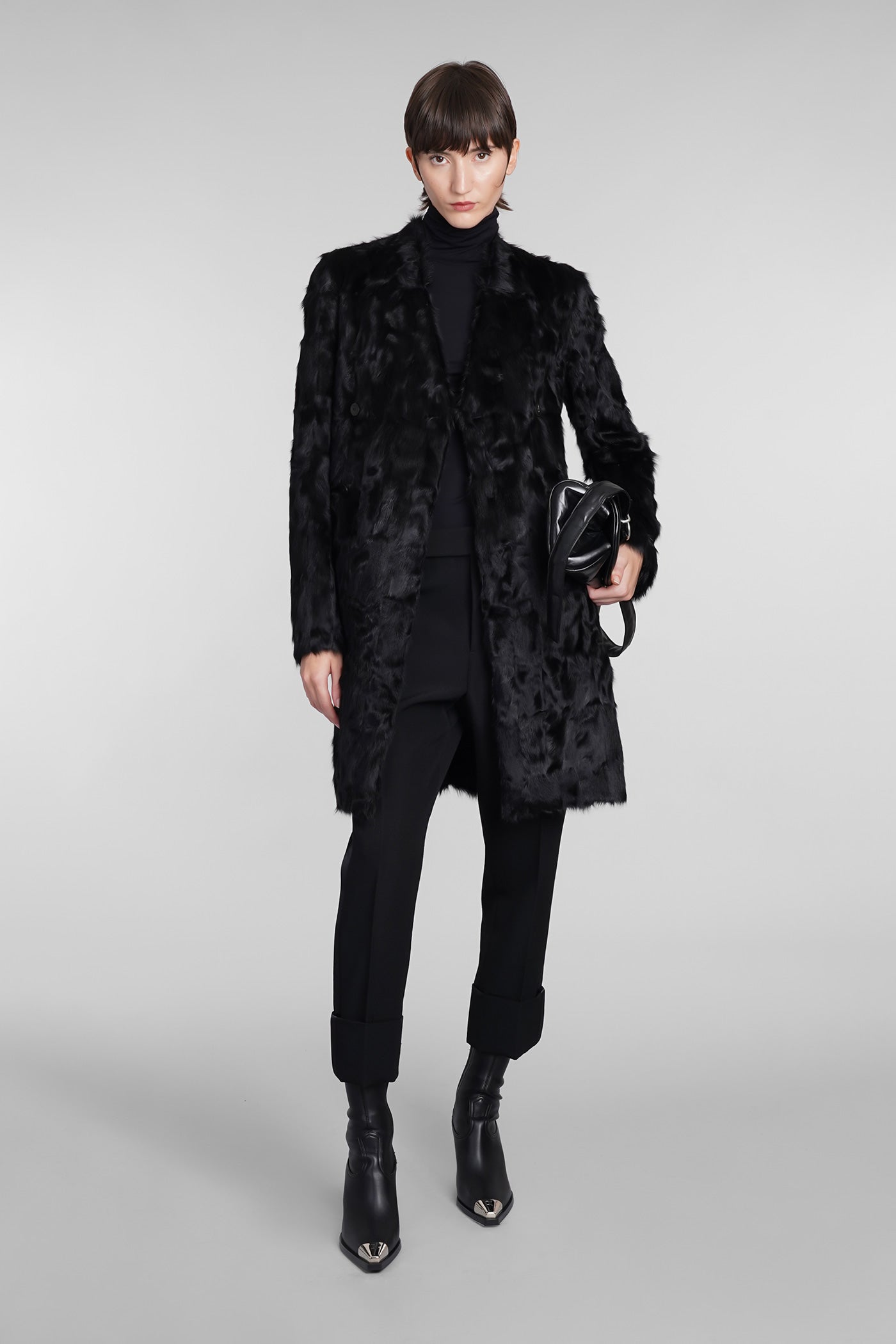 N3 Coat in black leather