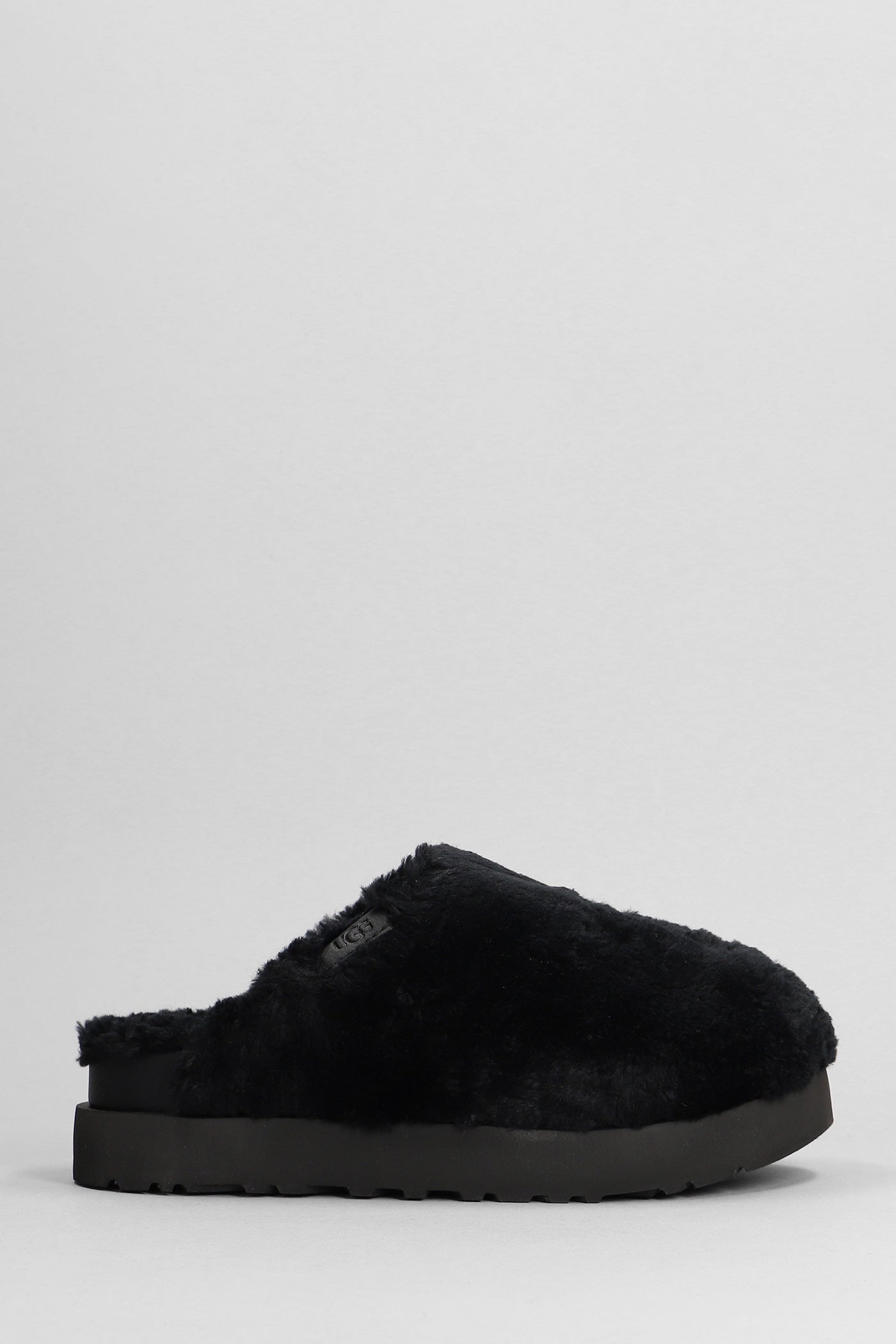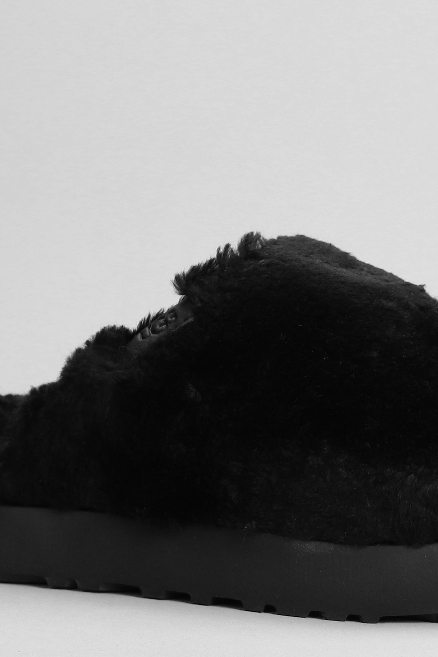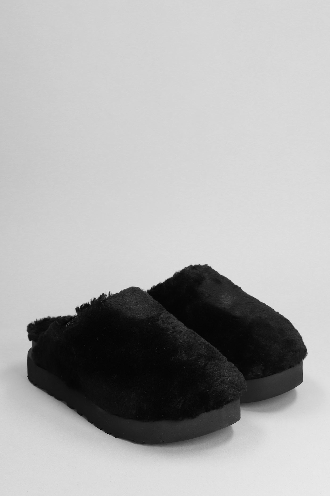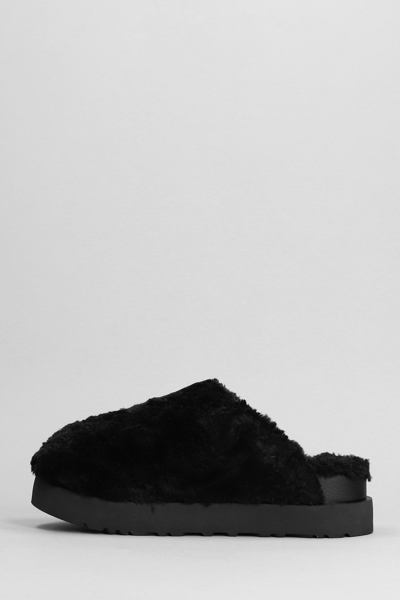 Fuzz Sugar Slide Slipper-Mule in black wool