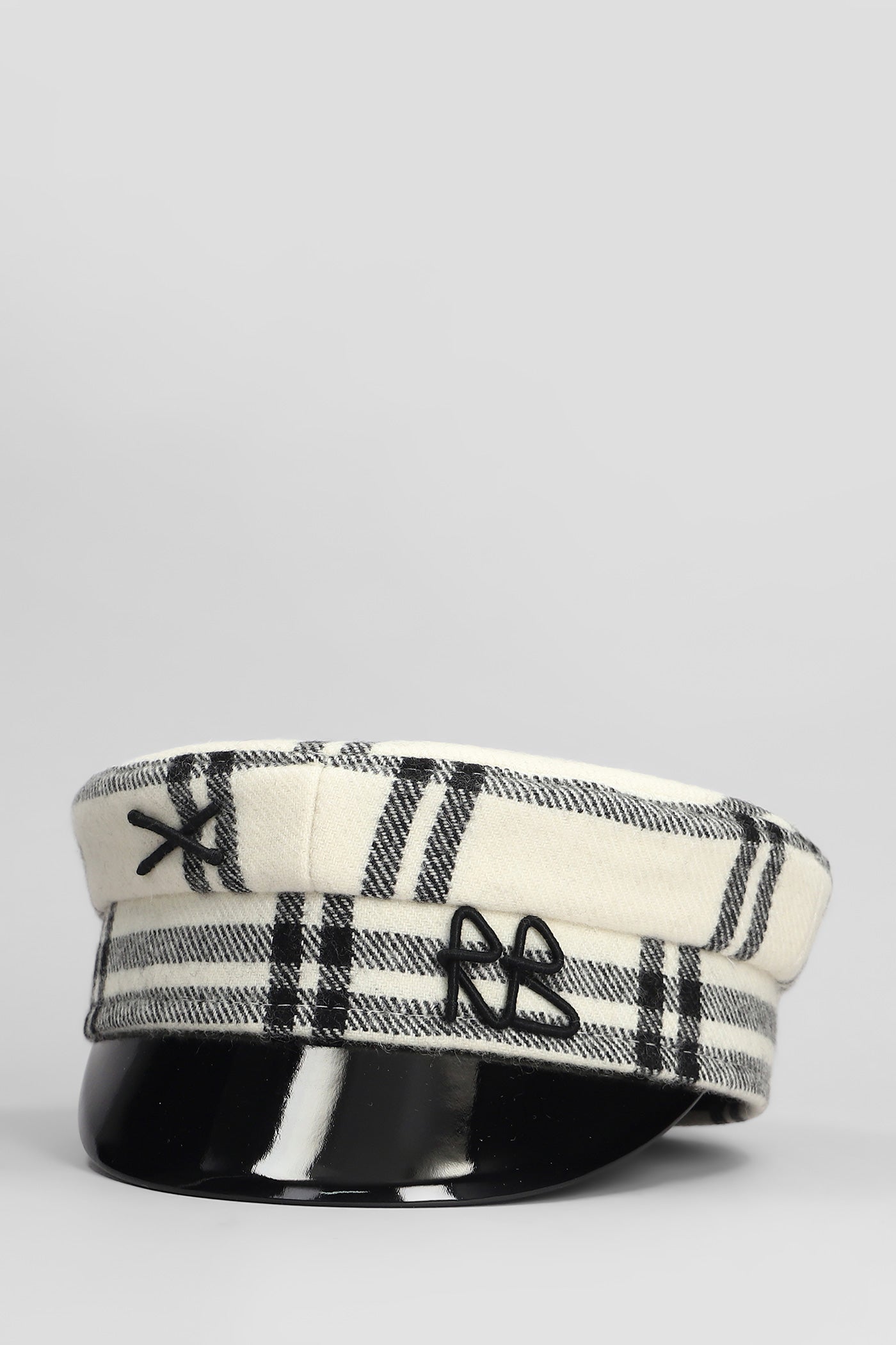 Checked Hats in white wool
