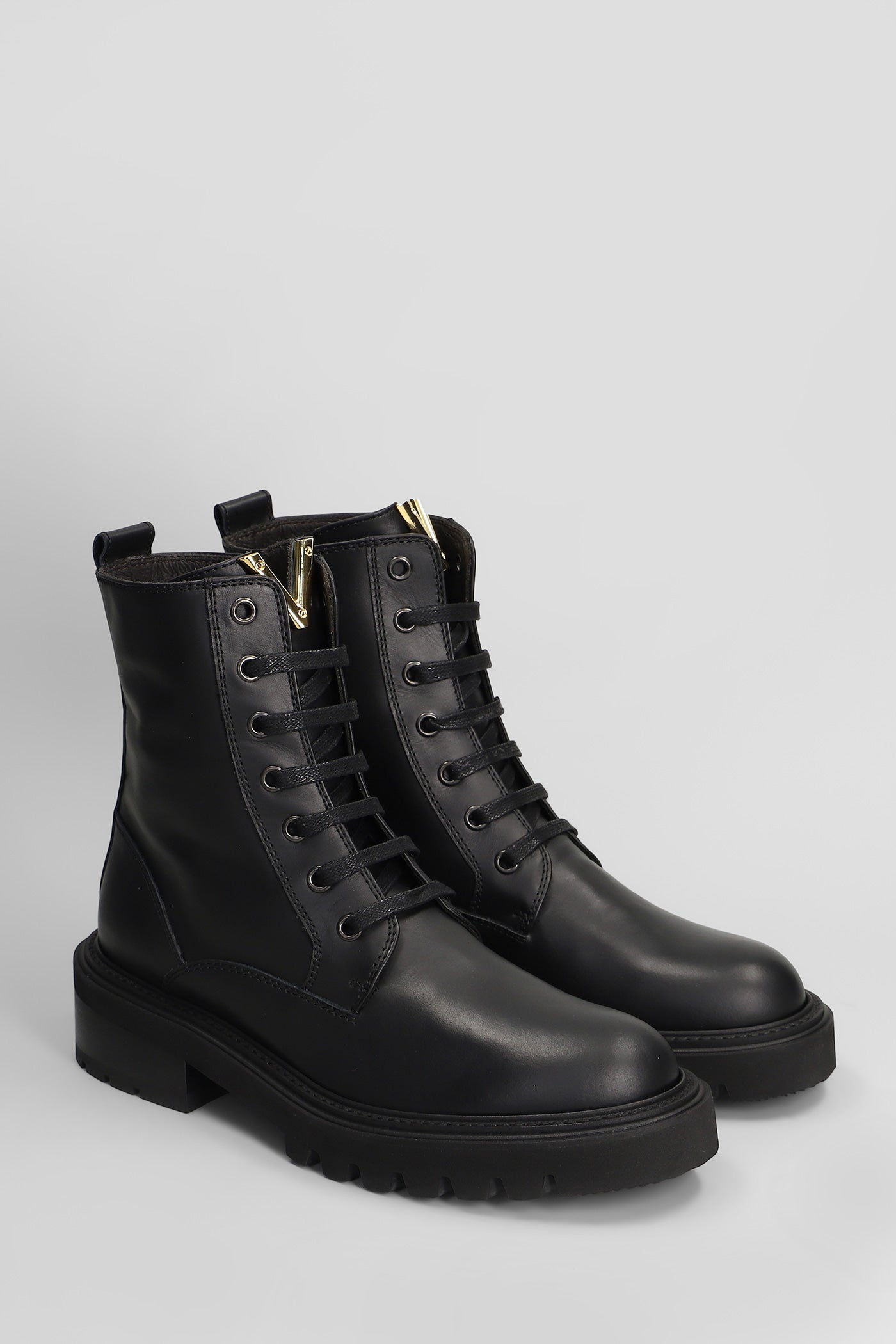 Combat boots in black leather