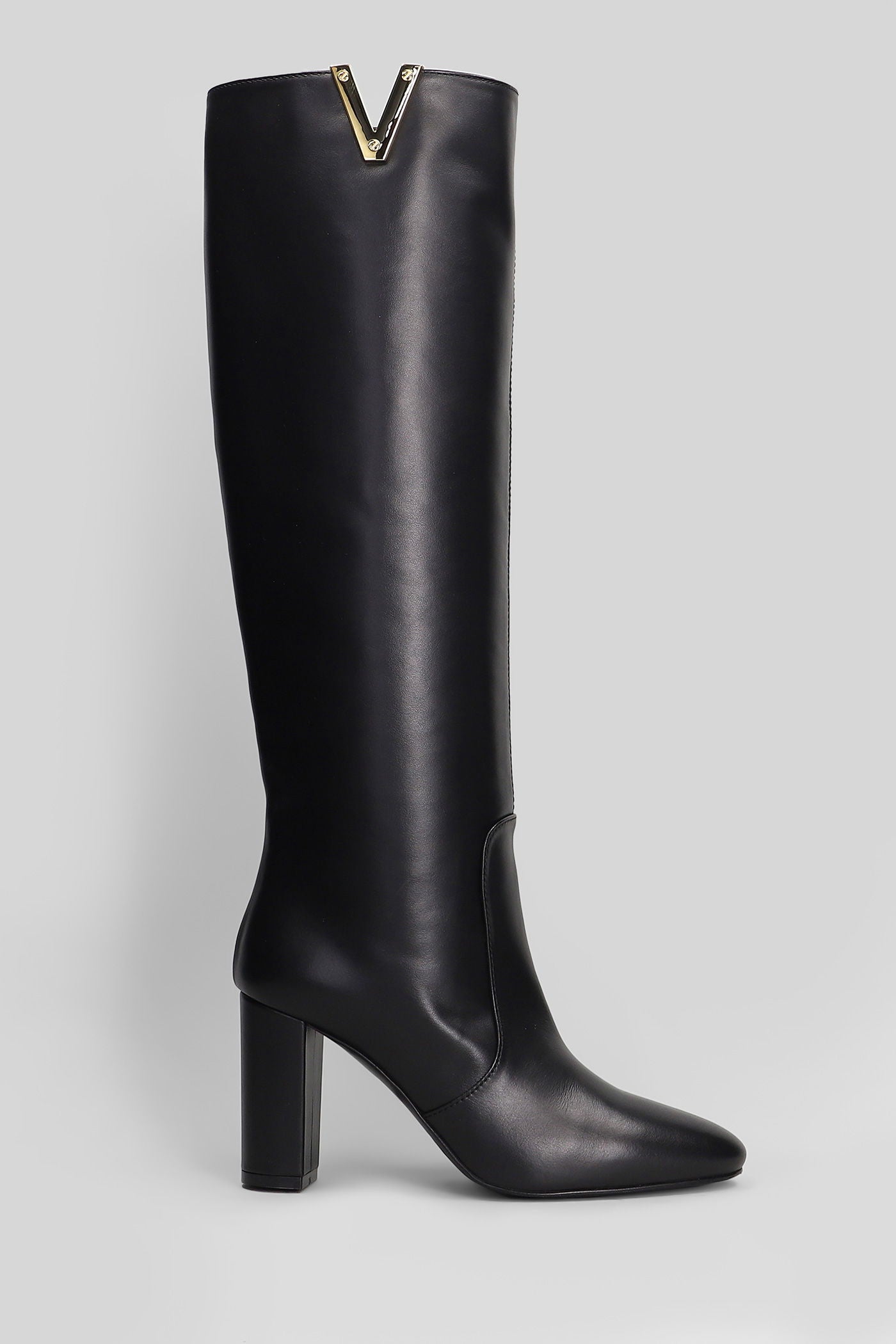 High heels boots in black leather