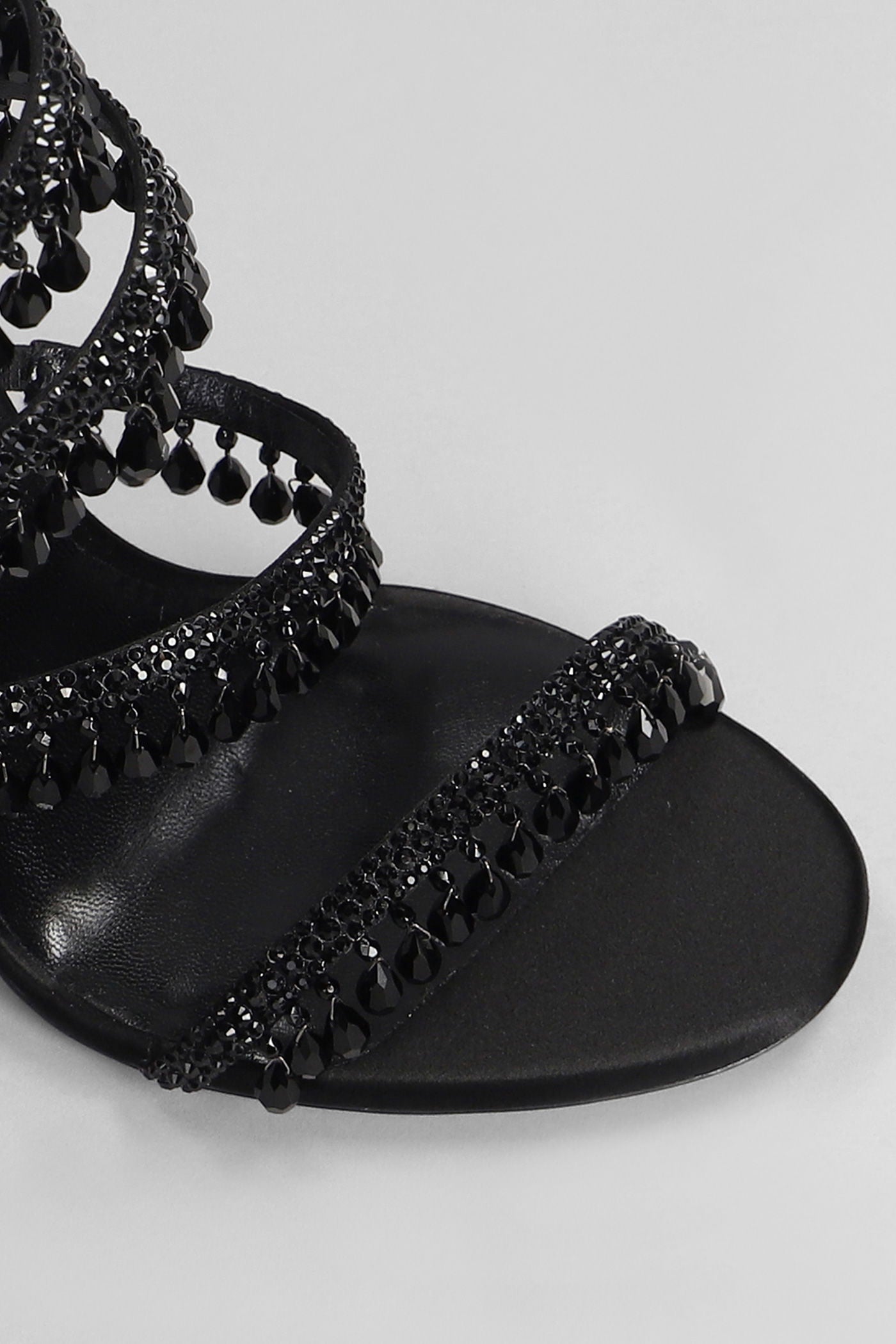 Chandelier Sandals in black satin