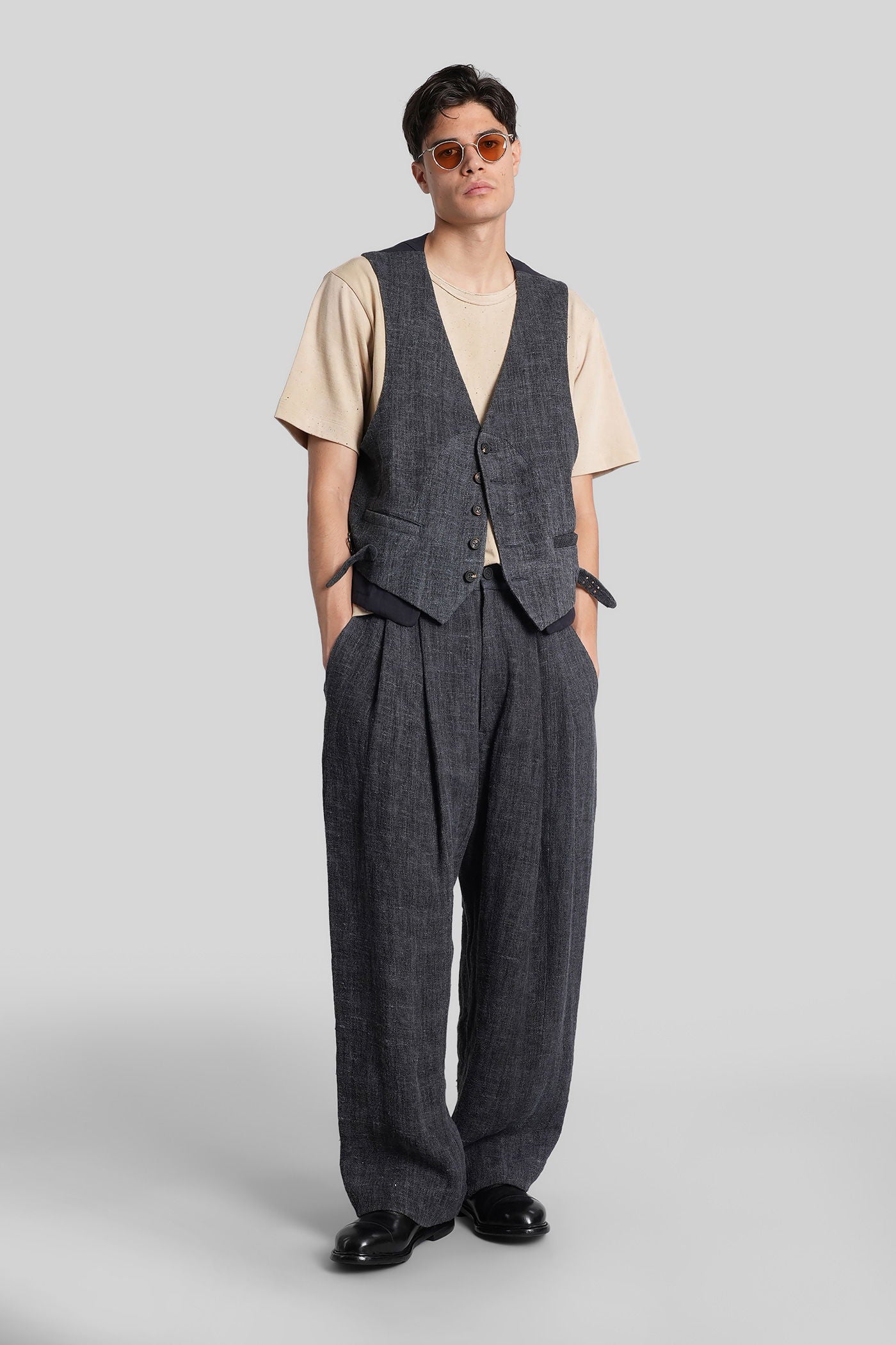 Pants in blue linen