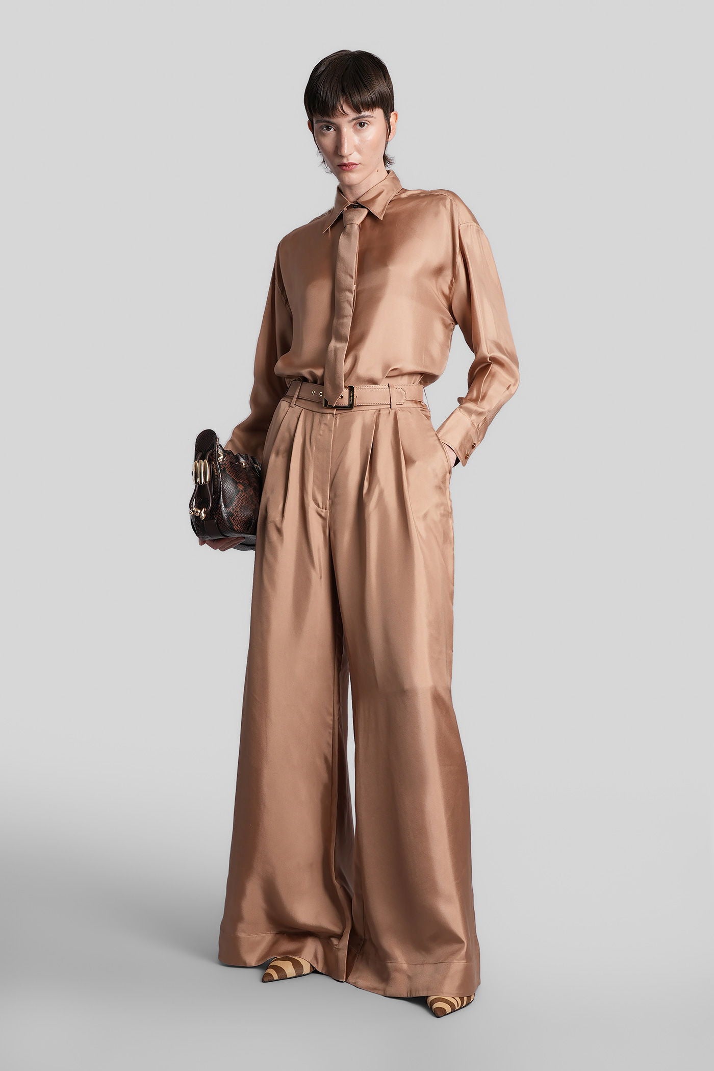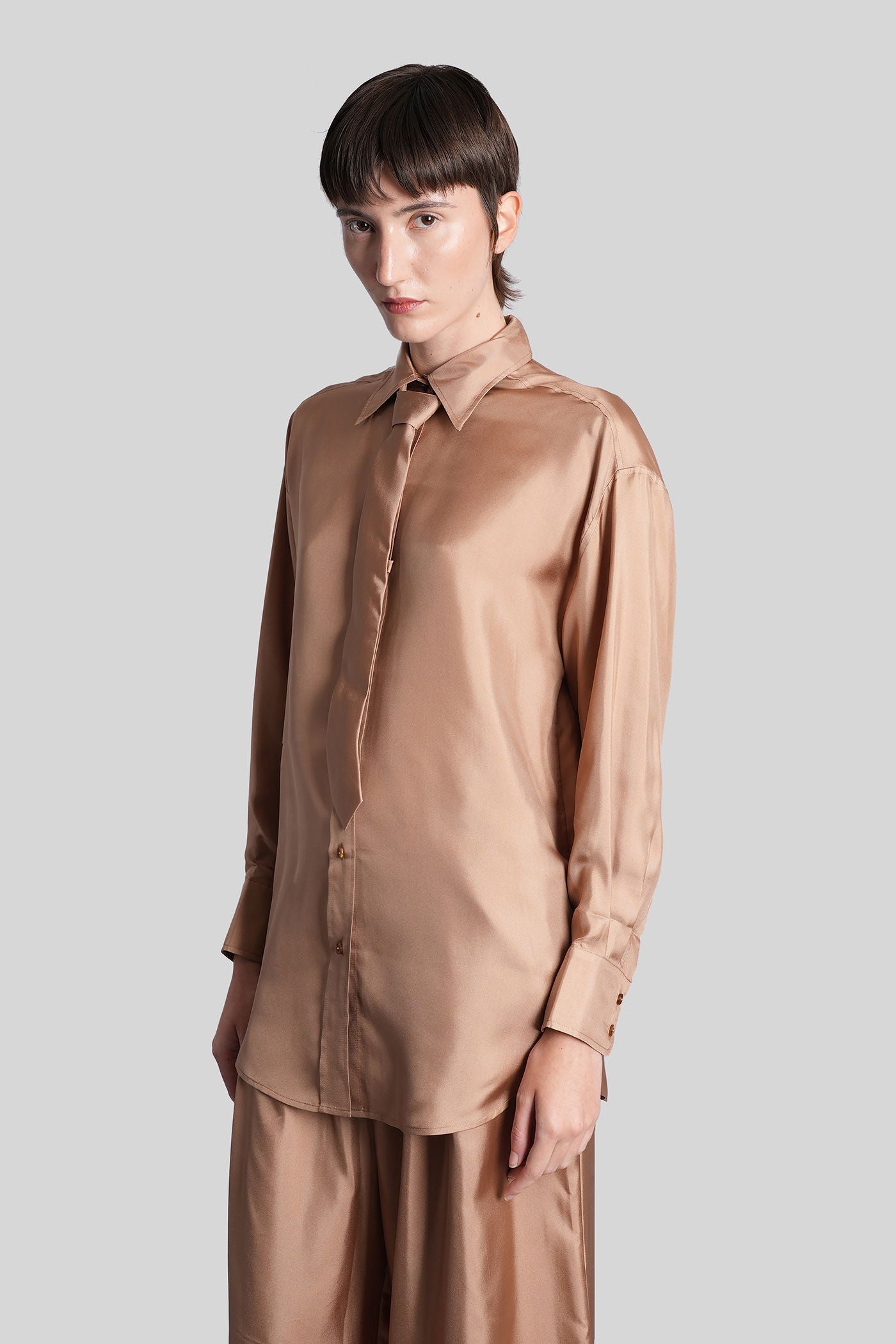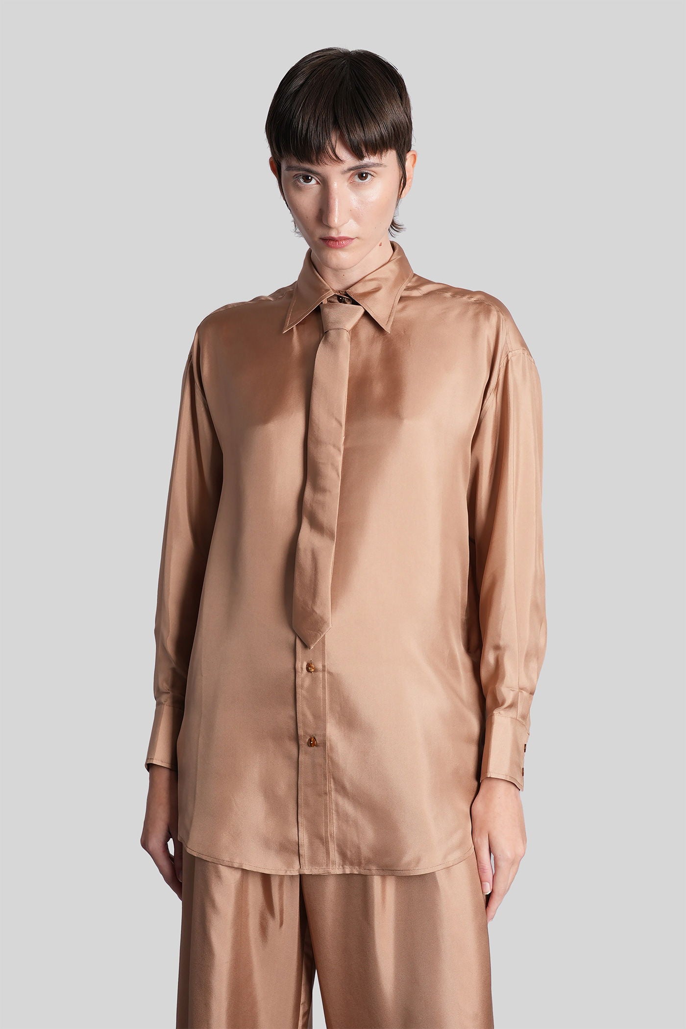 Shirt in Camel silk