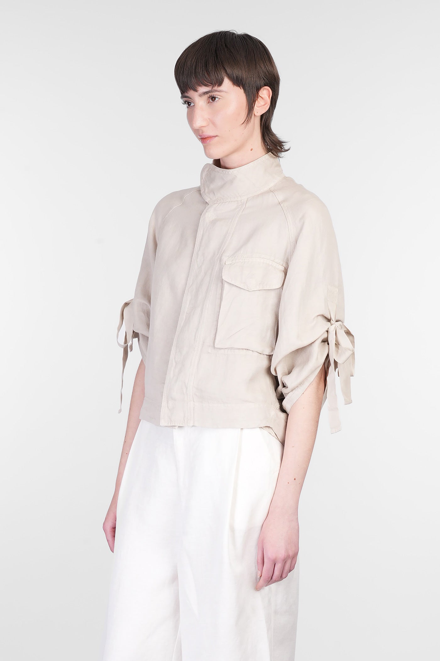 Casual jacket in taupe linen