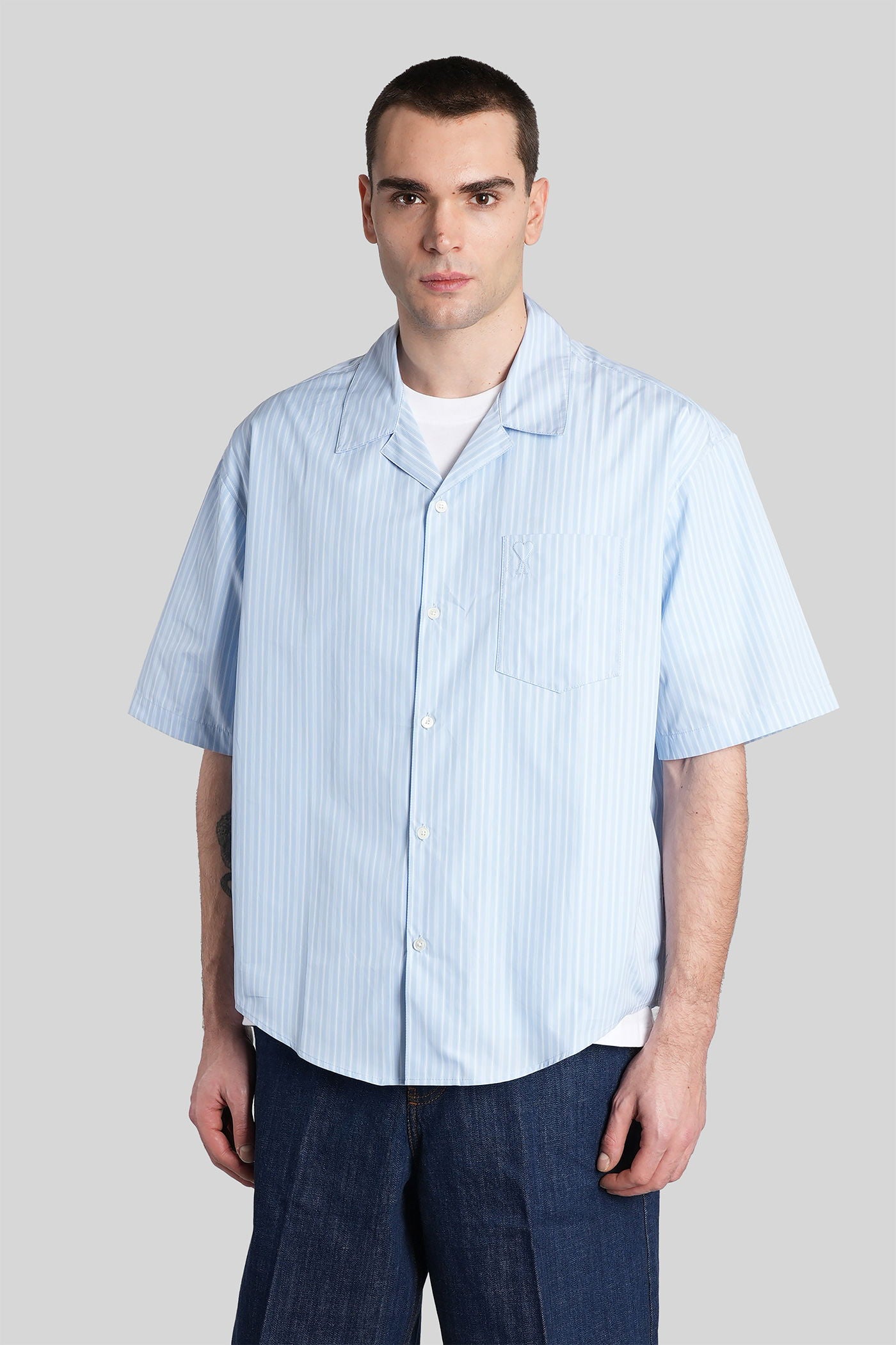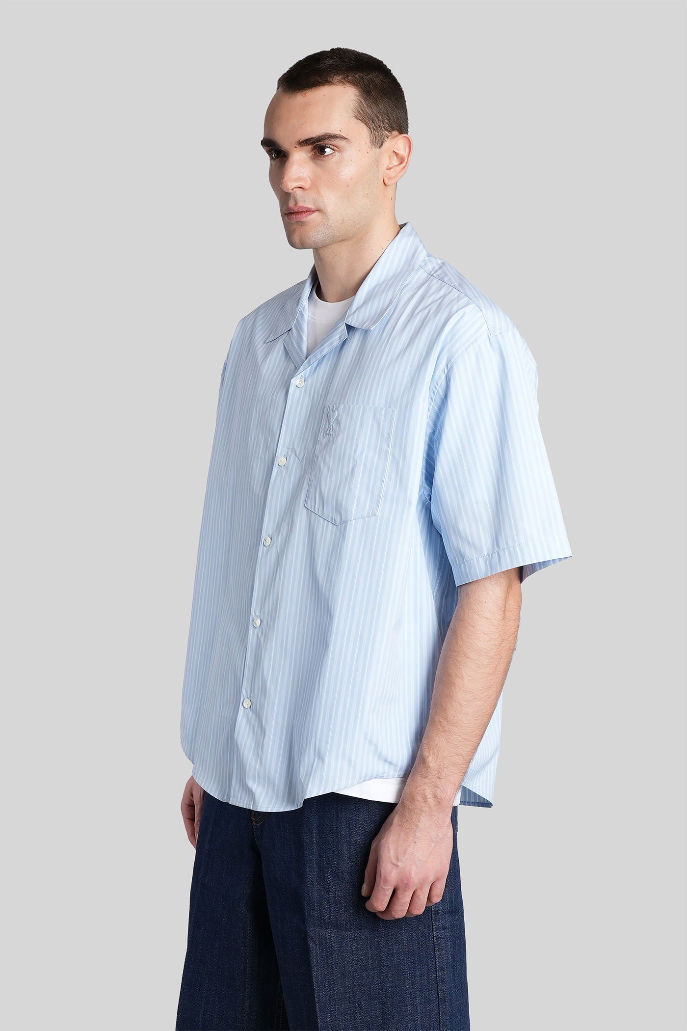 Shirt in cyan cotton