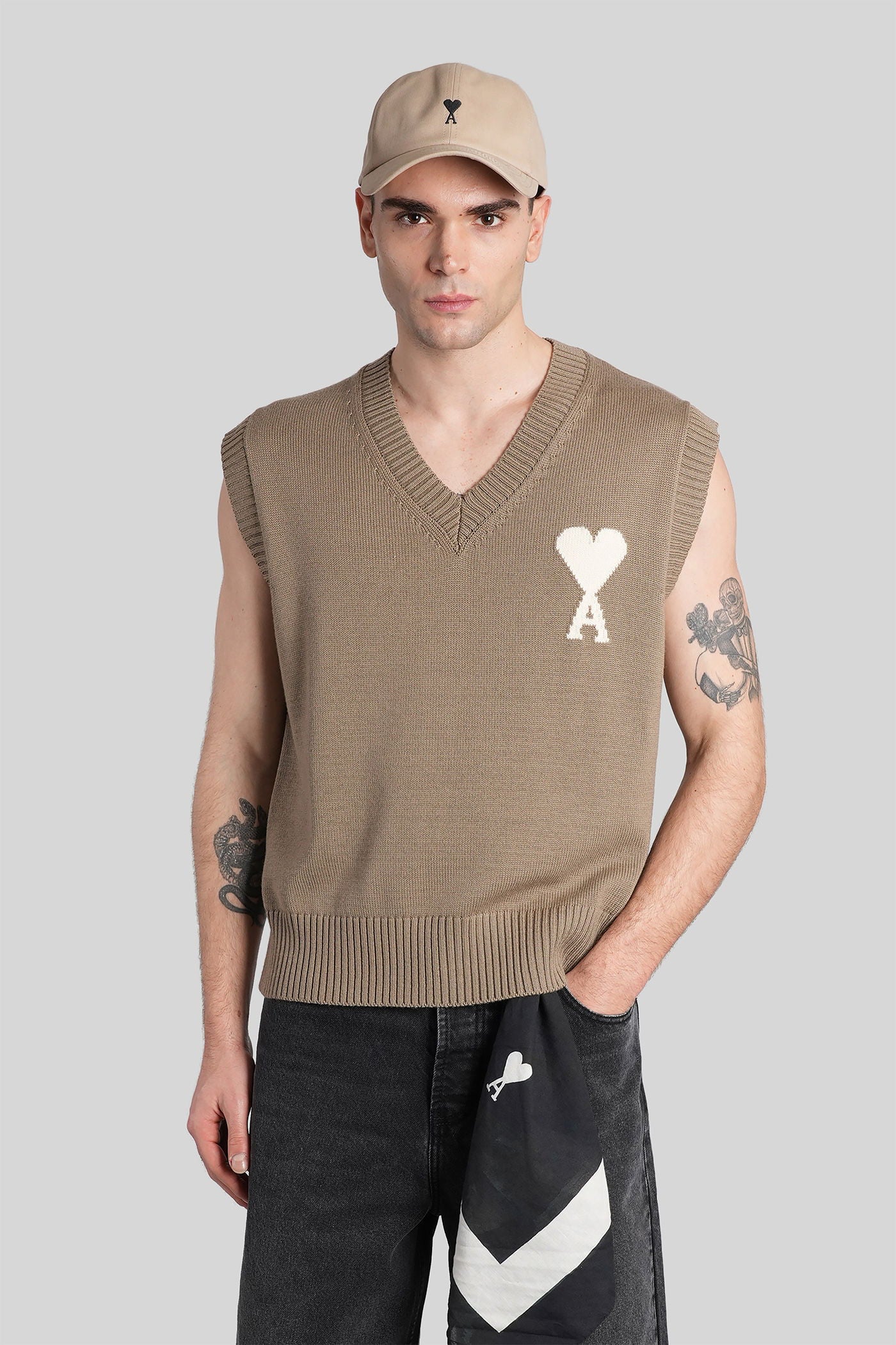 Vest in taupe wool
