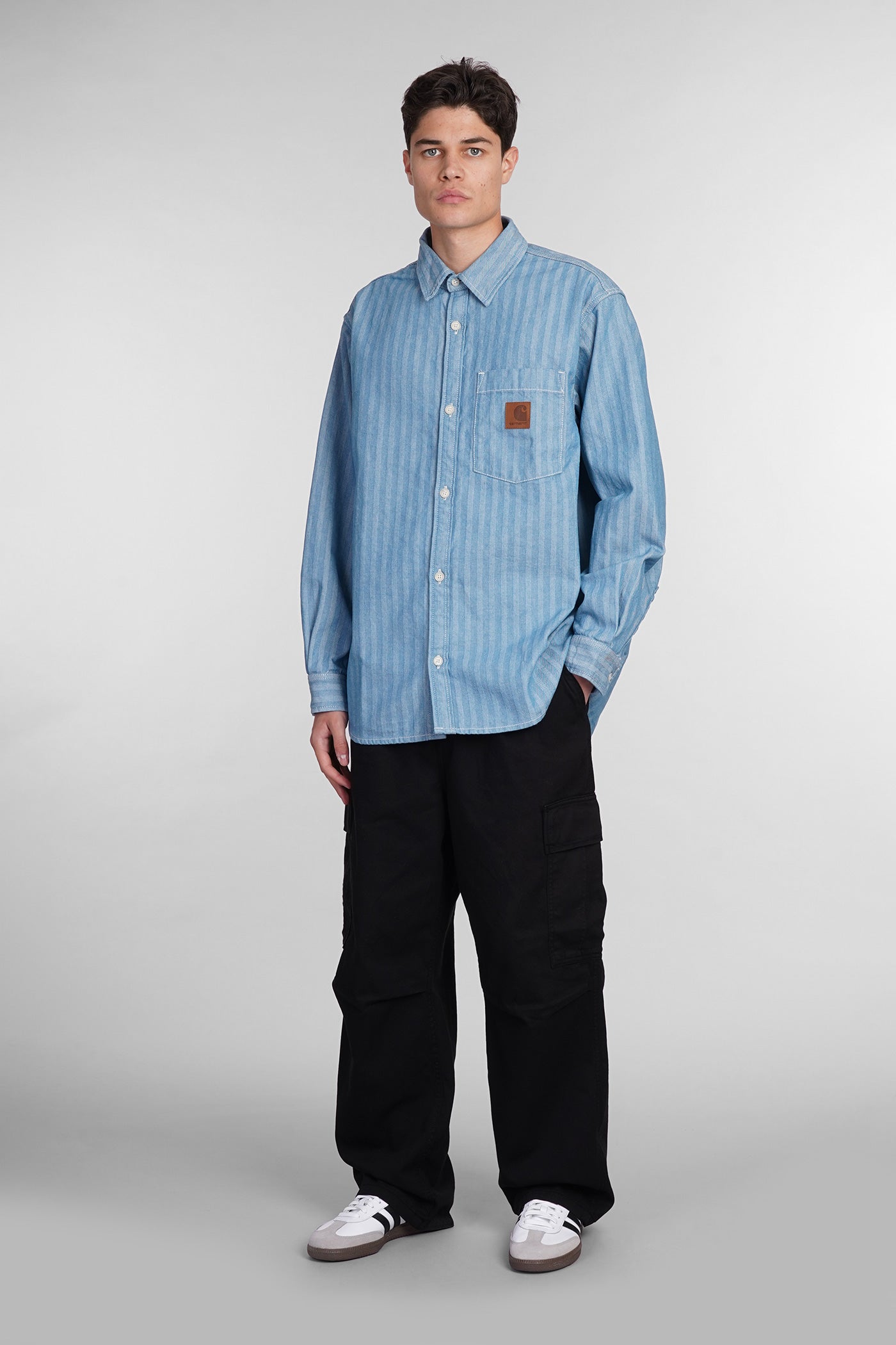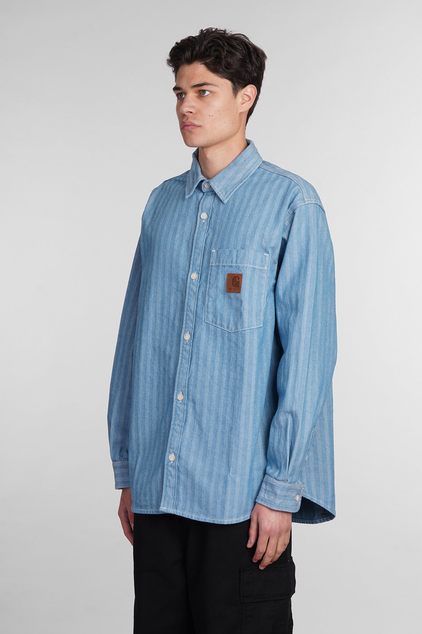 Shirt in cyan cotton