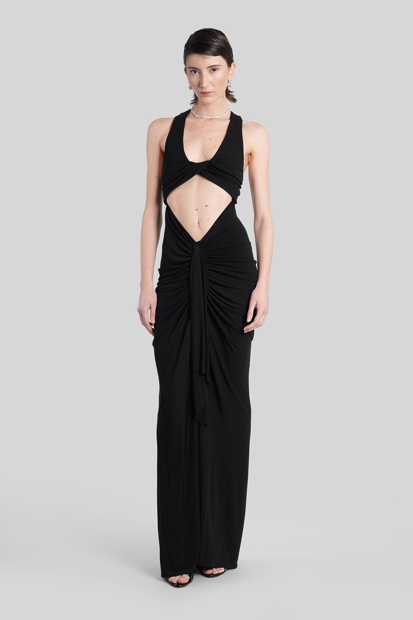 Long dress in black viscose