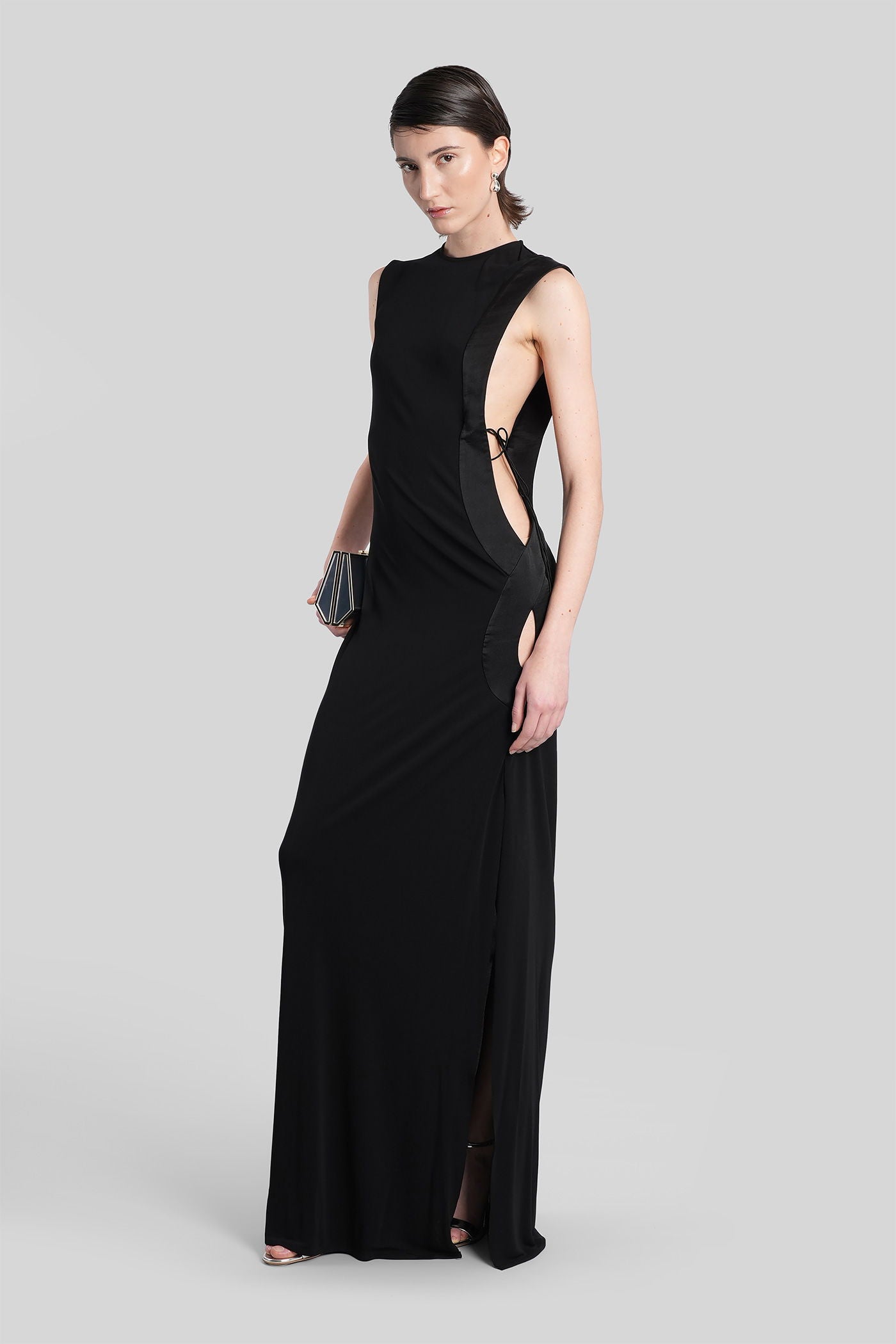Long dress in black viscose