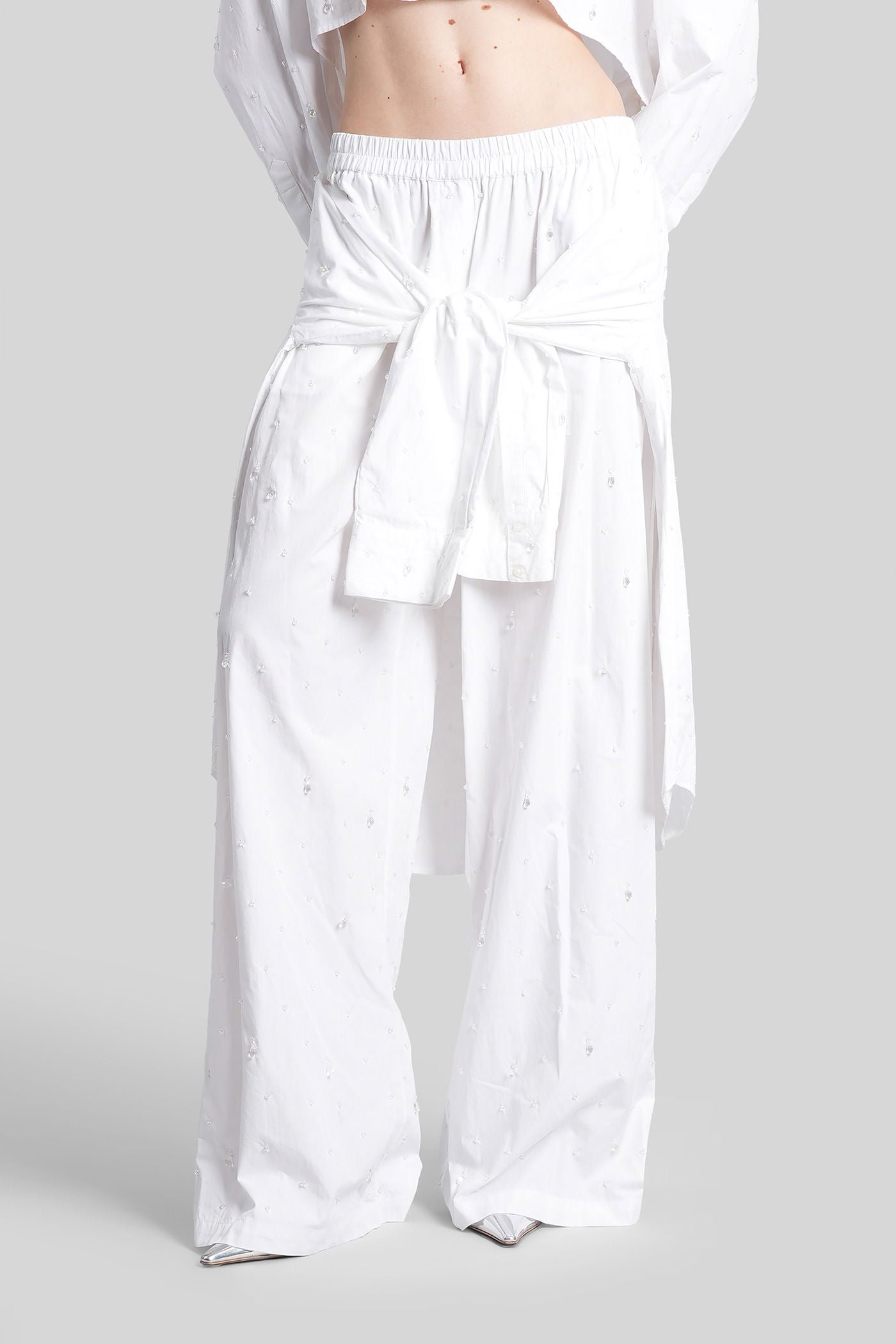 Pants in white cotton