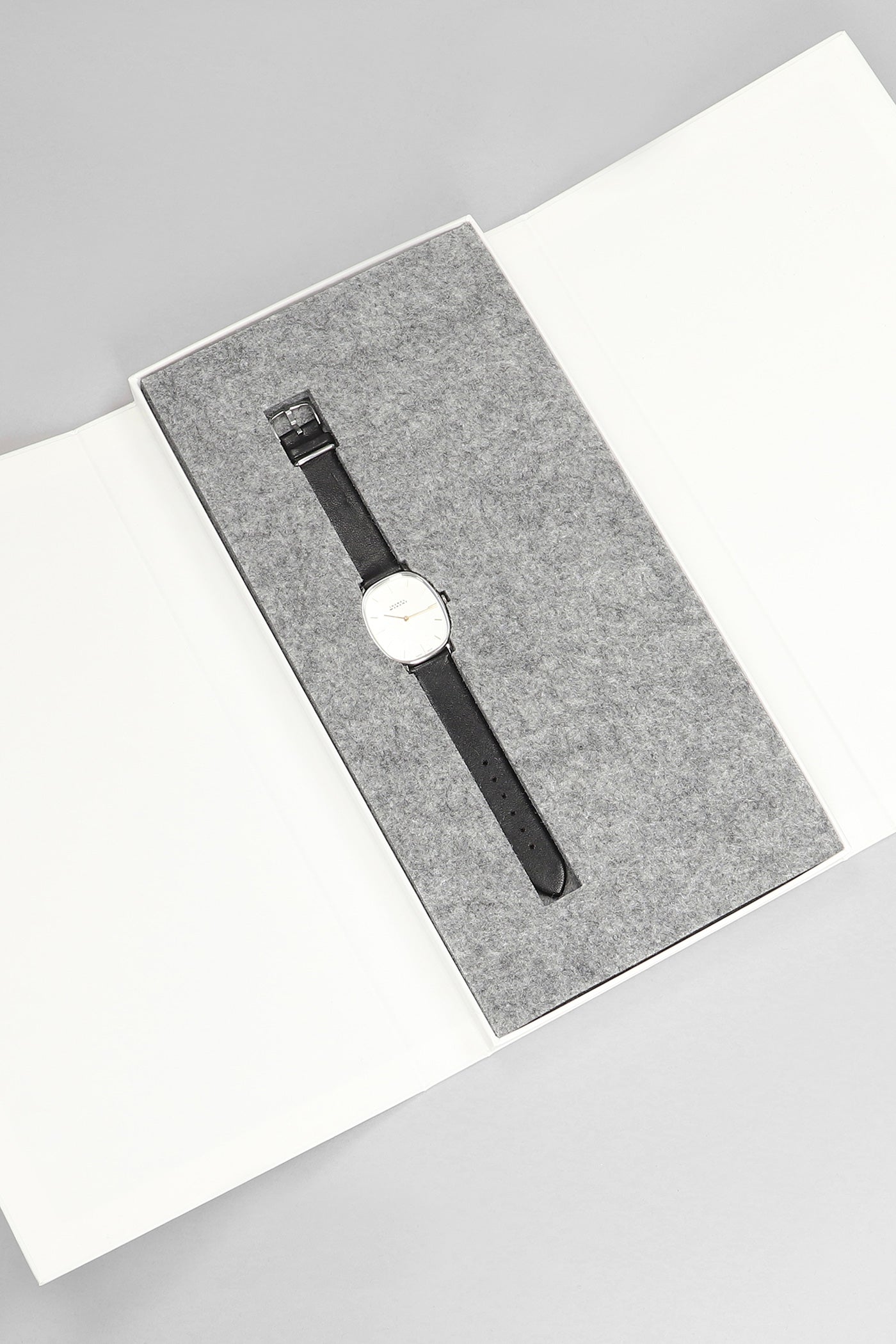 - White dial with silvered hands and hour markers