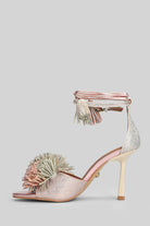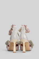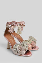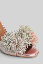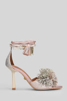 Pom Pom Sandals in beige Suede and fabric