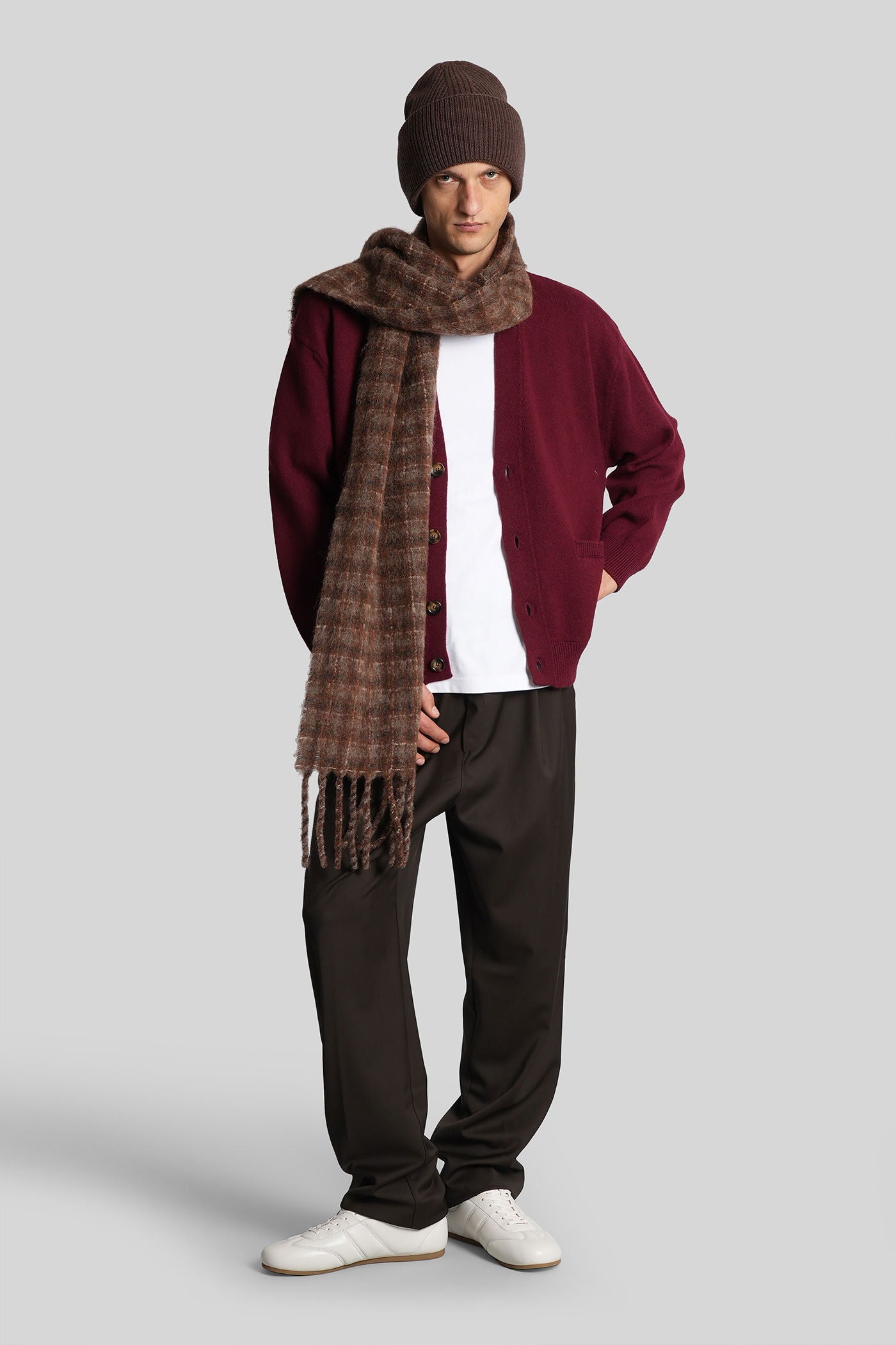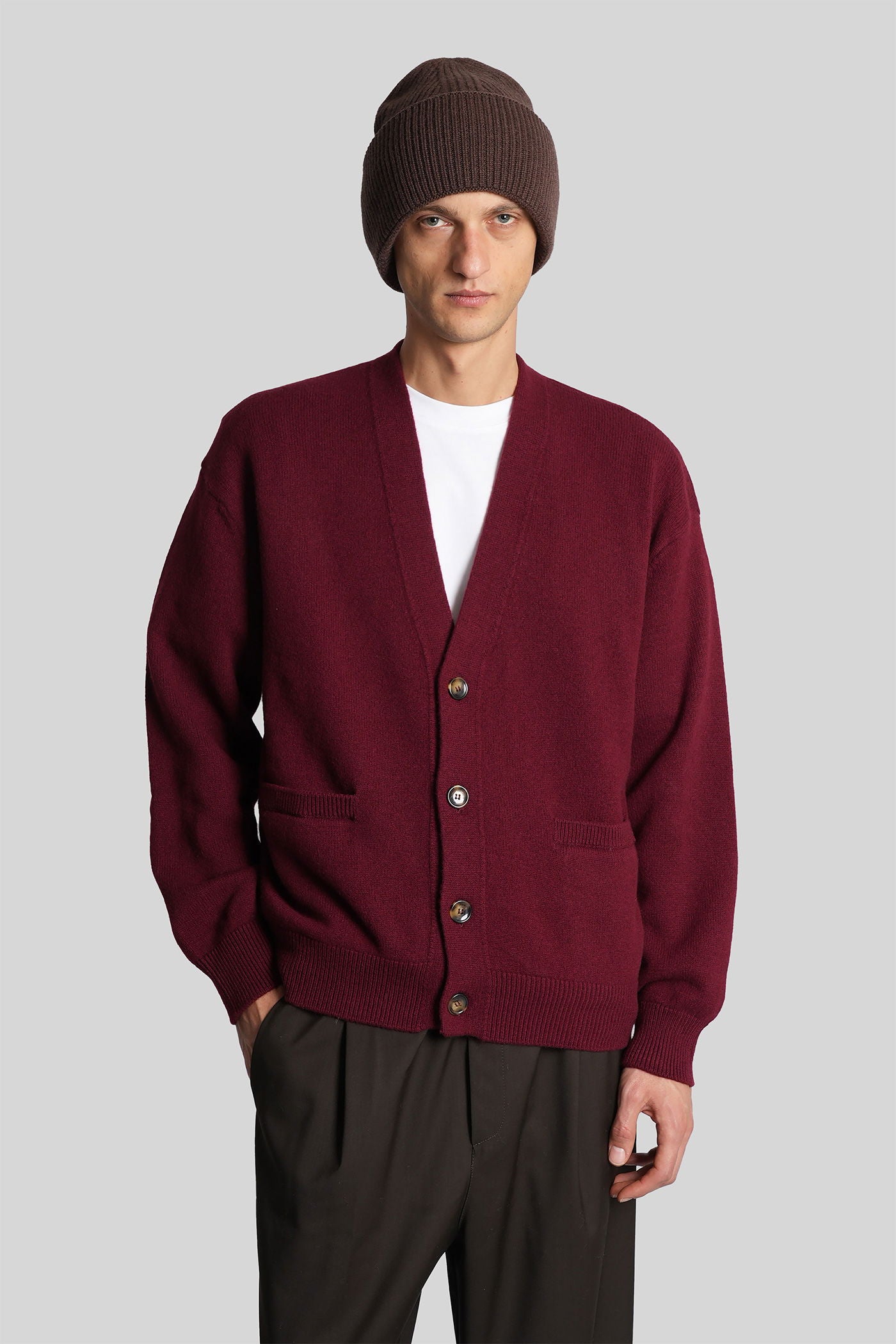 Cardigan in bordeaux wool