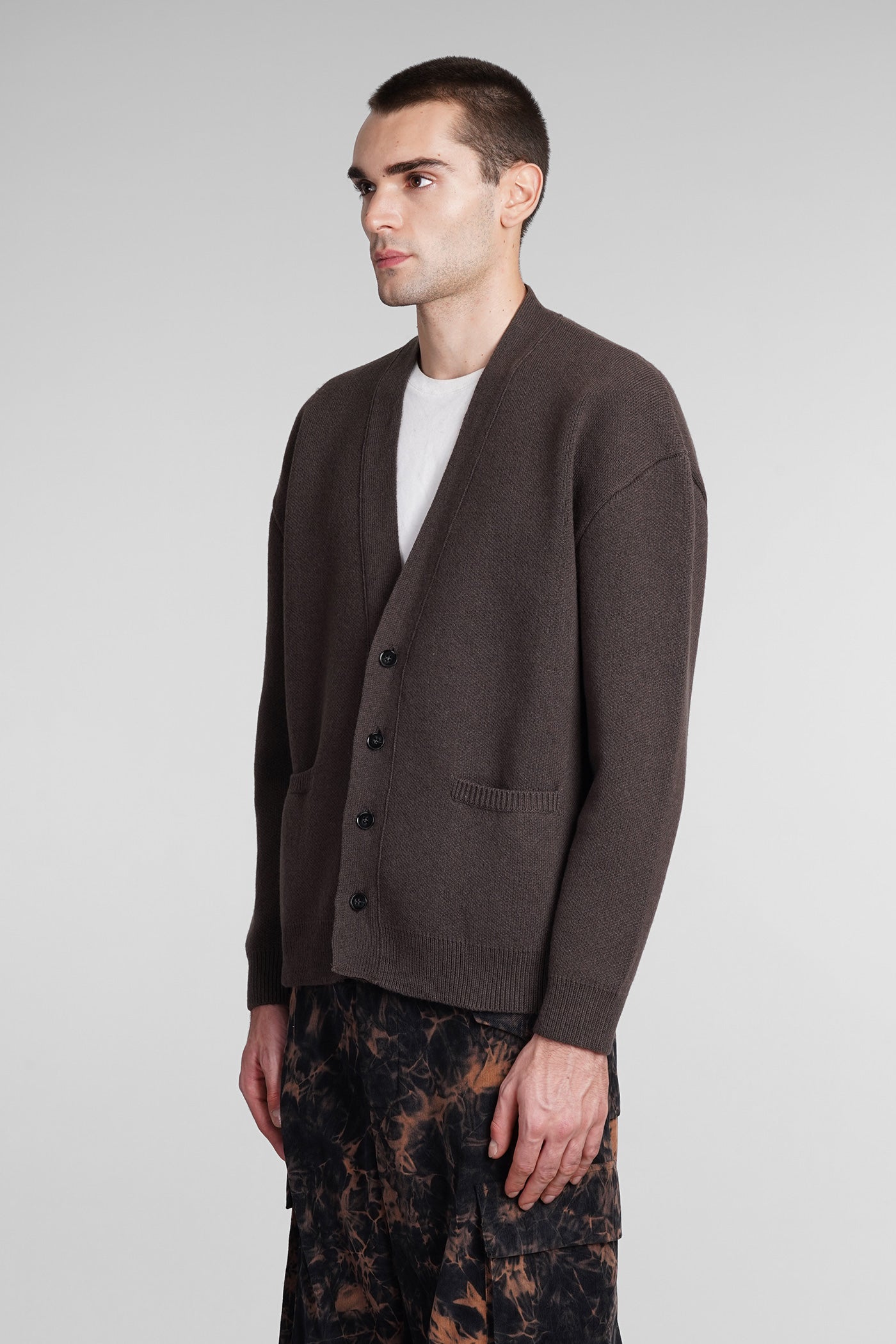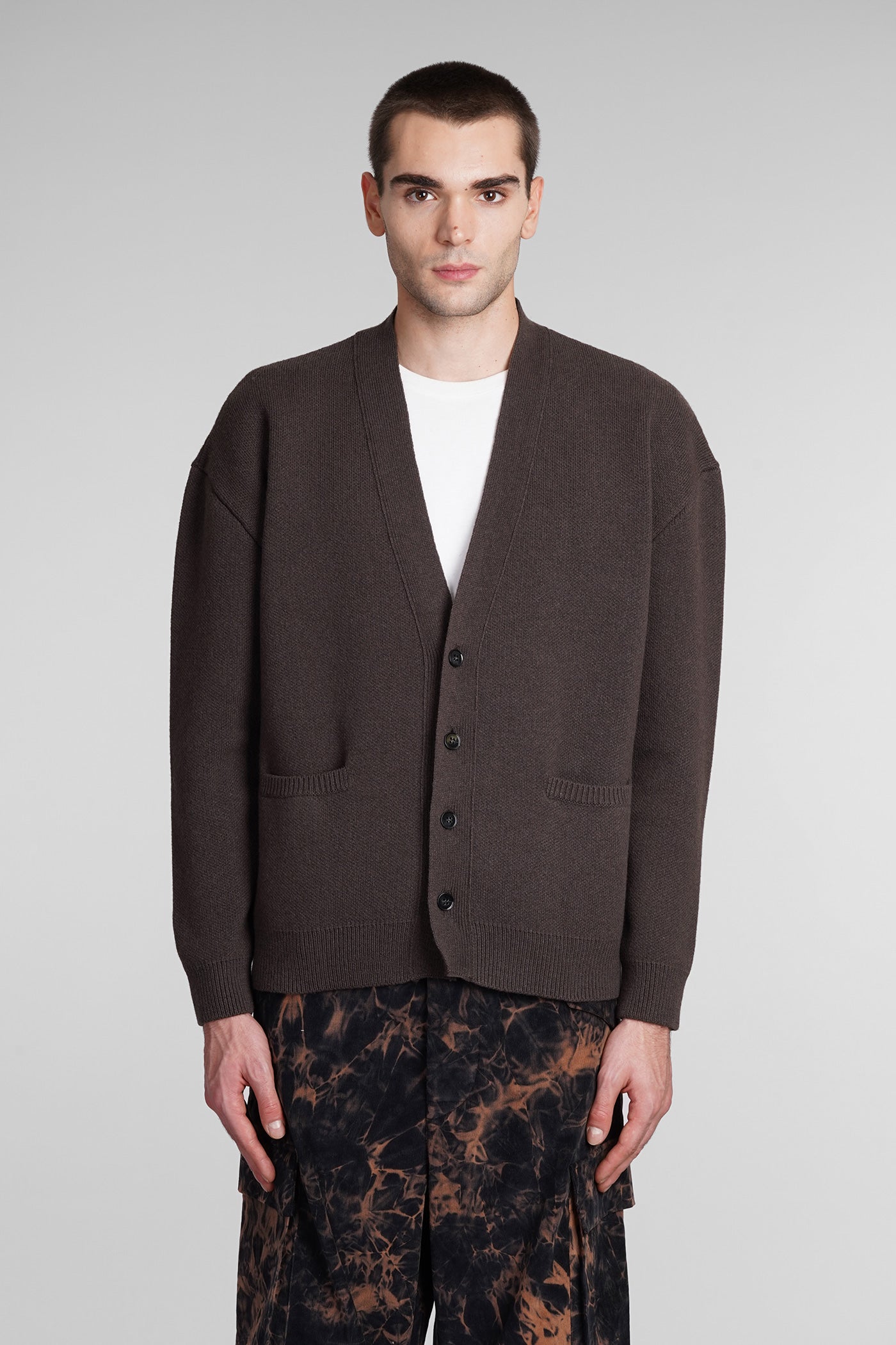 Cardigan in brown wool