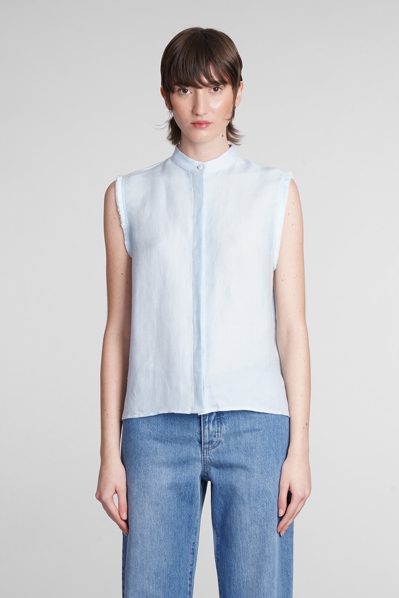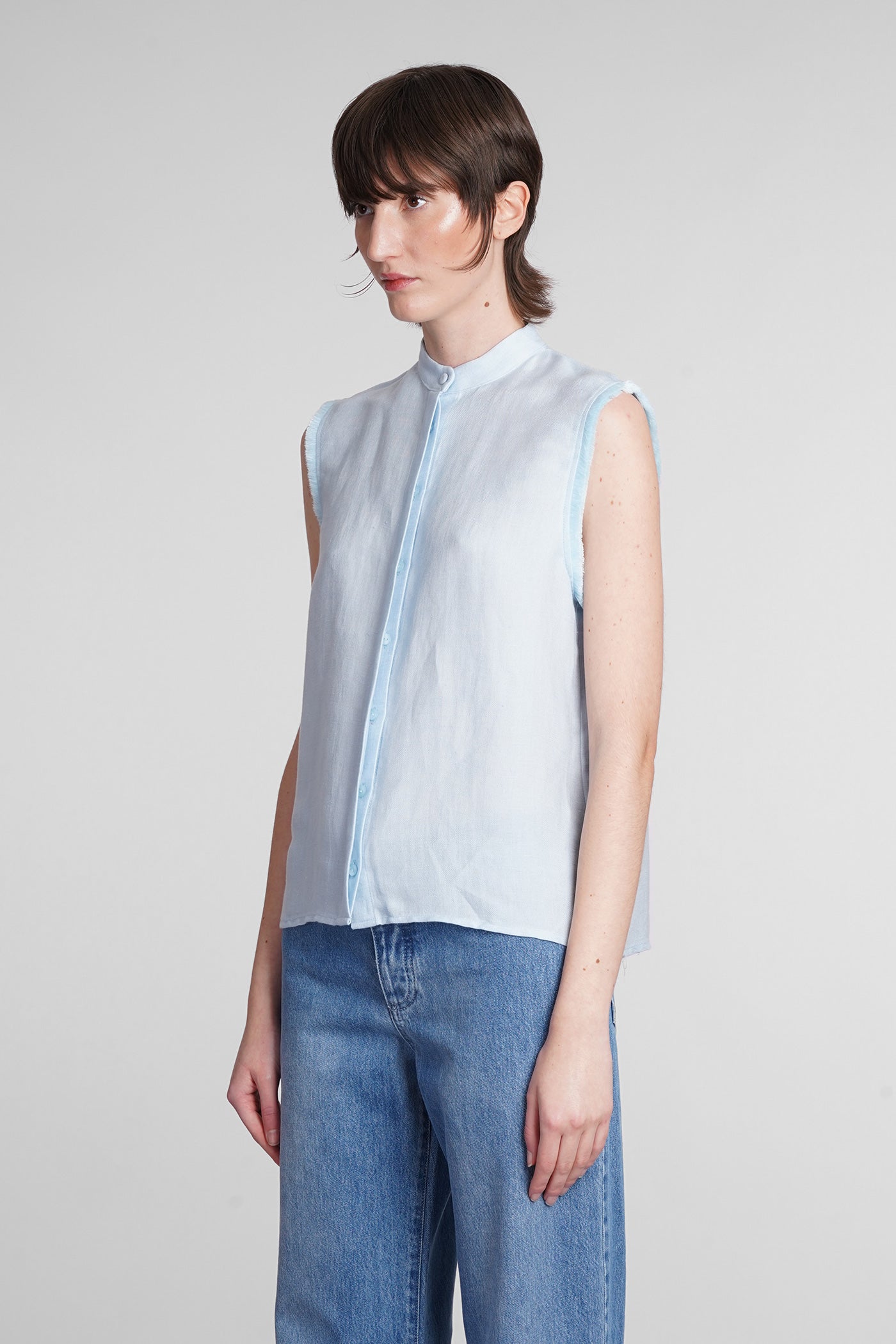 Antibes Shirt in cyan linen