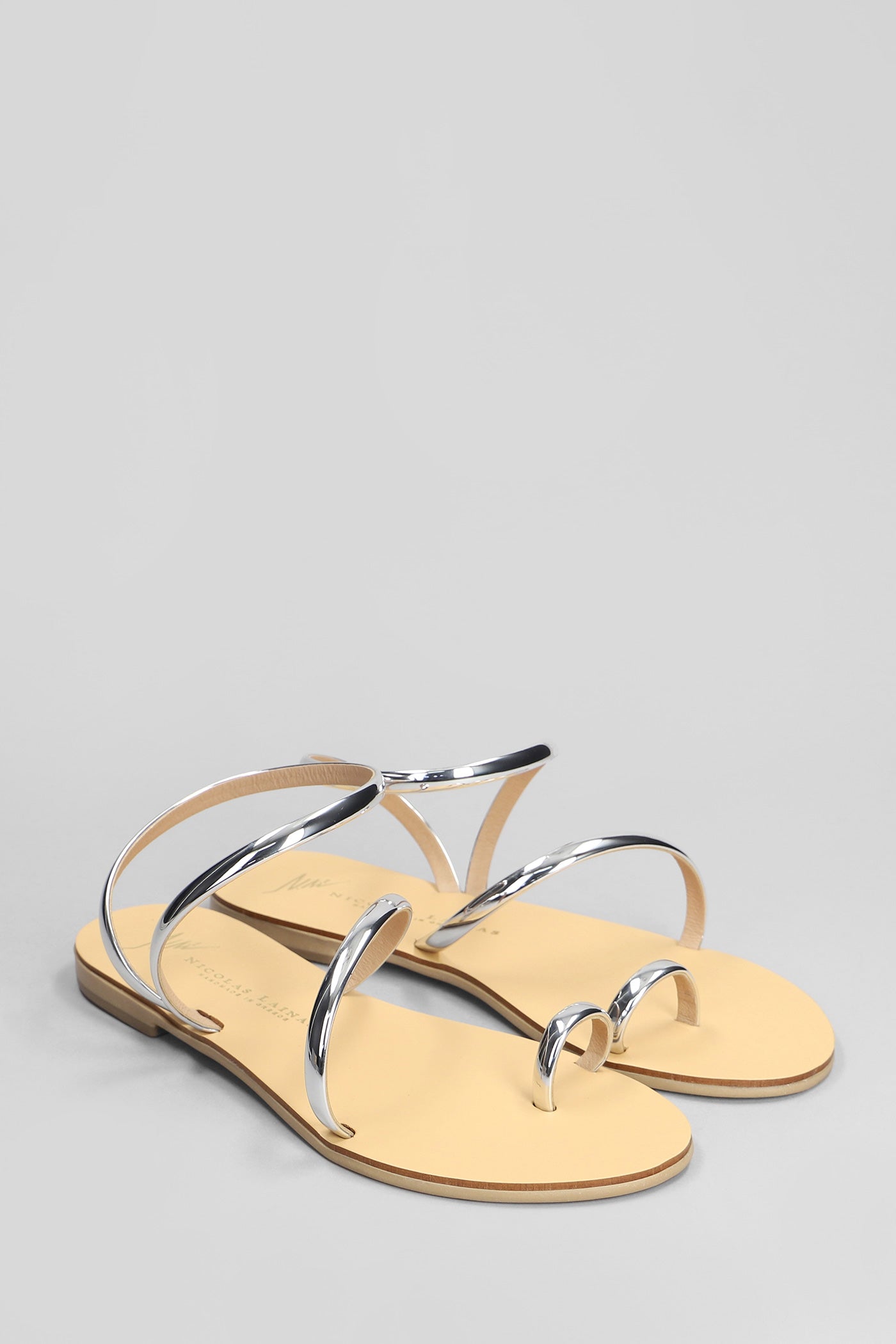 Flats in silver leather